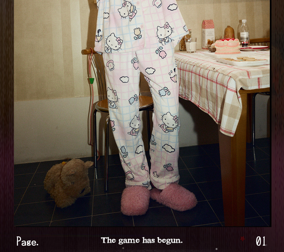Gukoo/果壳睡裙冬季HelloKitty联名新款条纹半边绒女家居服睡裙D