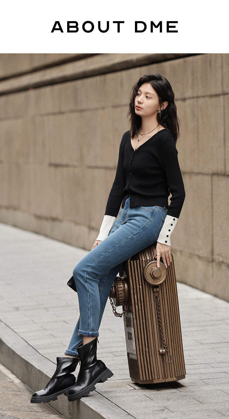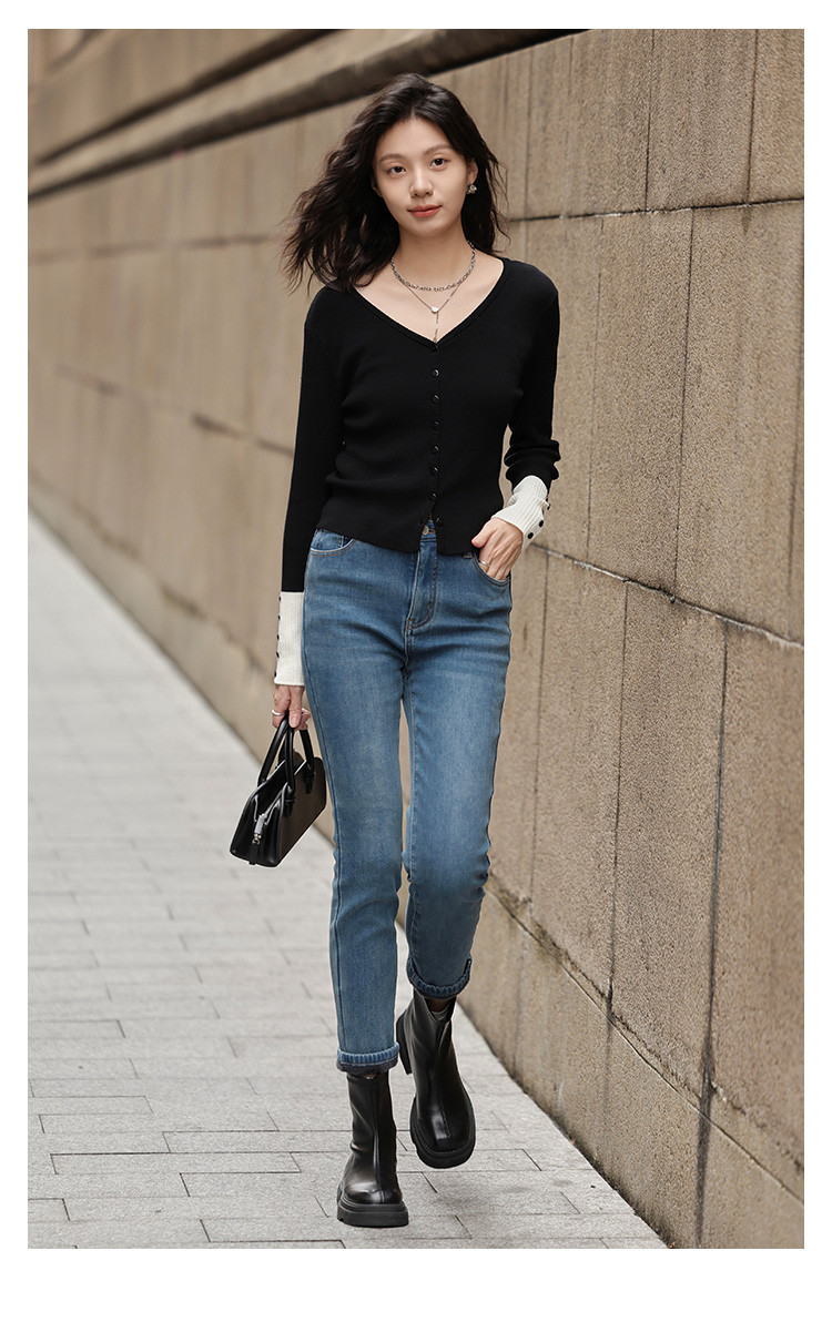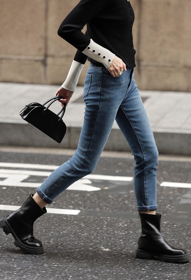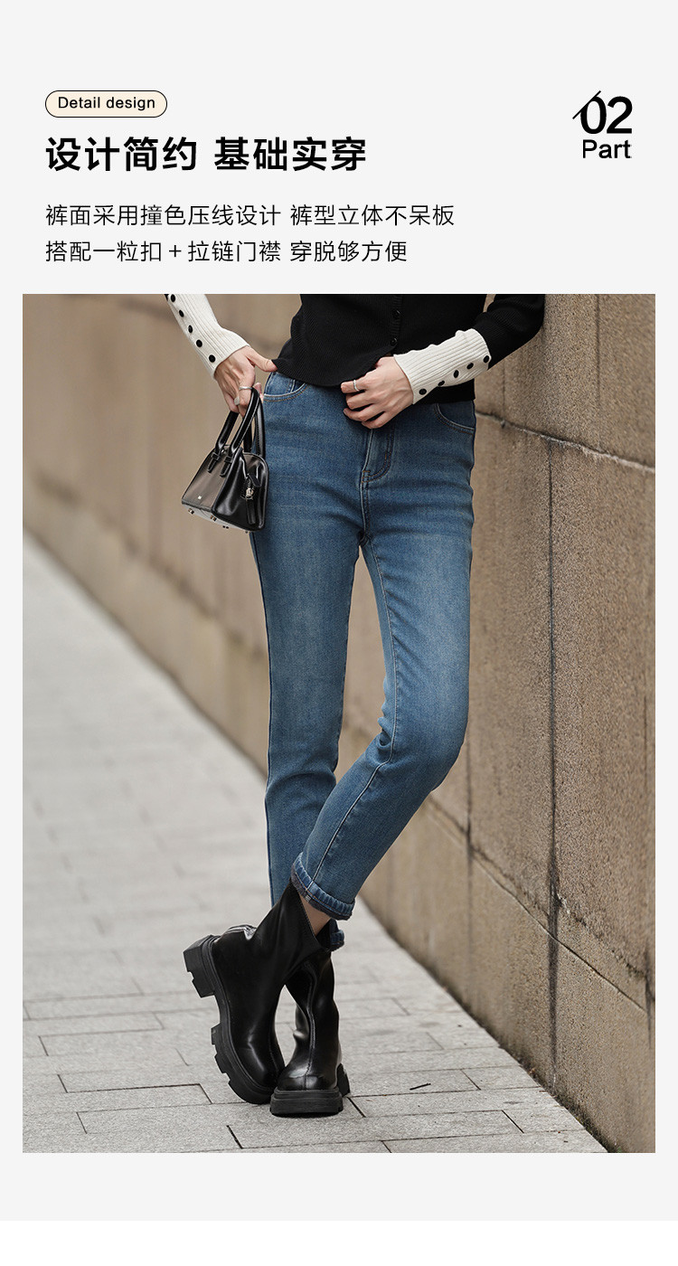 【复古蓝修身九分裤】2024冬款水洗蓝加绒弹力牛仔小脚裤女