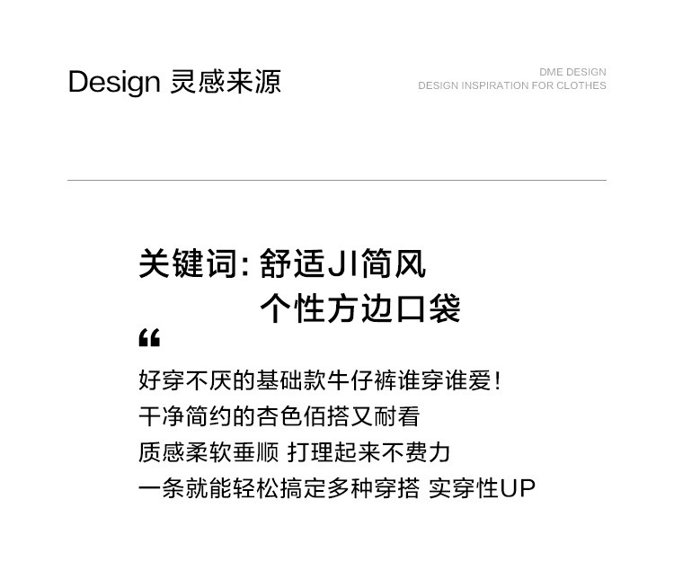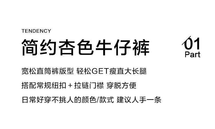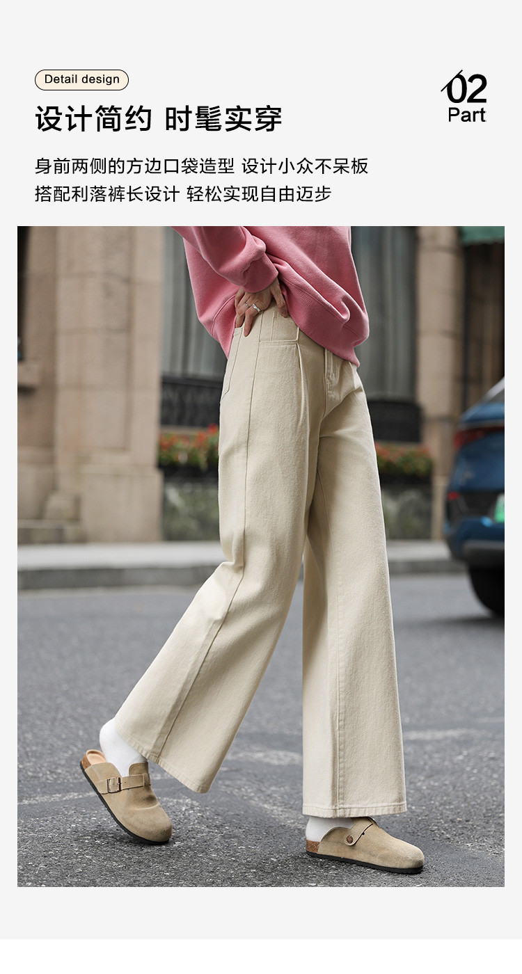 【简约杏色牛仔裤】2024冬款个性方边口袋时髦基础垂顺直筒裤