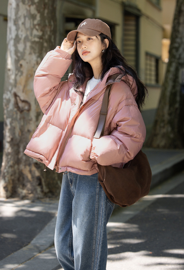 【个性撞色拼接】2024冬款温柔连帽长羽绒外套女