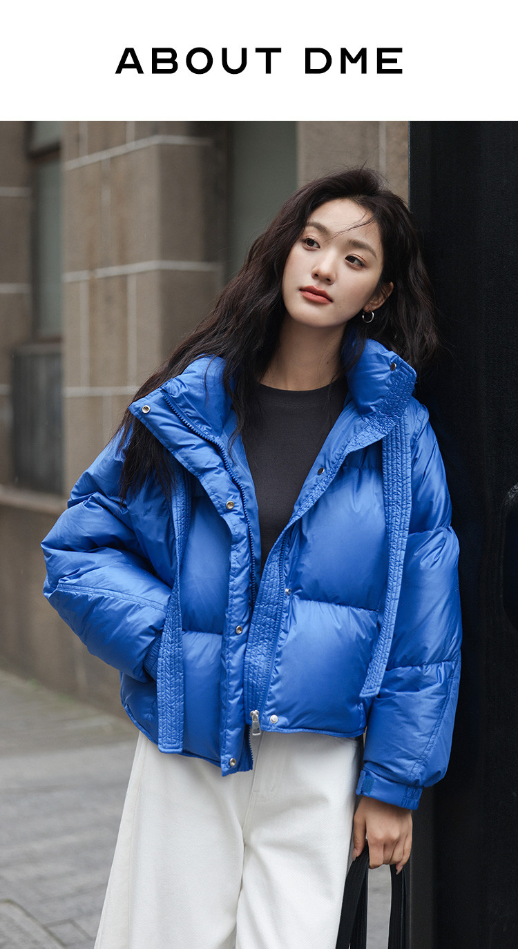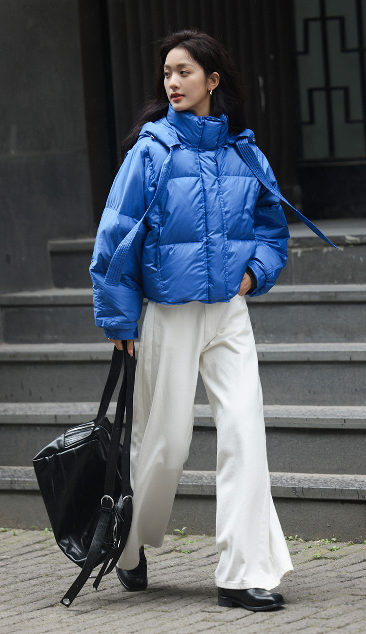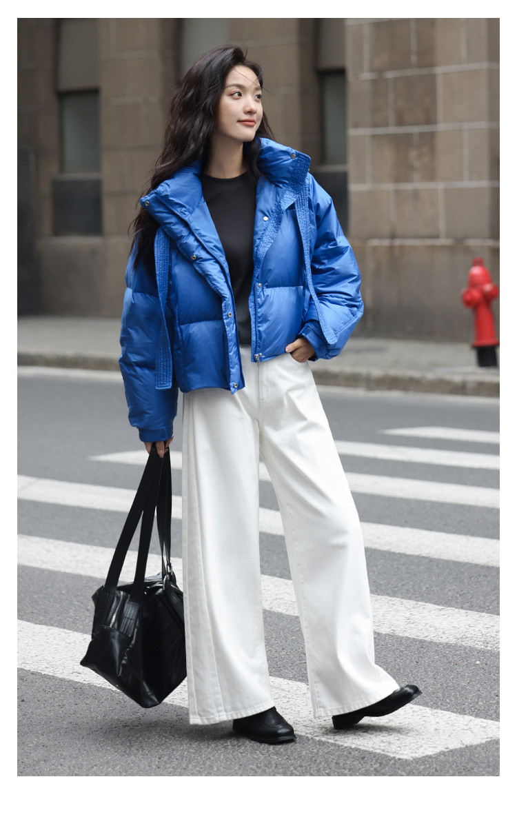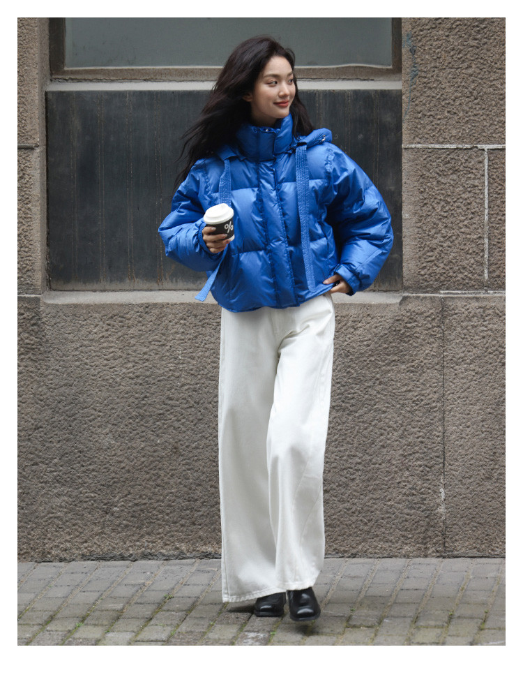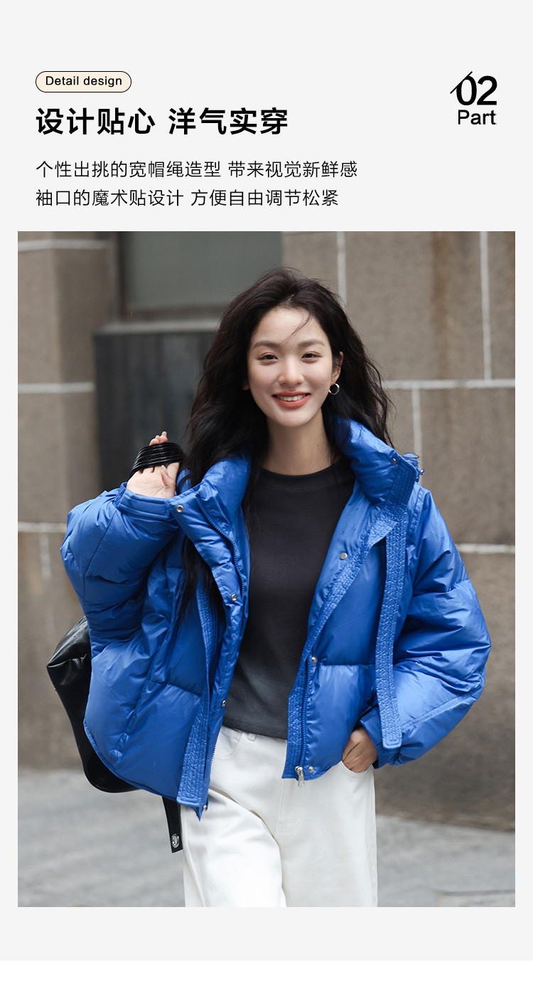 【活力克莱因蓝】2024冬肯豆风短外套显高个性宽帽绳羽绒服女