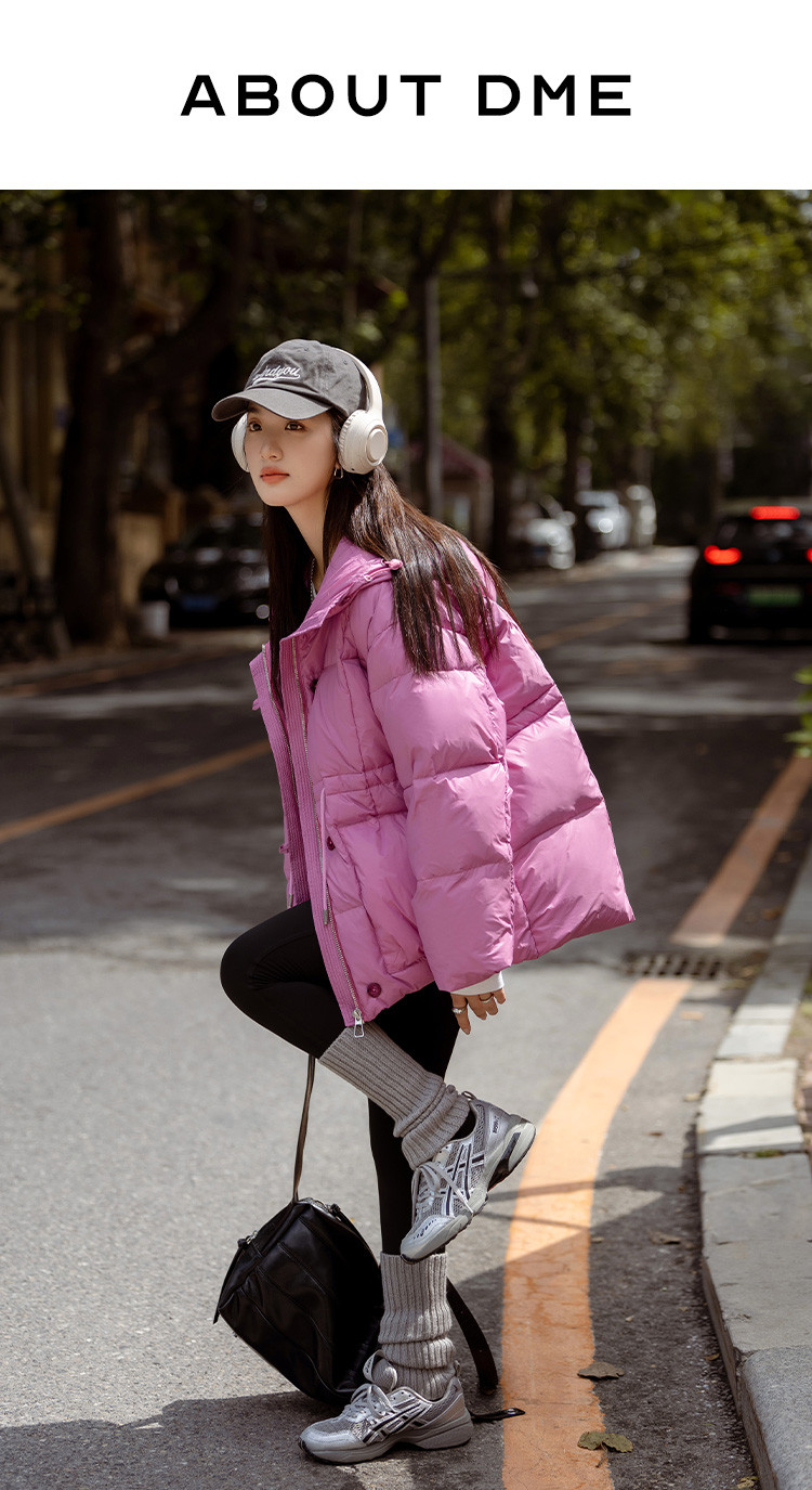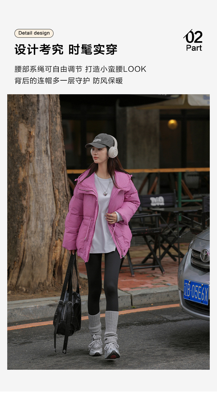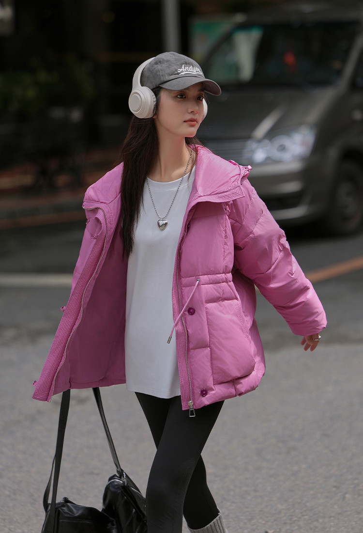 【多巴胺玫粉】2024冬款连帽收腰系绳装饰长袖羽绒服女