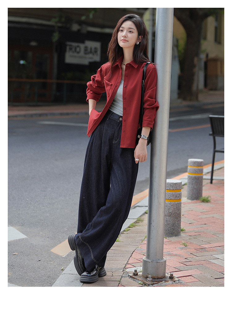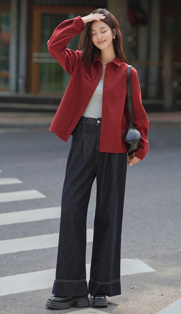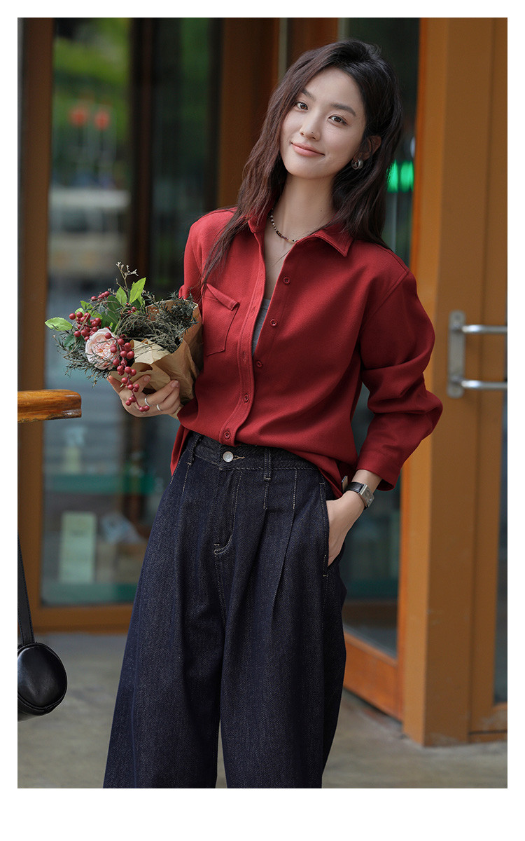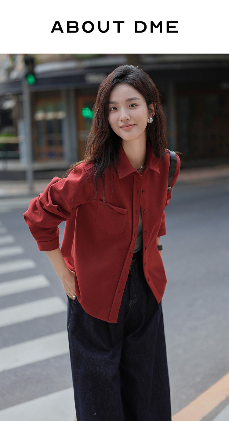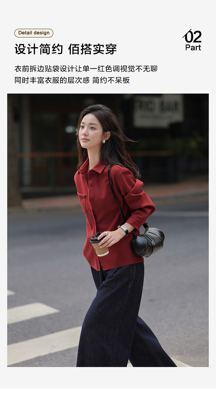 【新年灵感穿搭】冬季节日氛围感折边口袋翻领衬衫舒适藏肉女上衣