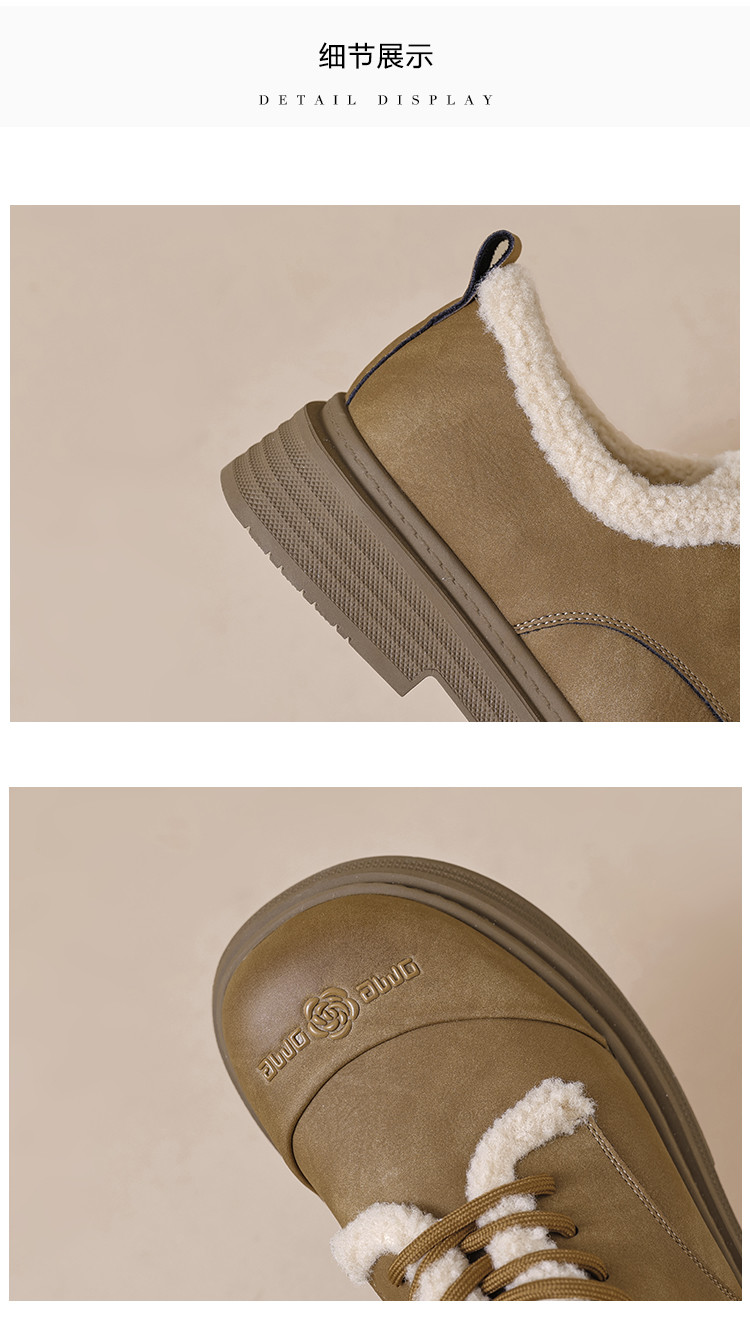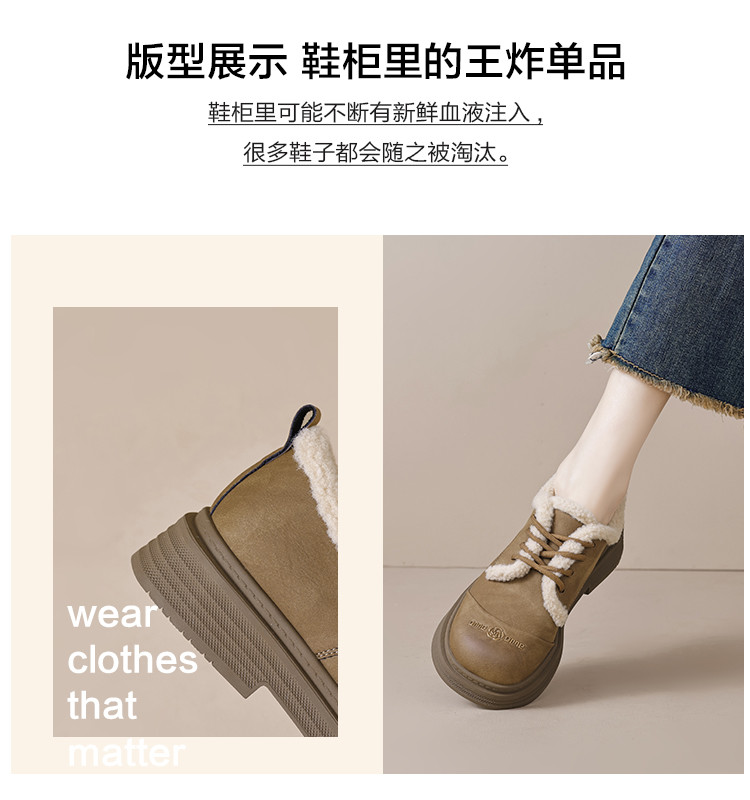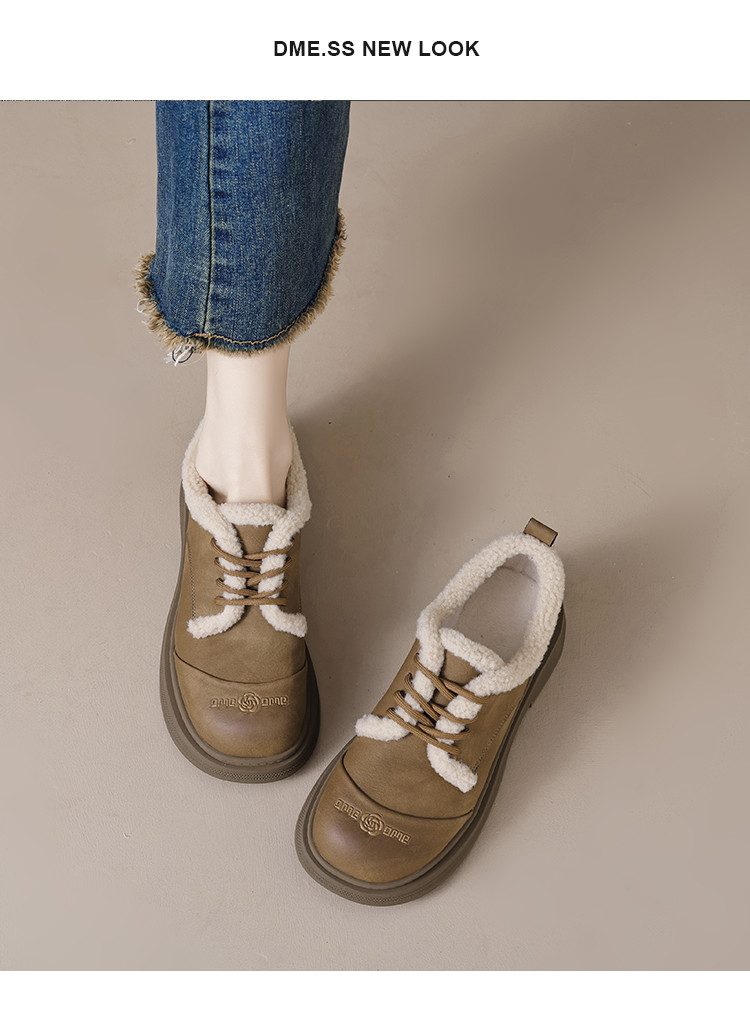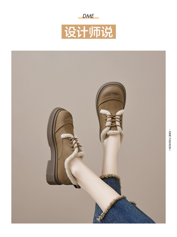 2024温暖冬日百搭舒适休闲复古圆头拼接字母玫瑰系带毛毛鞋