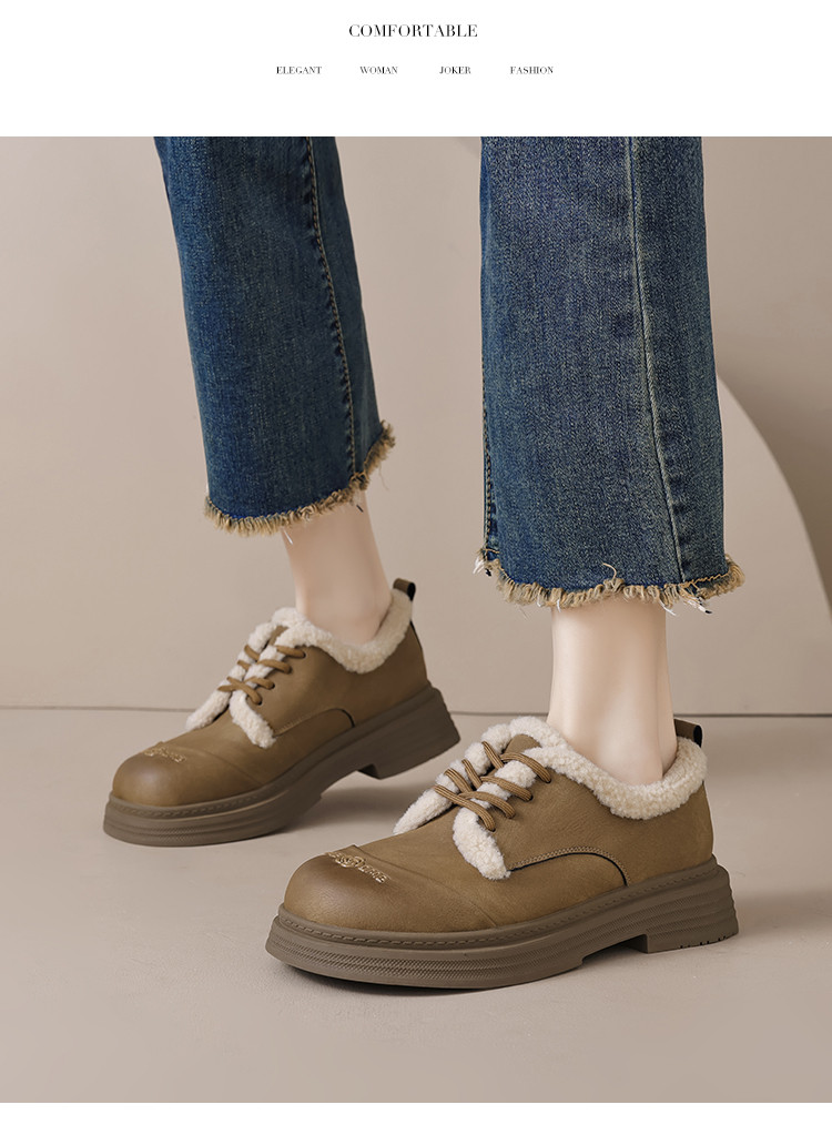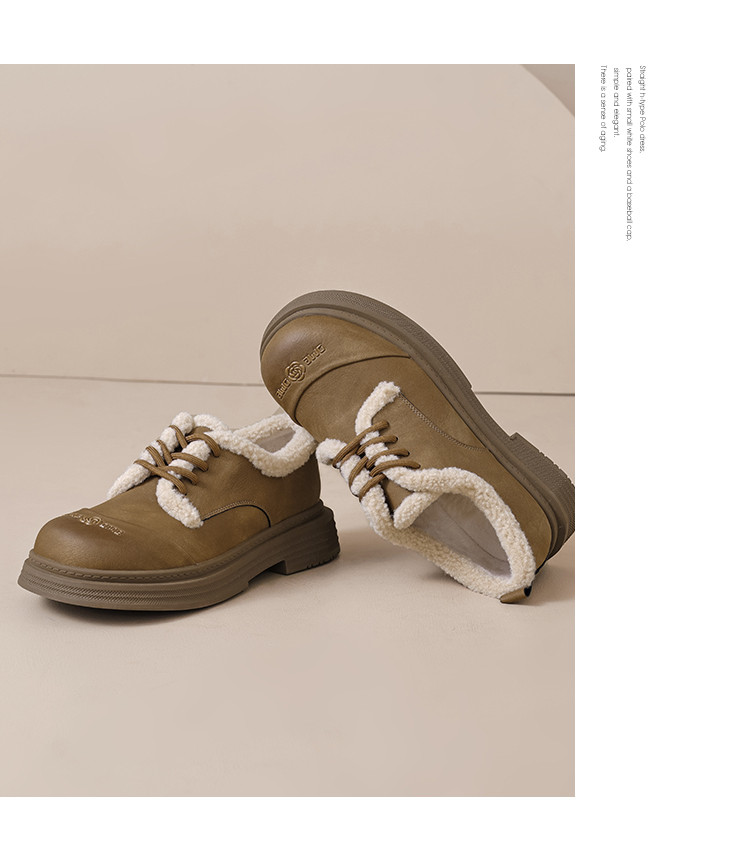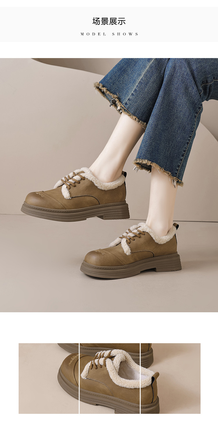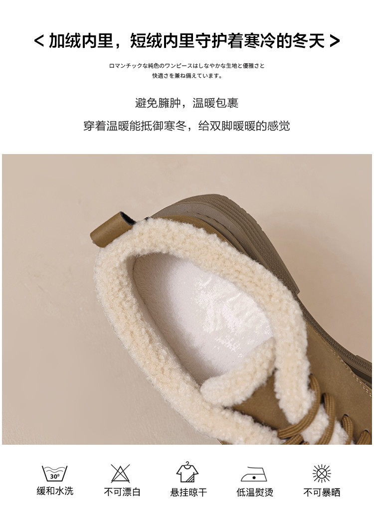 2024温暖冬日百搭舒适休闲复古圆头拼接字母玫瑰系带毛毛鞋