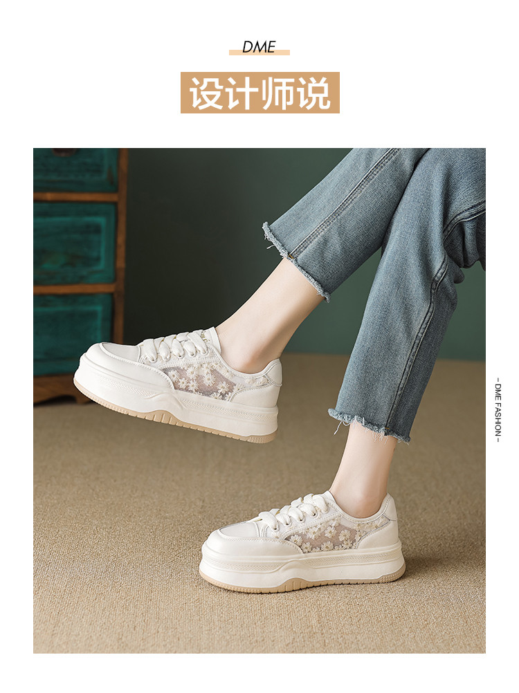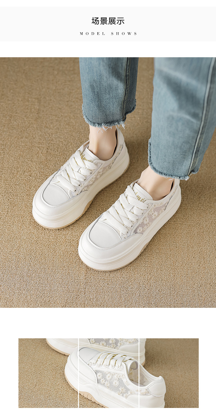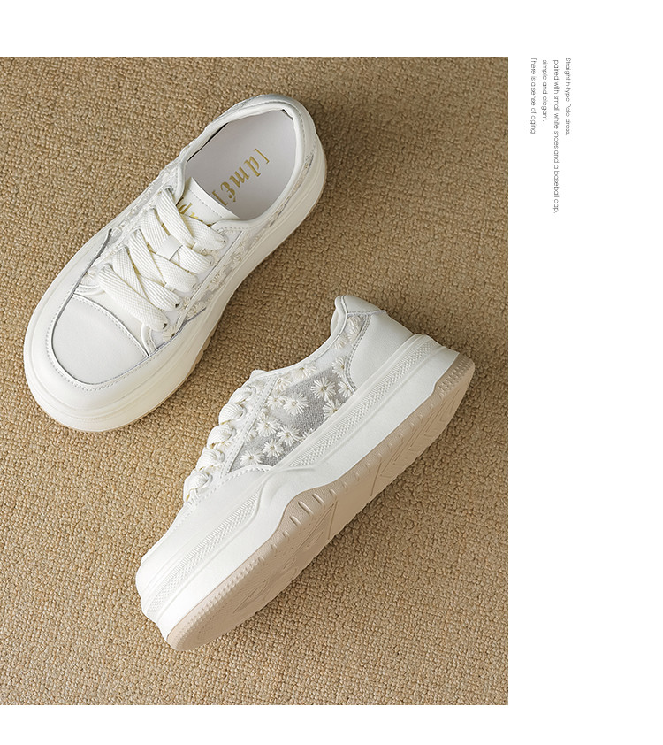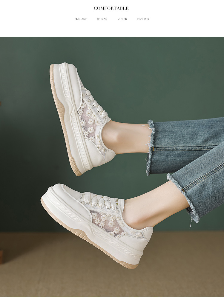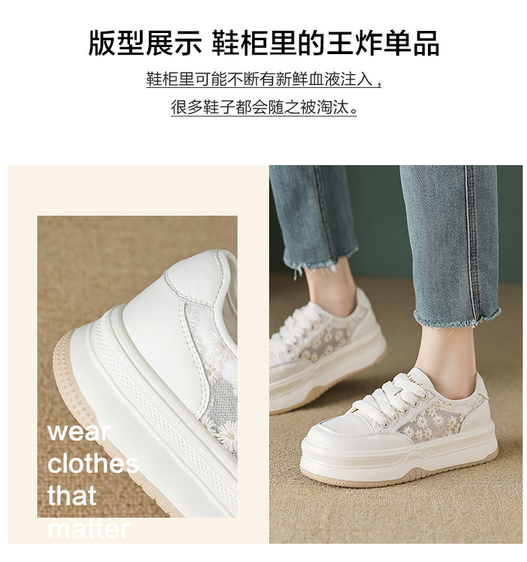 2024夏季时尚潮流甜美网面小雏菊舒适厚底小白鞋女休闲鞋