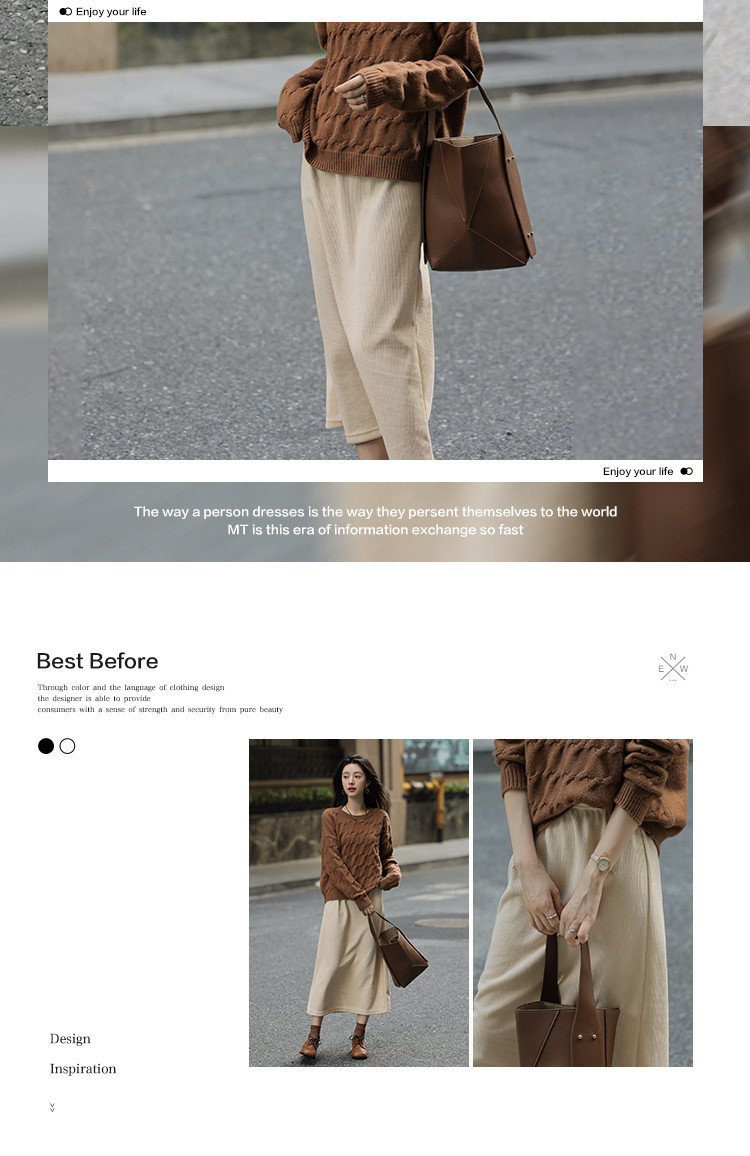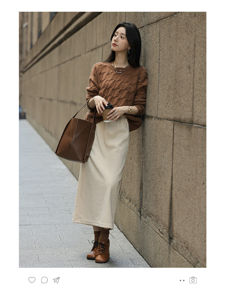 【简约围脖领】2024冬绞花肌理针织下摆开叉直筒半身裙套装