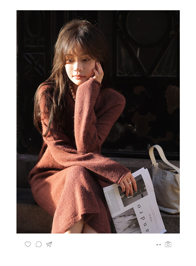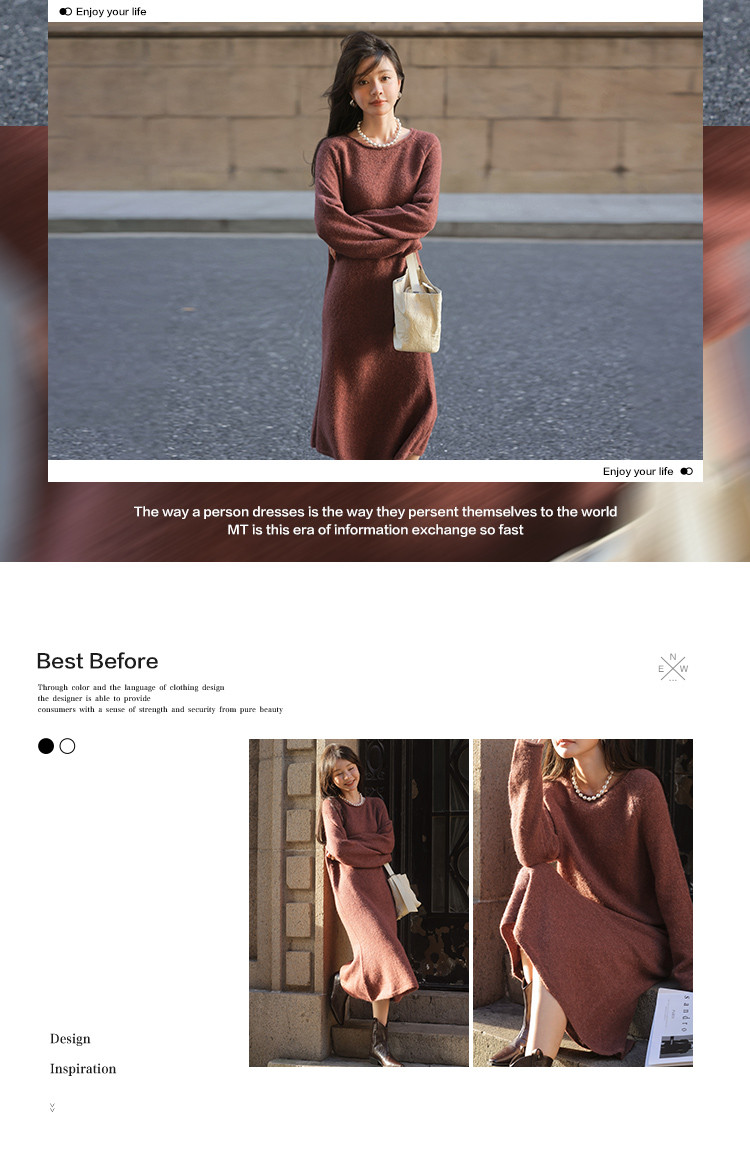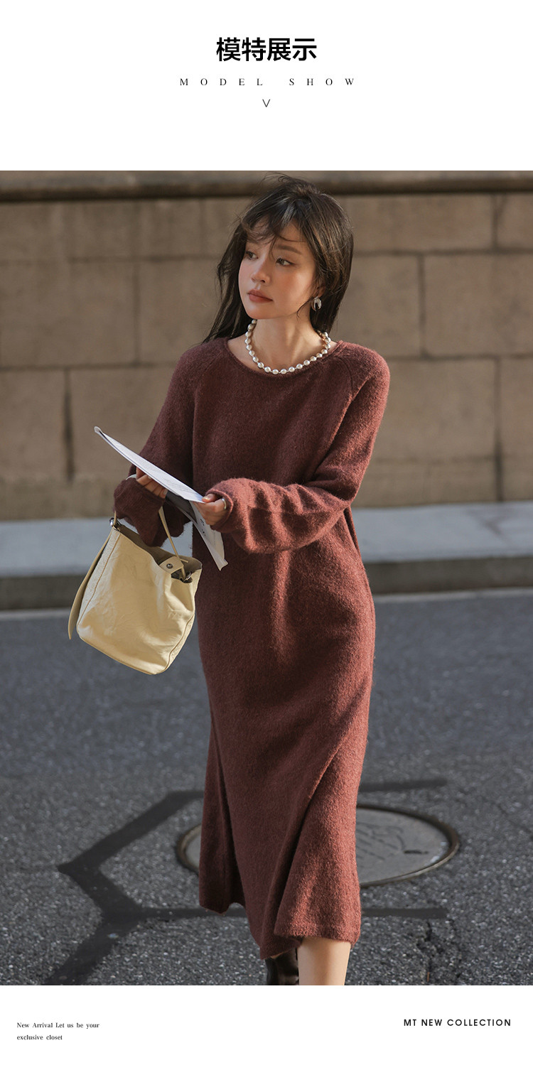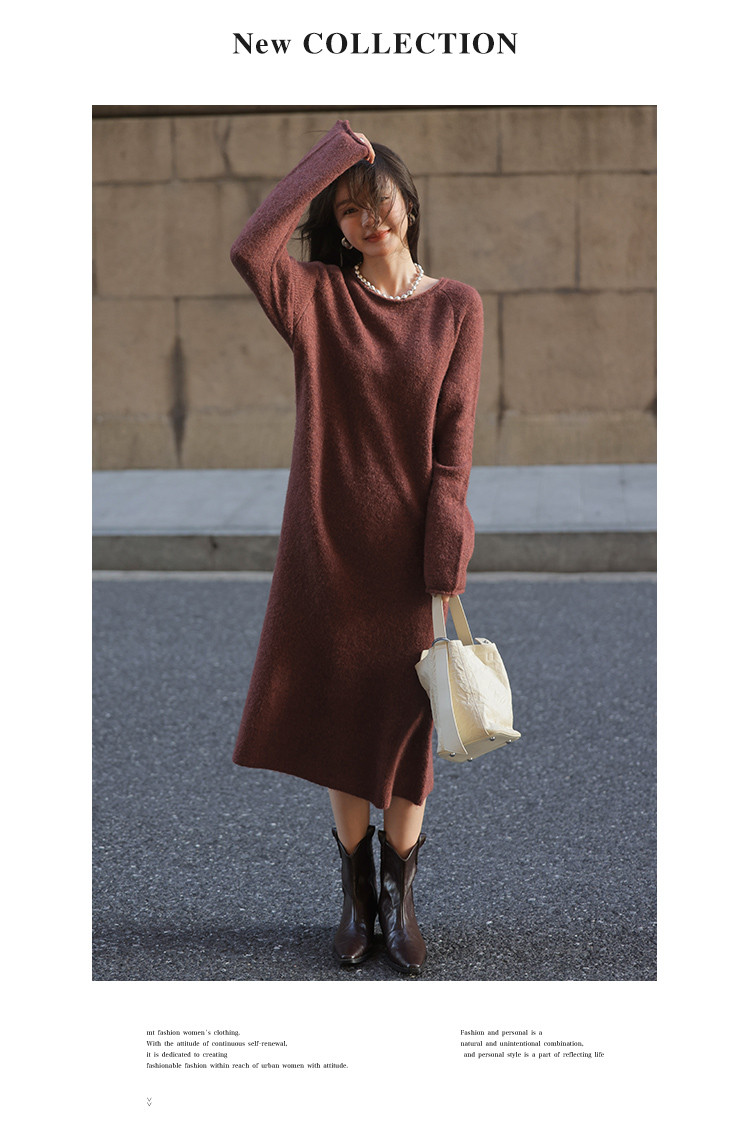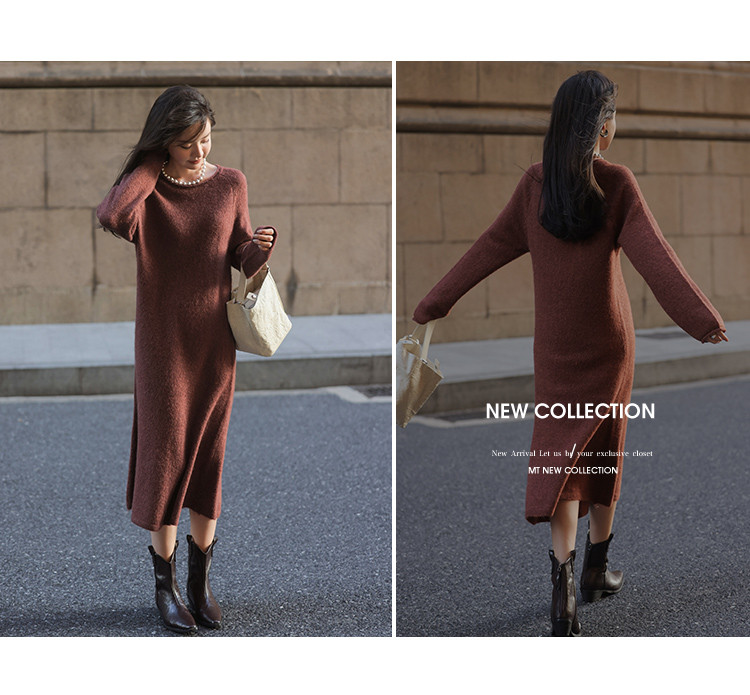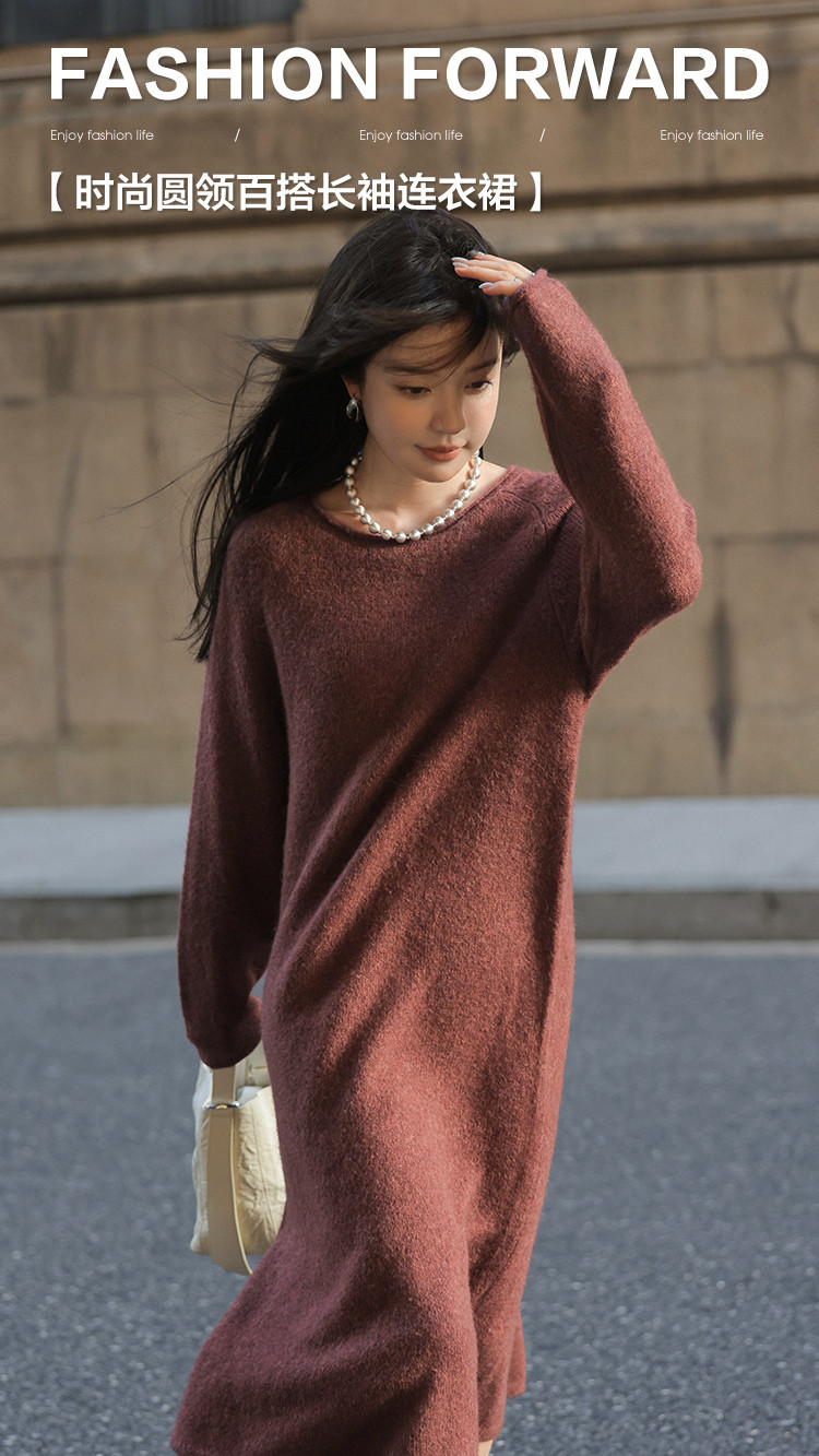 【肉桂普洱】秋冬美拉德色纯系 时尚圆领经典百搭长袖针织连衣裙