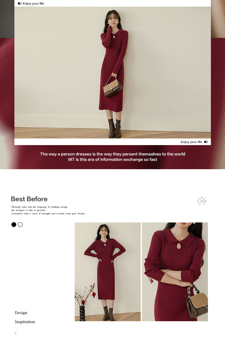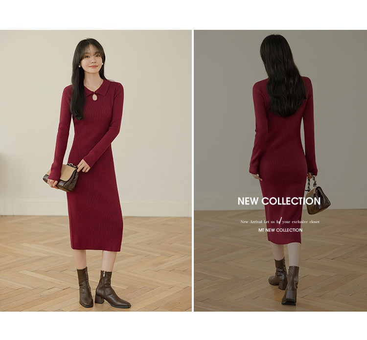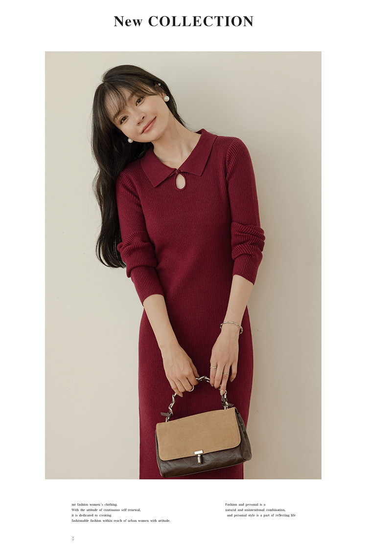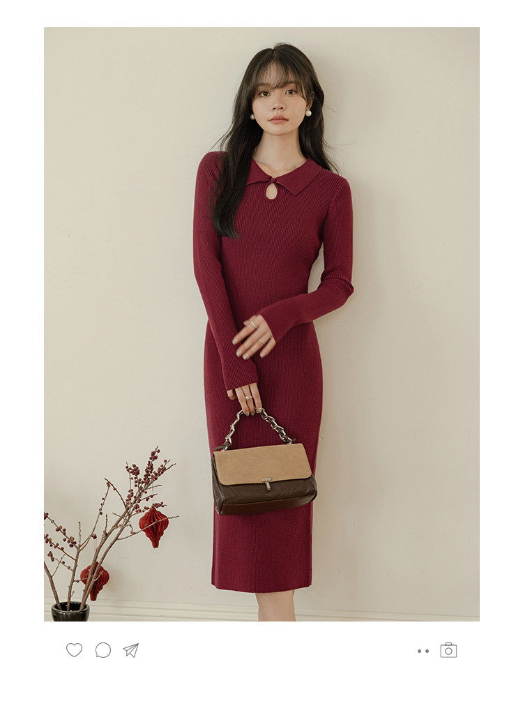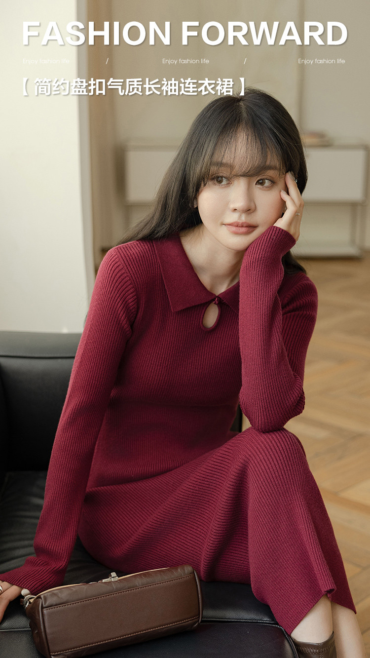 【半岛黄昏】春秋百搭针织显瘦高级感鱼尾裙优雅气质打底连衣裙女