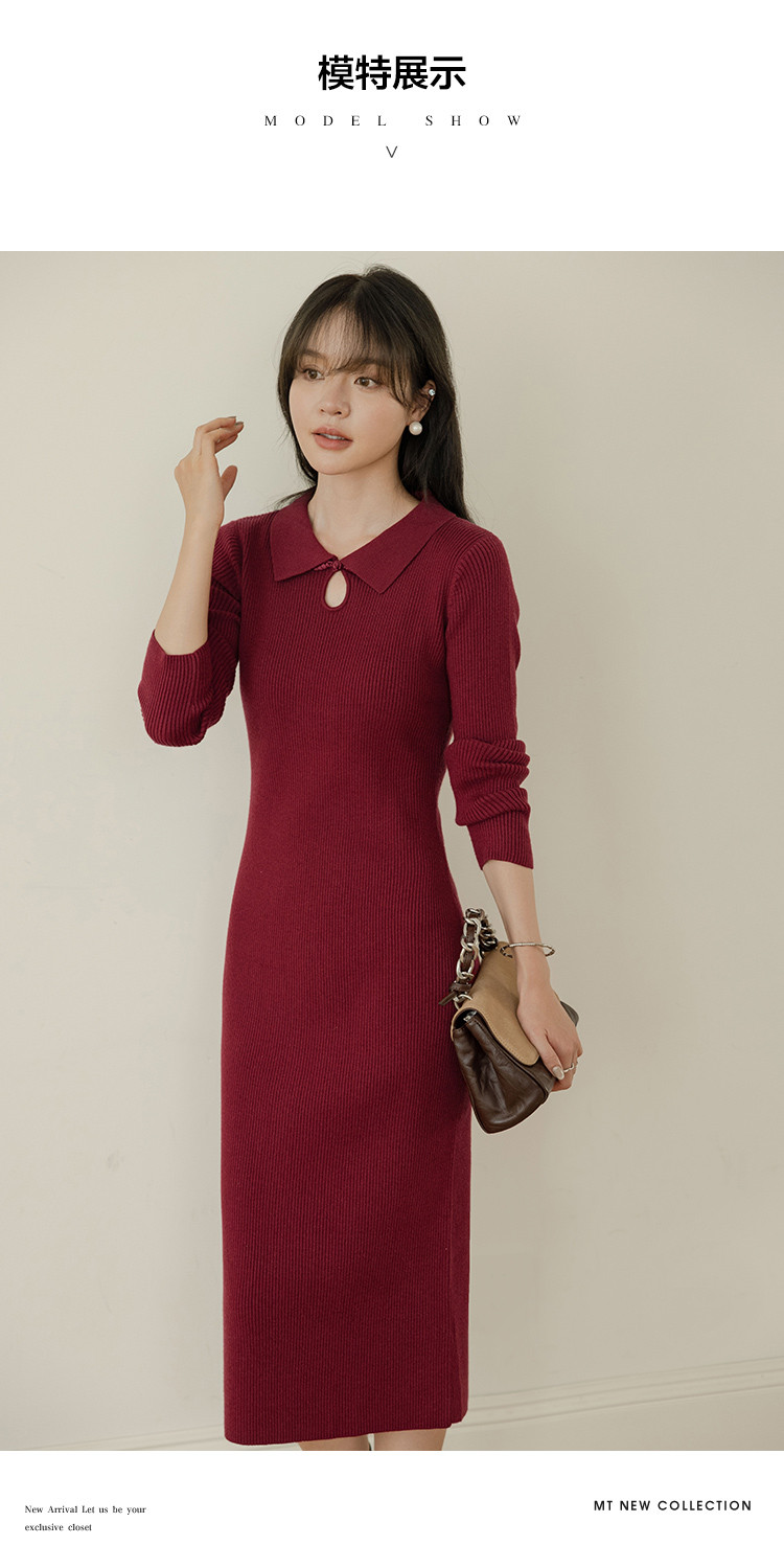 【新中式贺岁】秋冬国风古典镂空盘扣翻领藏肉气质连衣裙女式长款