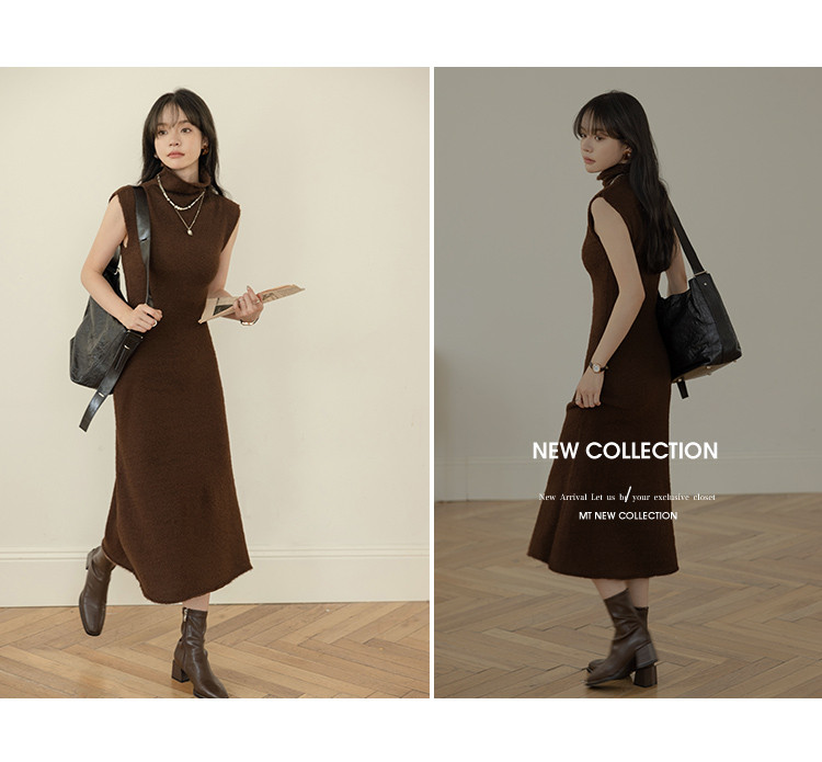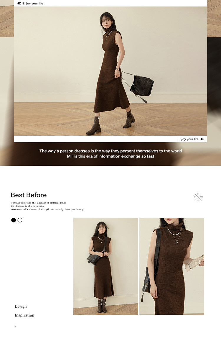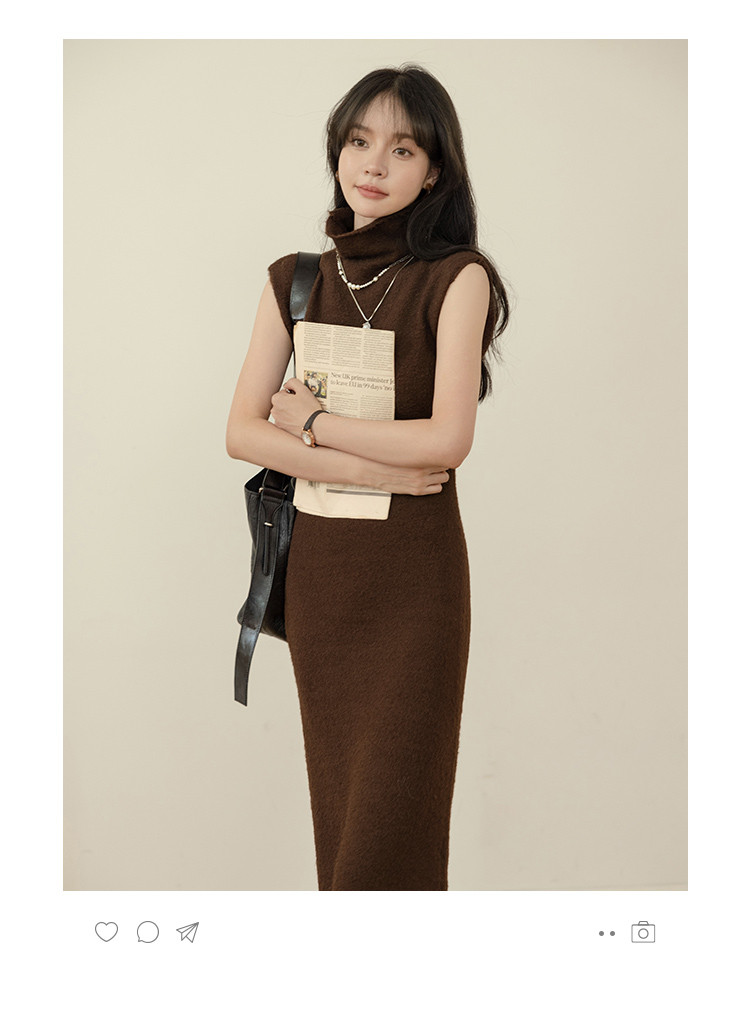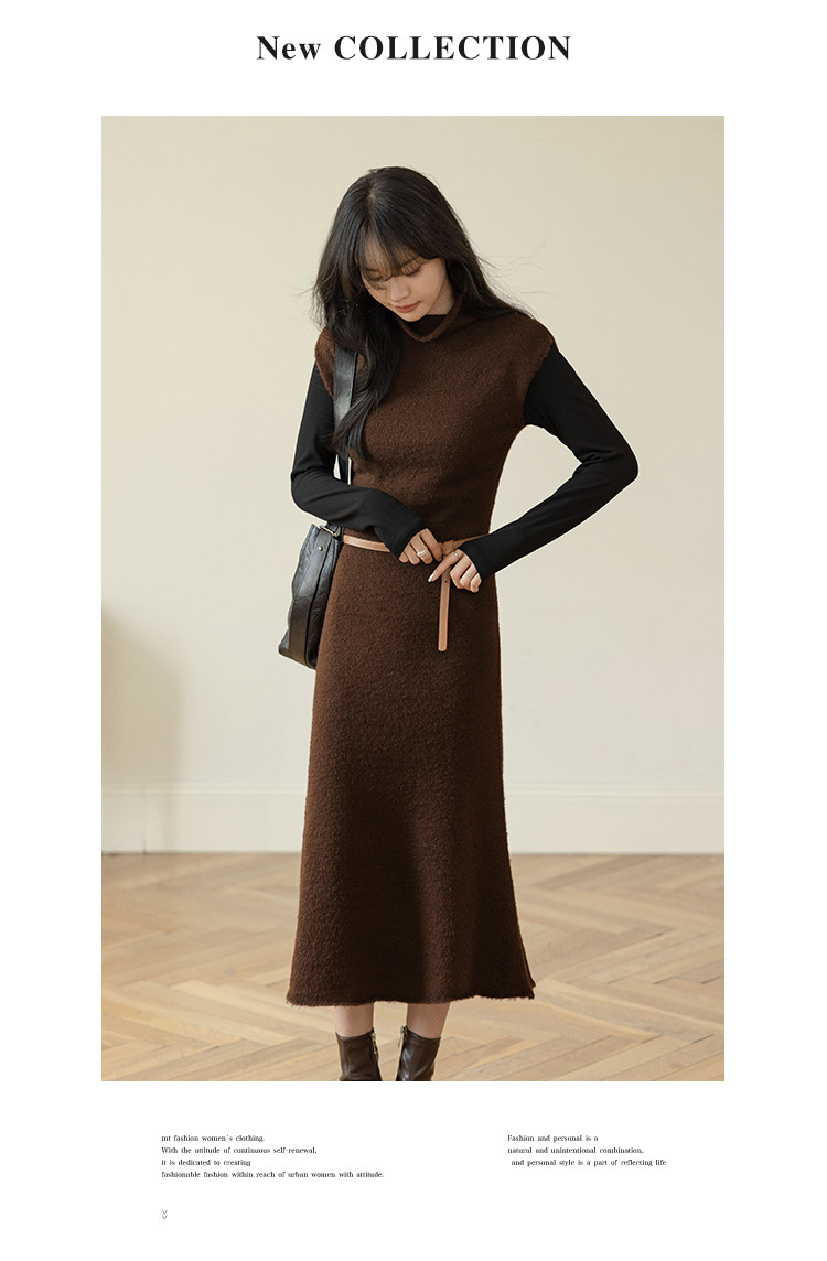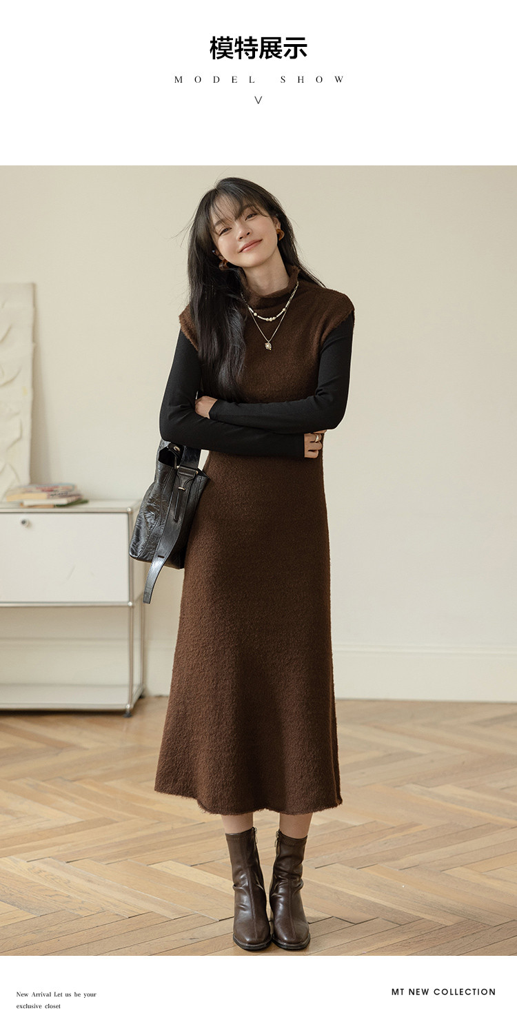【纯色百搭长裙】2024冬款经典纯色百搭套头线衫连衣裙