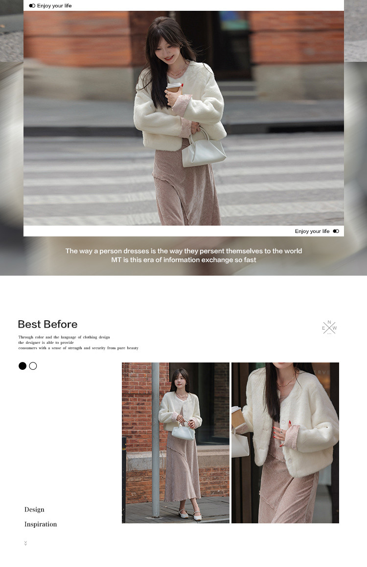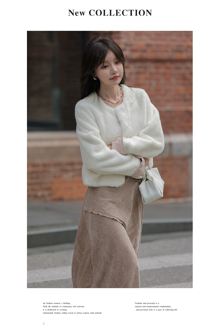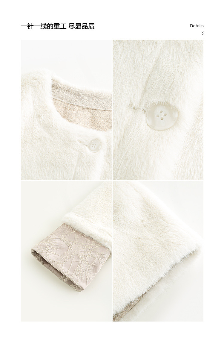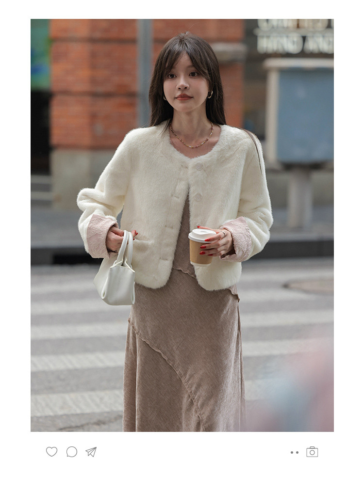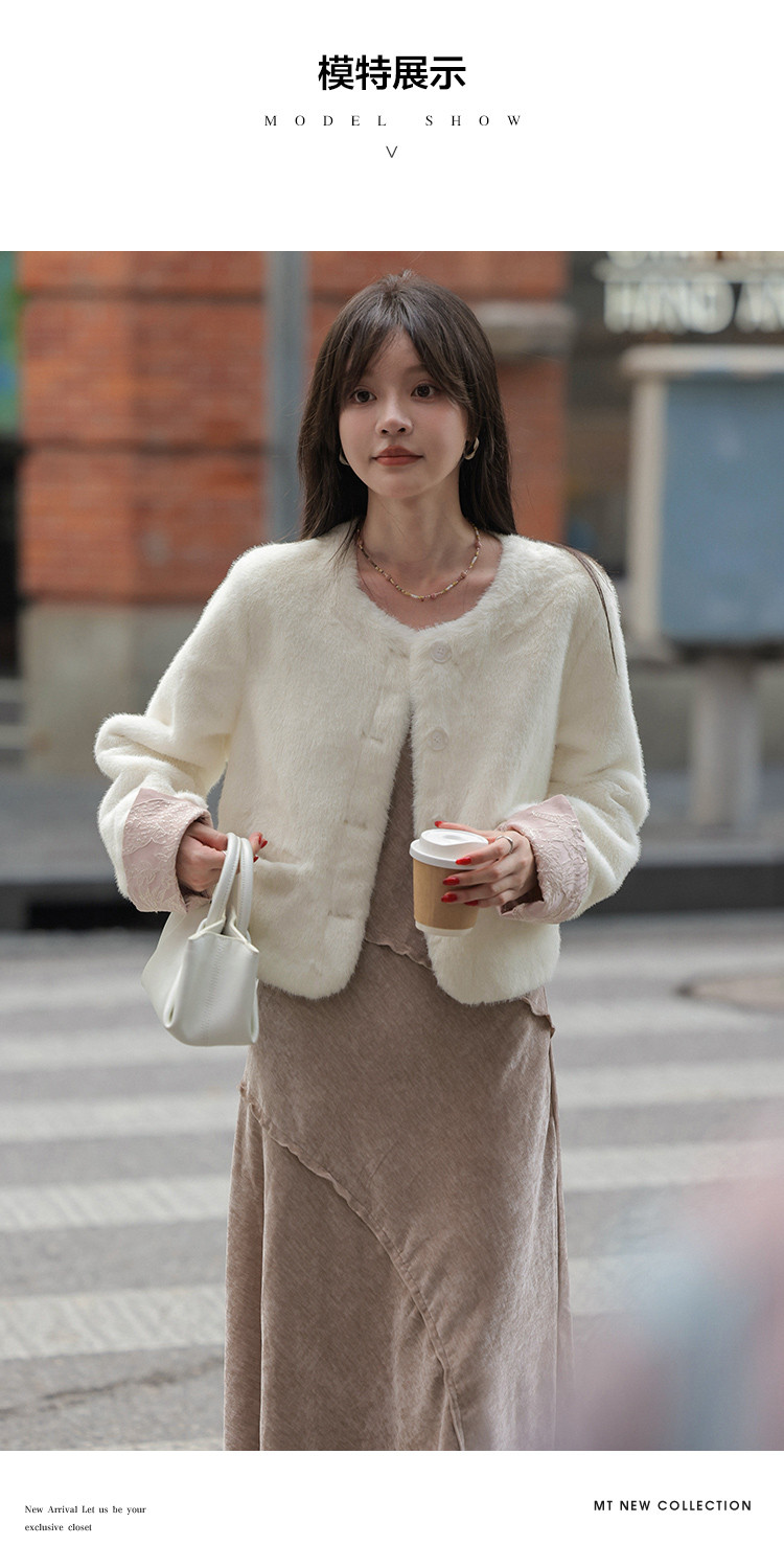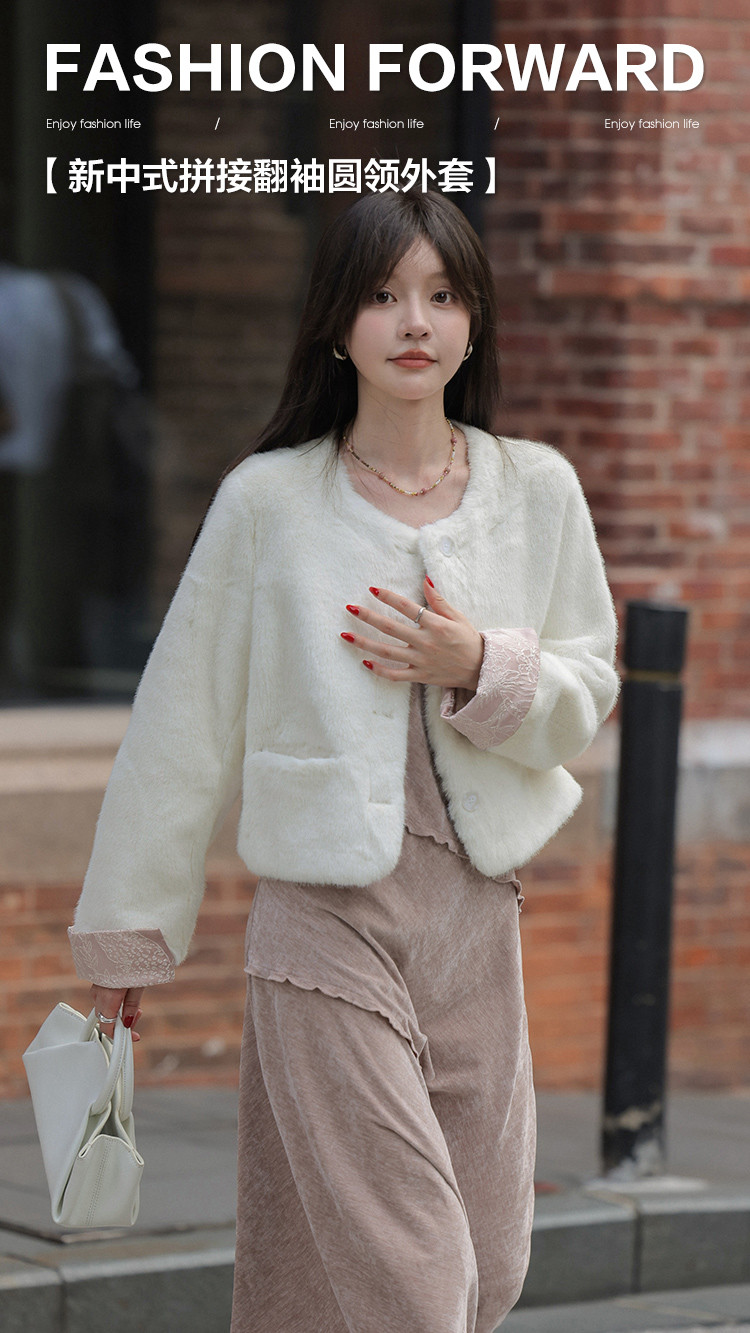 【杏仁奶油】秋冬款 新中式拼接翻袖设计圆领仿貂绒纯色外套