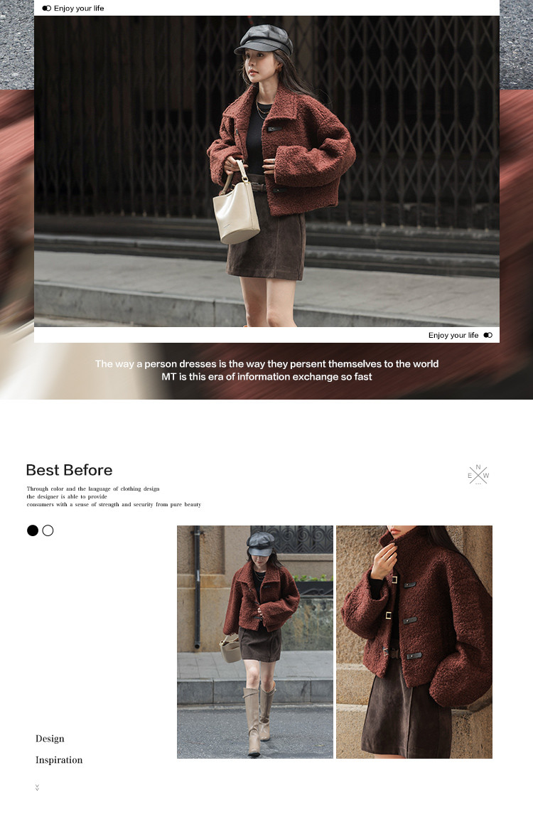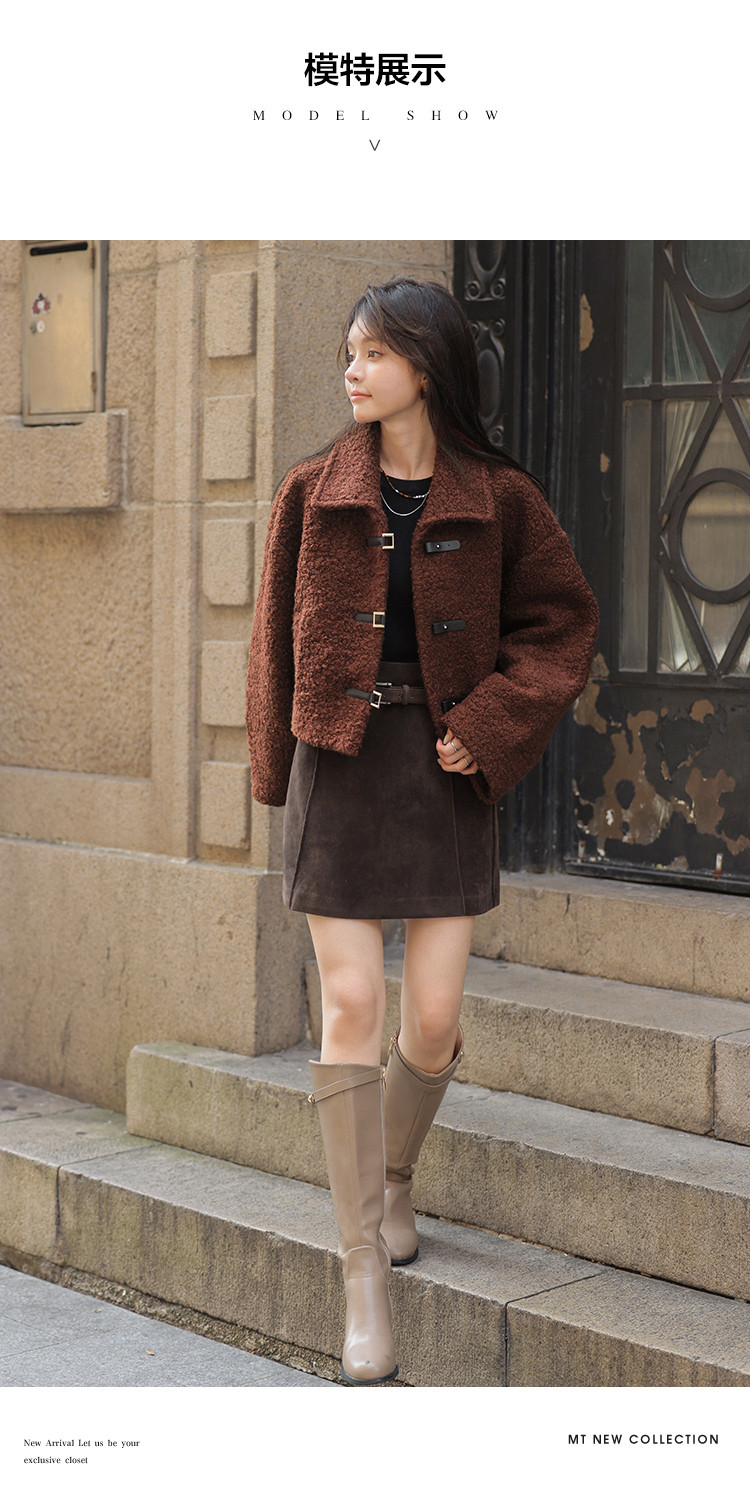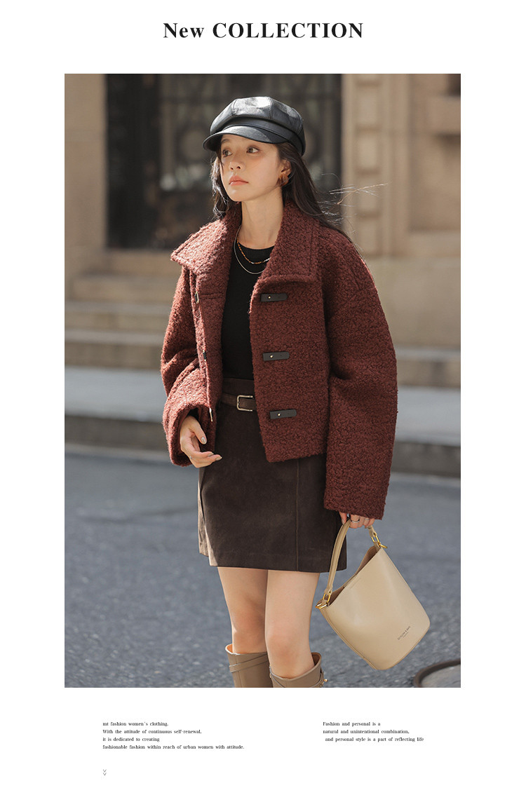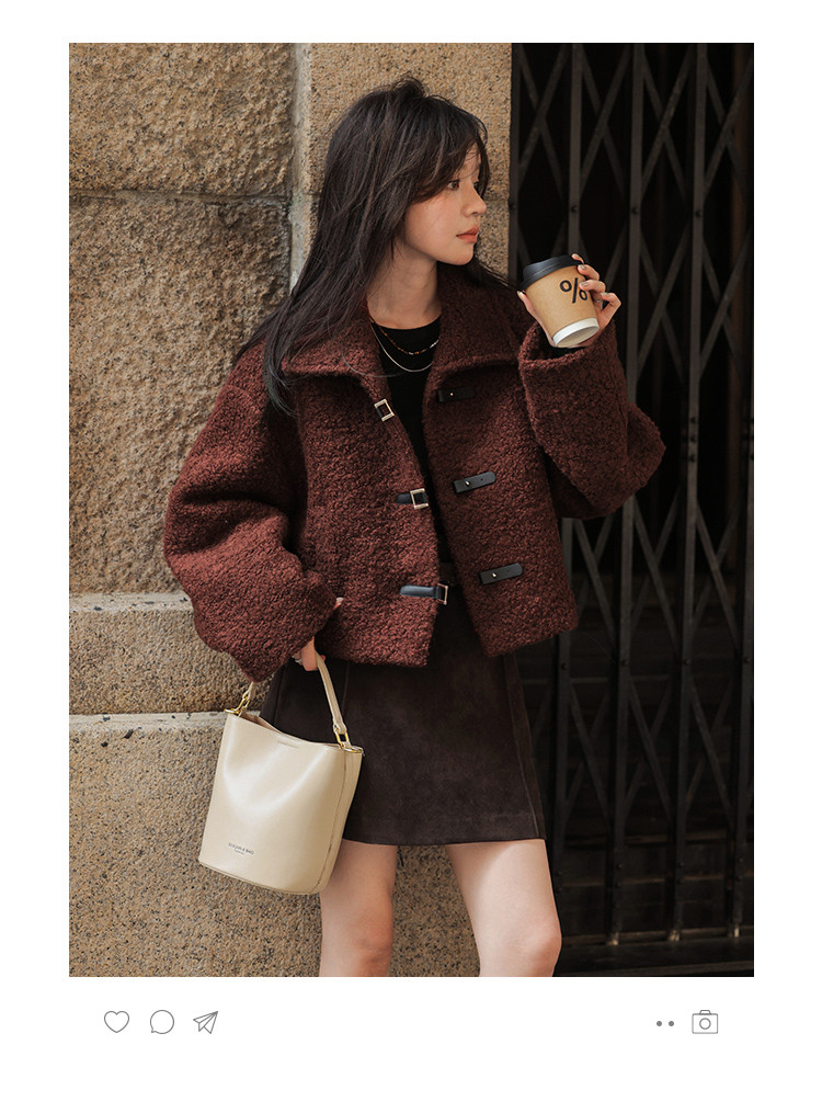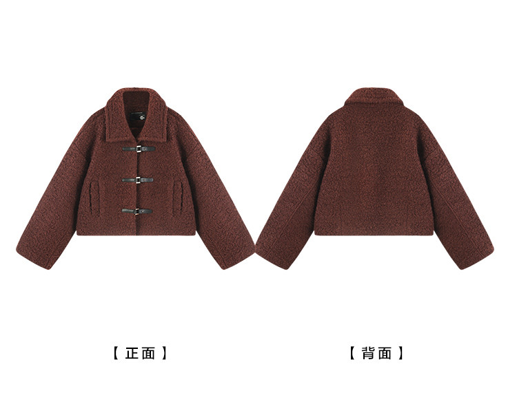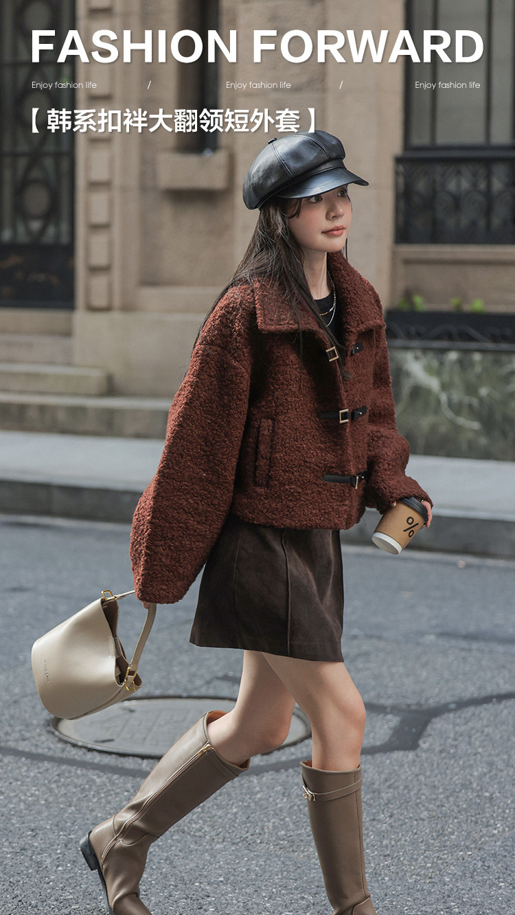 【秋日板栗】冬季款 时尚扣袢设计韩系短款大翻领暖融融短外套