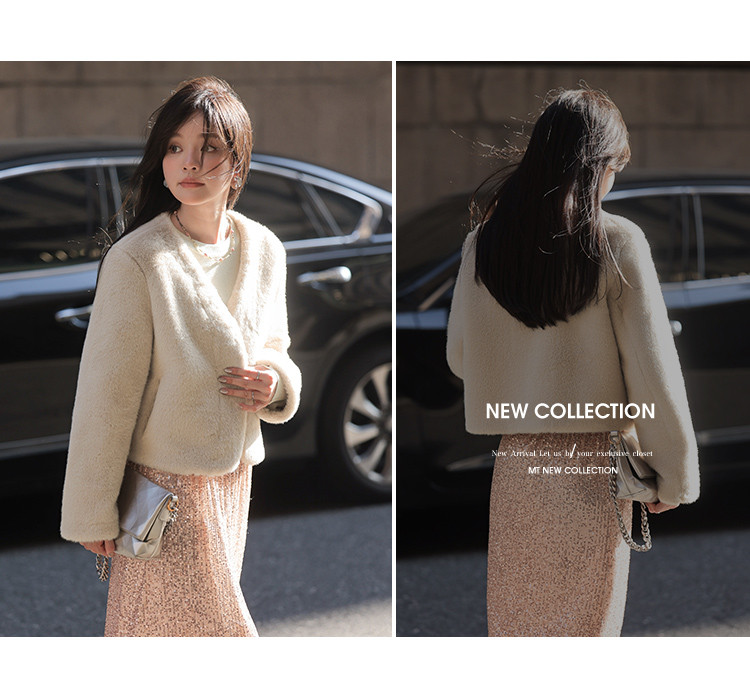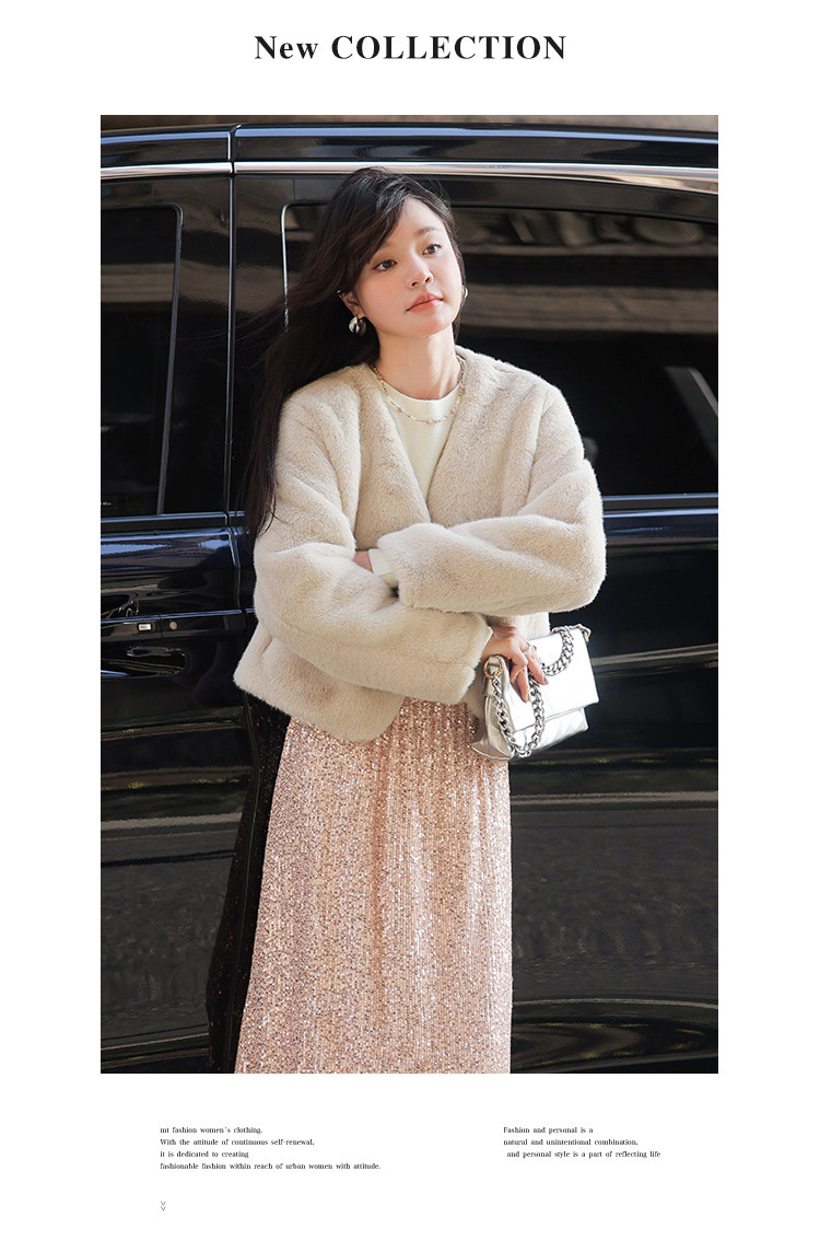 【治愈奶油风】秋冬季 时尚短款简约气质休闲简约风仿貂绒外套