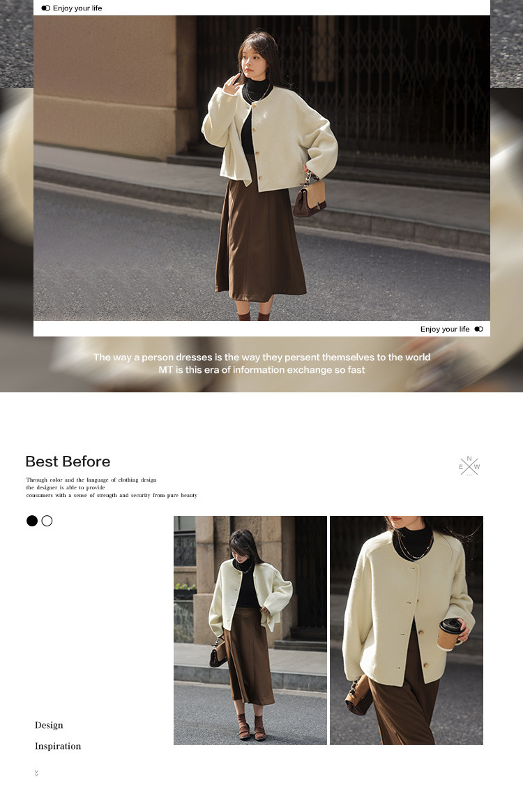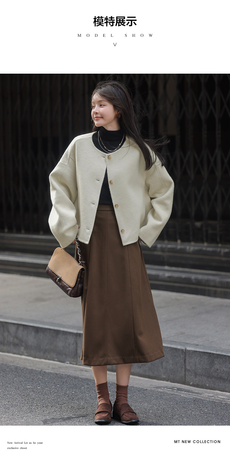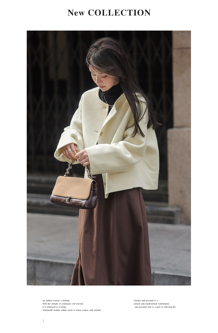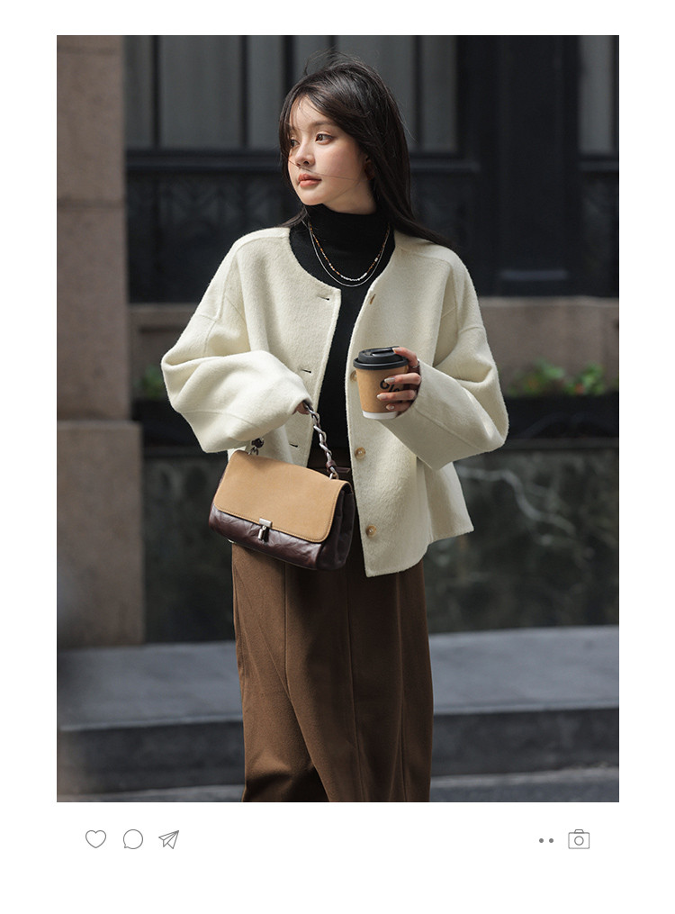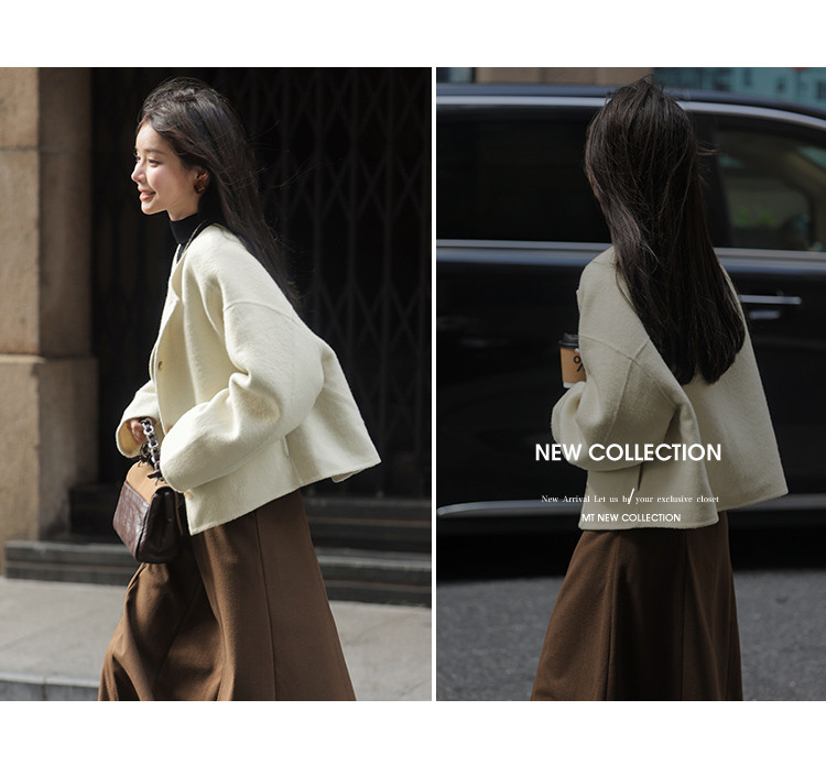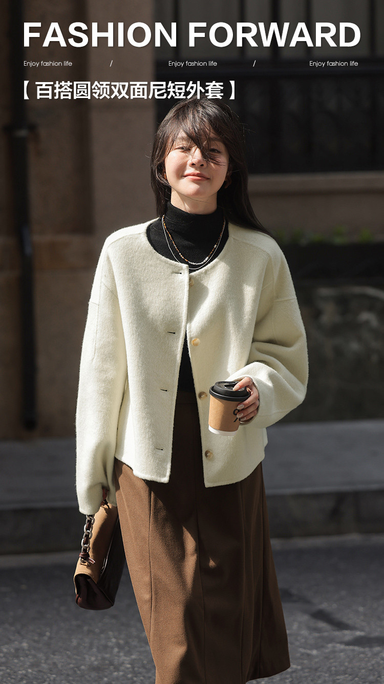 【奶油华夫饼】冬季款 百搭圆领基础款双面呢休闲纯色时尚短外套
