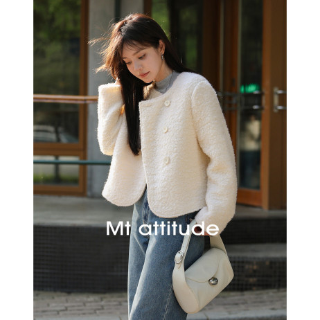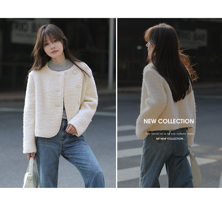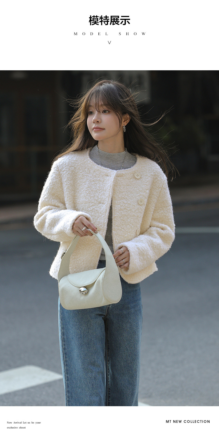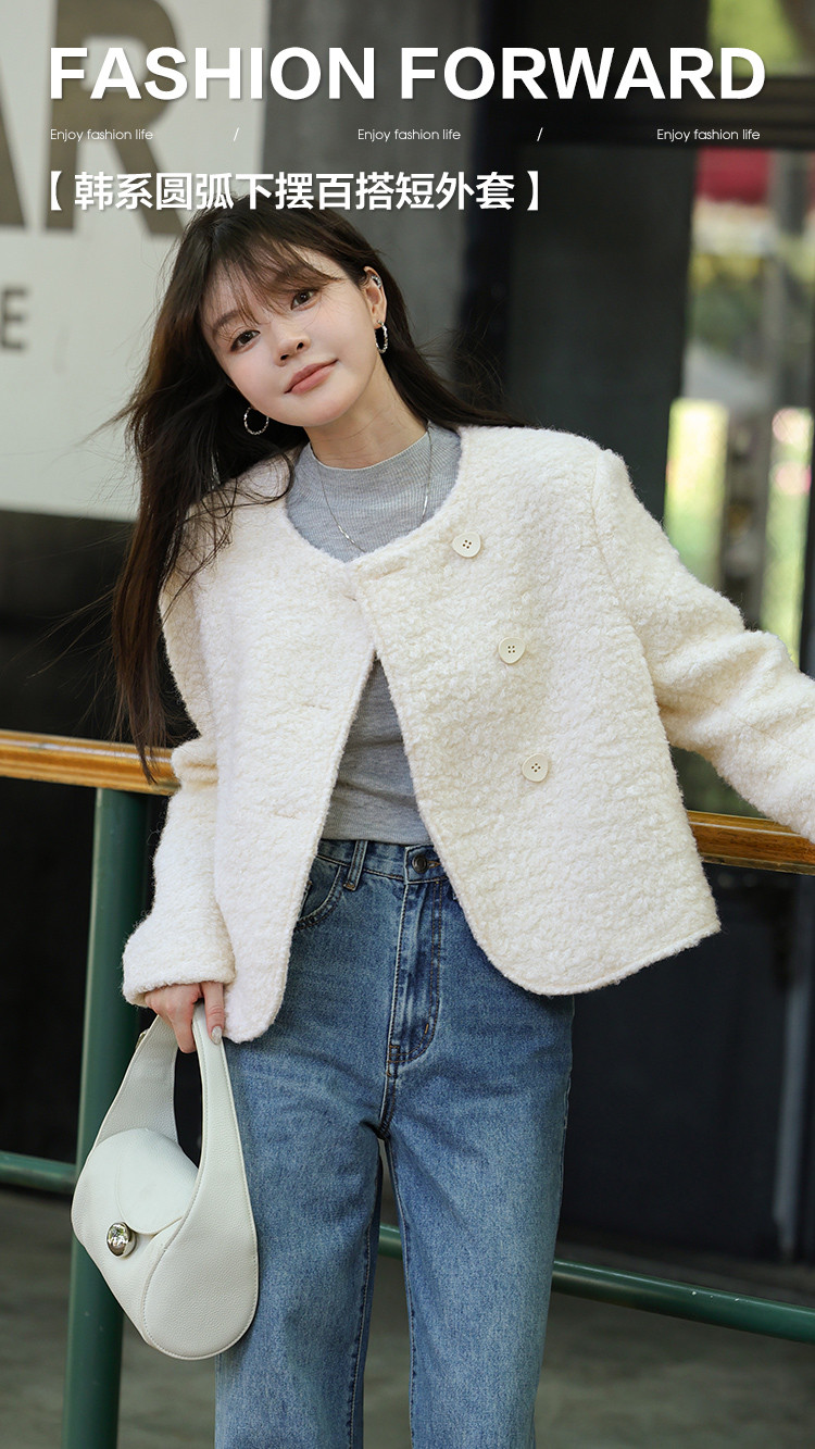 【柔软棉花糖】冬日温暖韩系圆弧下摆百搭圈圈纯色休闲简约短外套