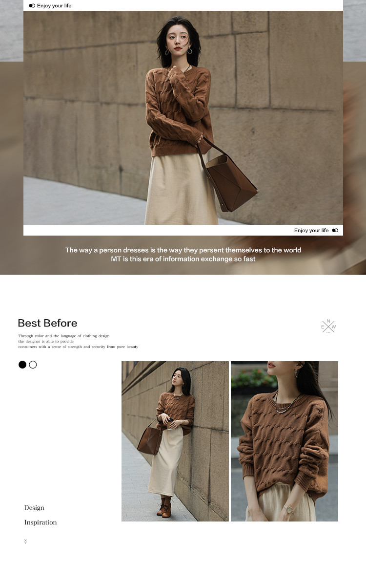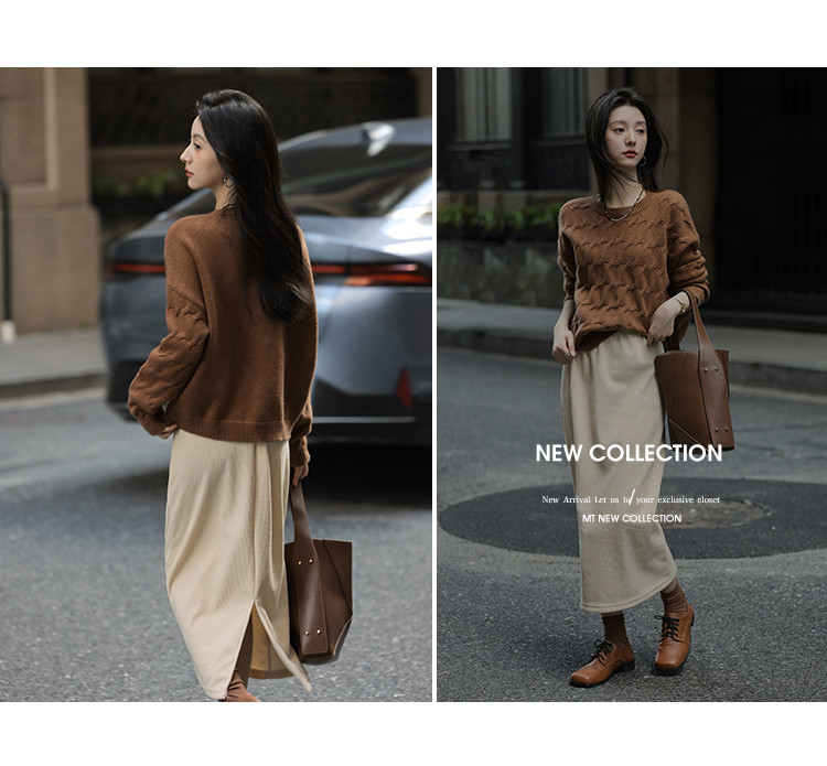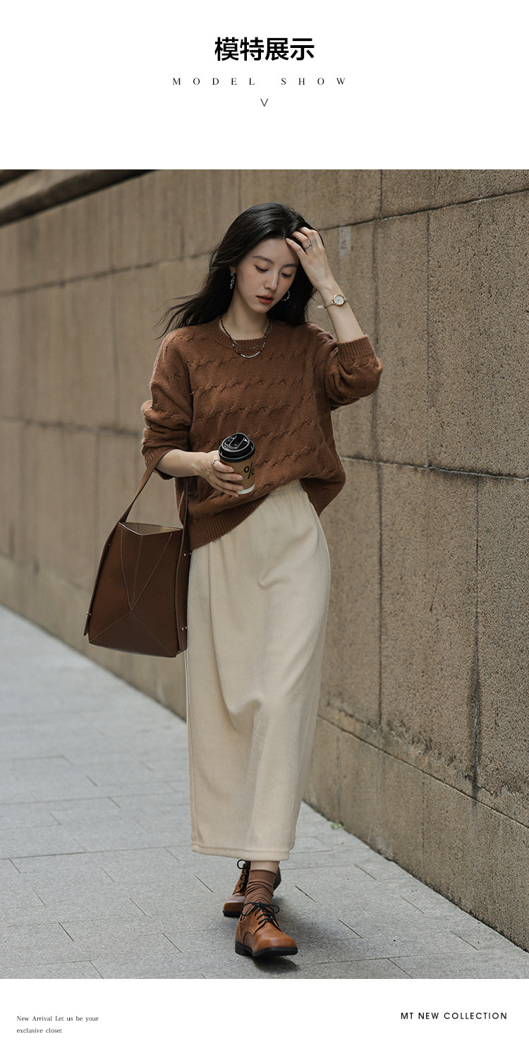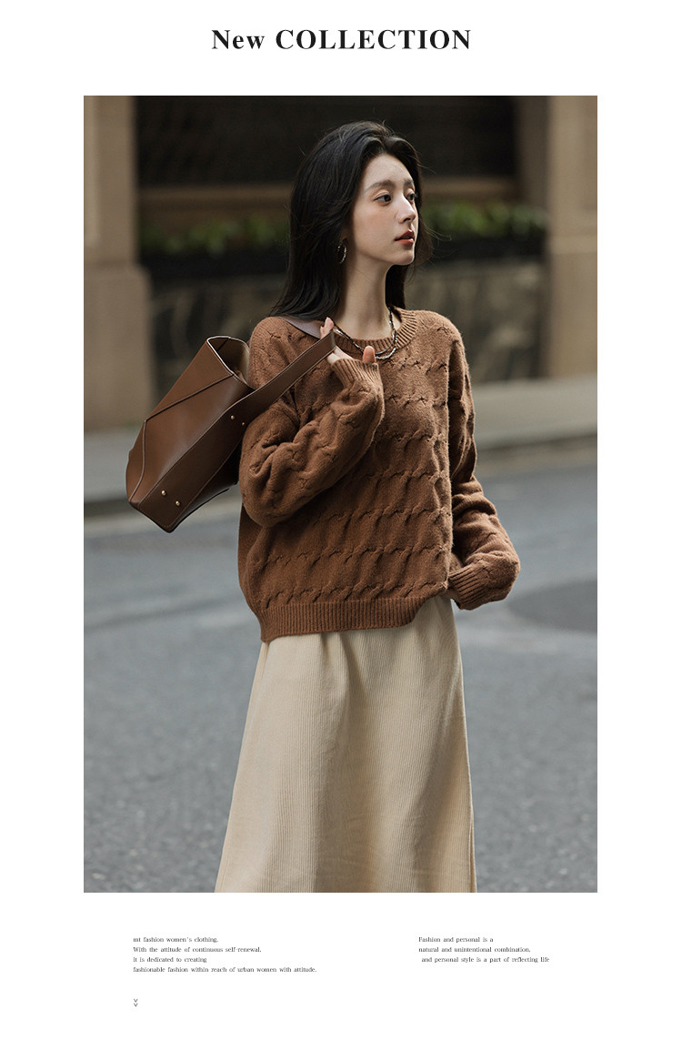 【共赴新岁】冬季复古慵懒风简约圆领长袖舒适遮肉针织衫女式上衣
