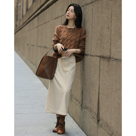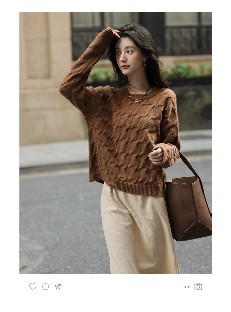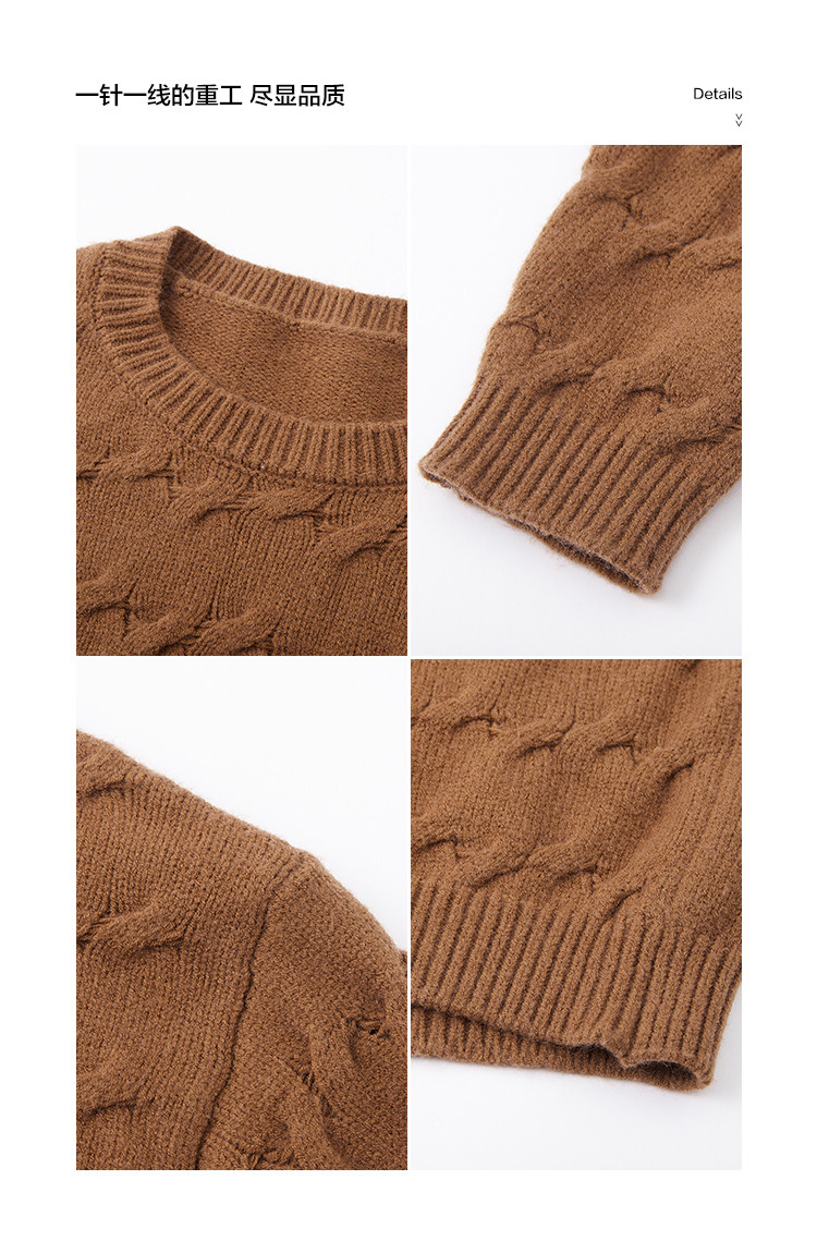 【气质百搭】2024冬款时尚精致绞花套头长袖针织衫女