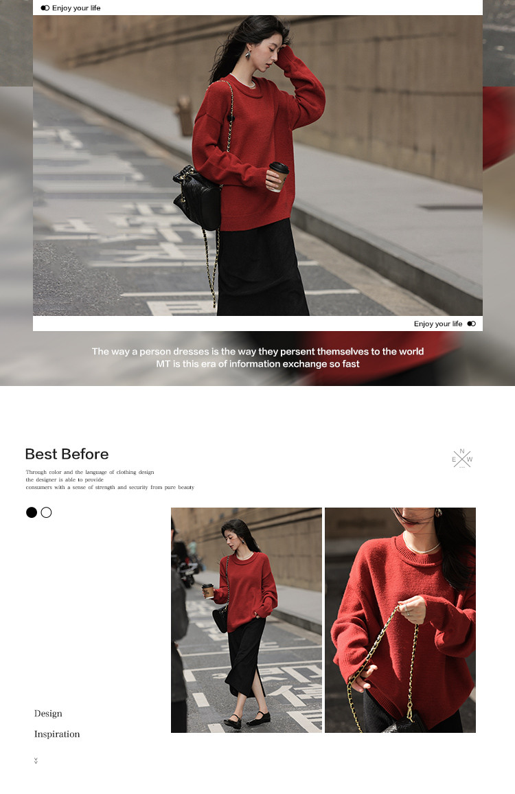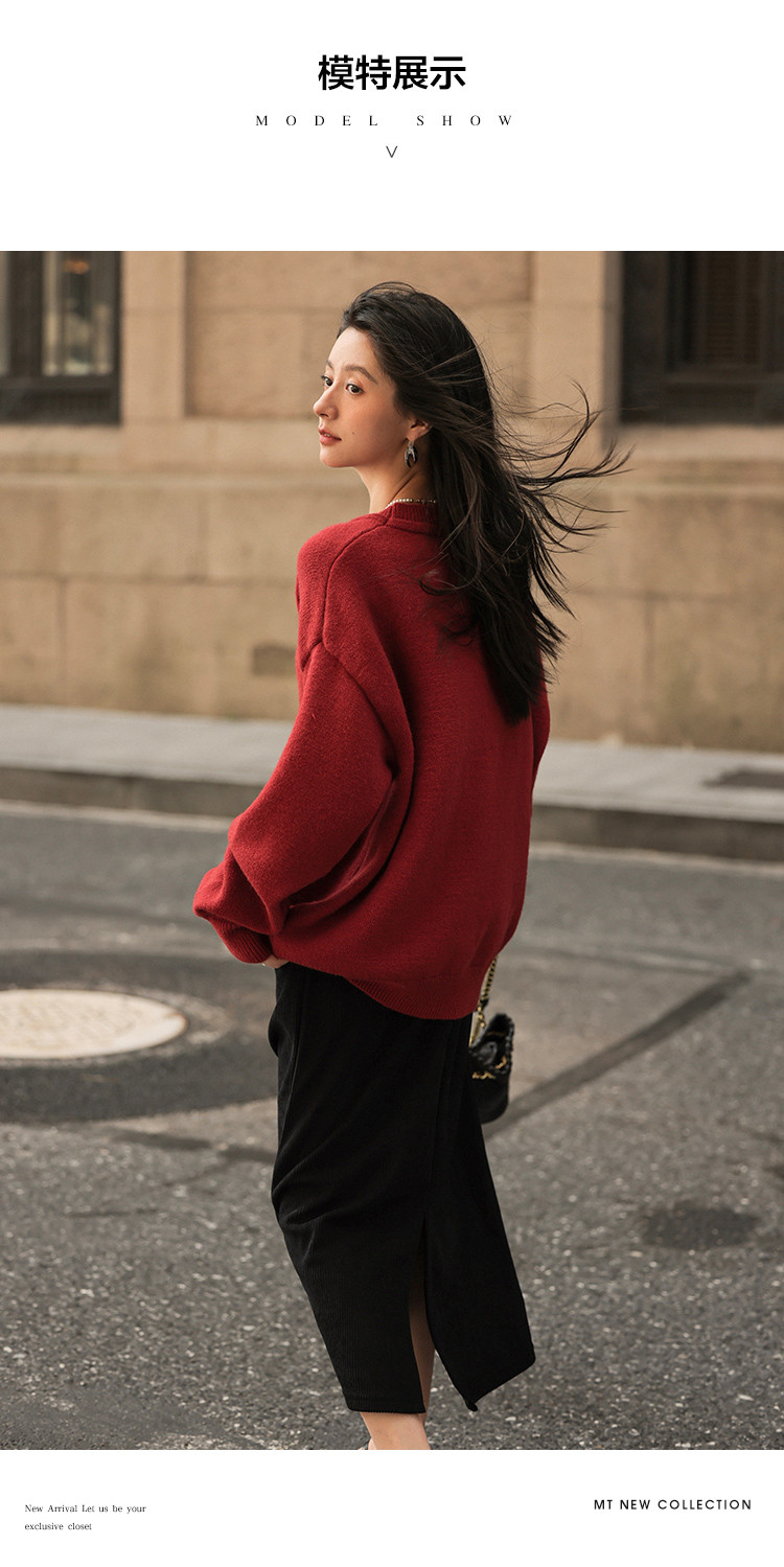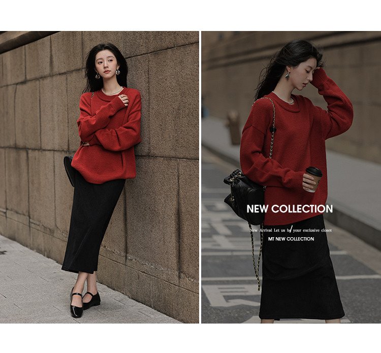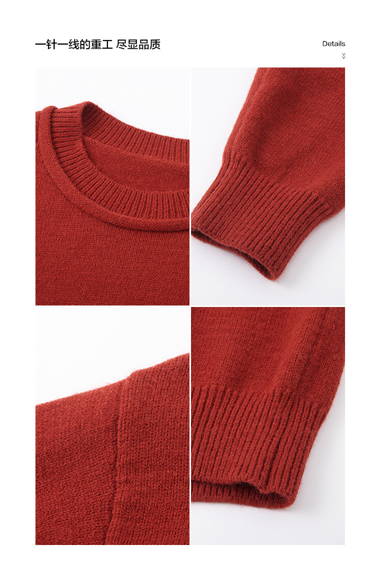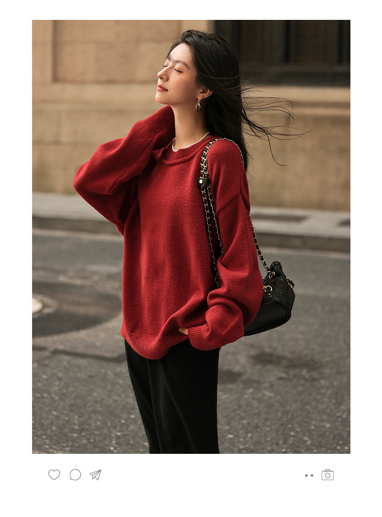 【共赴新岁】冬季复古慵懒风简约圆领长袖舒适遮肉针织衫女式上衣