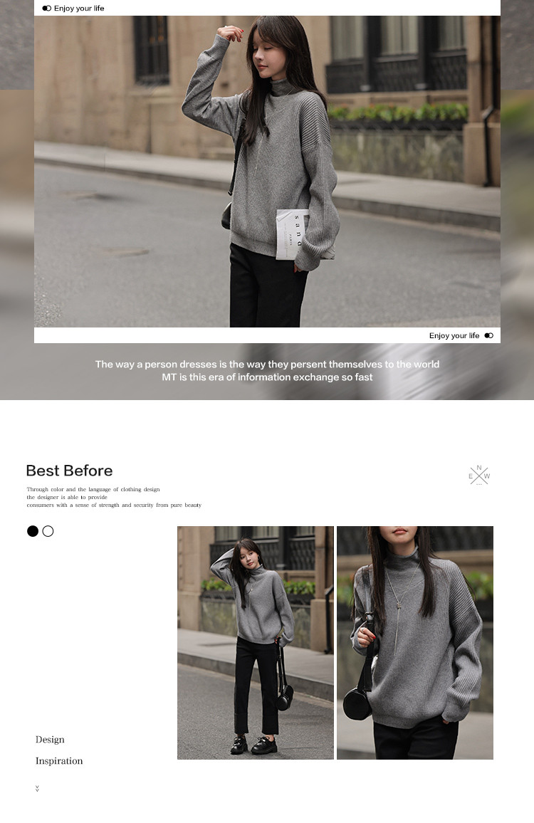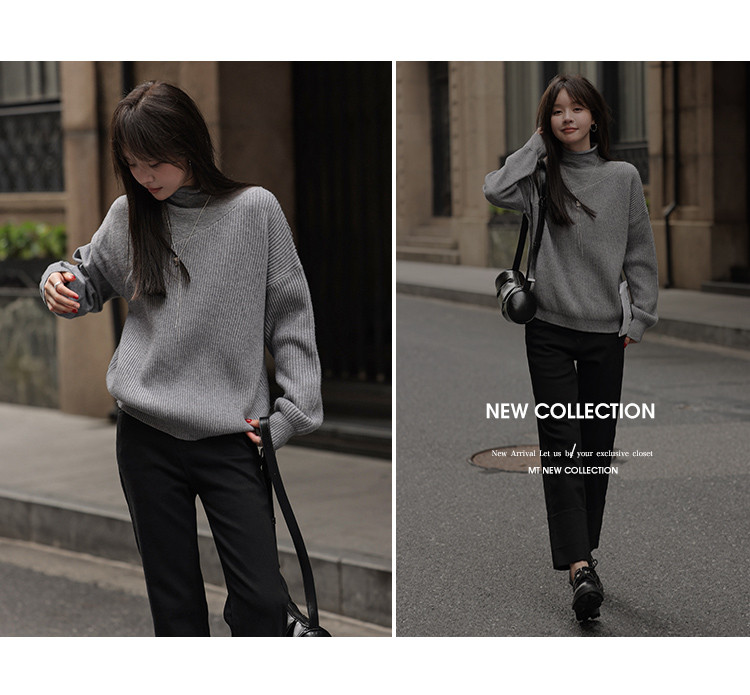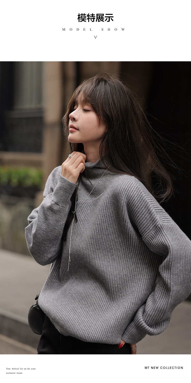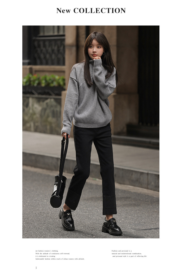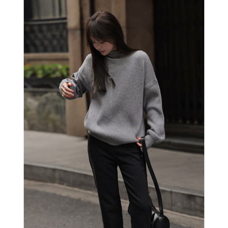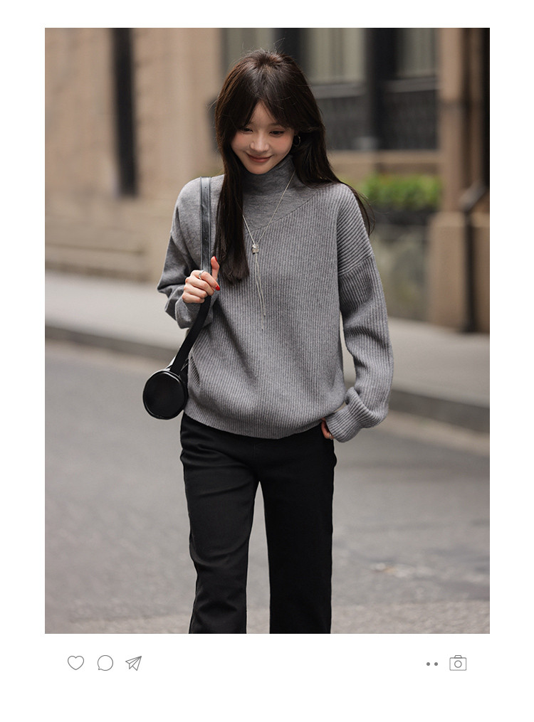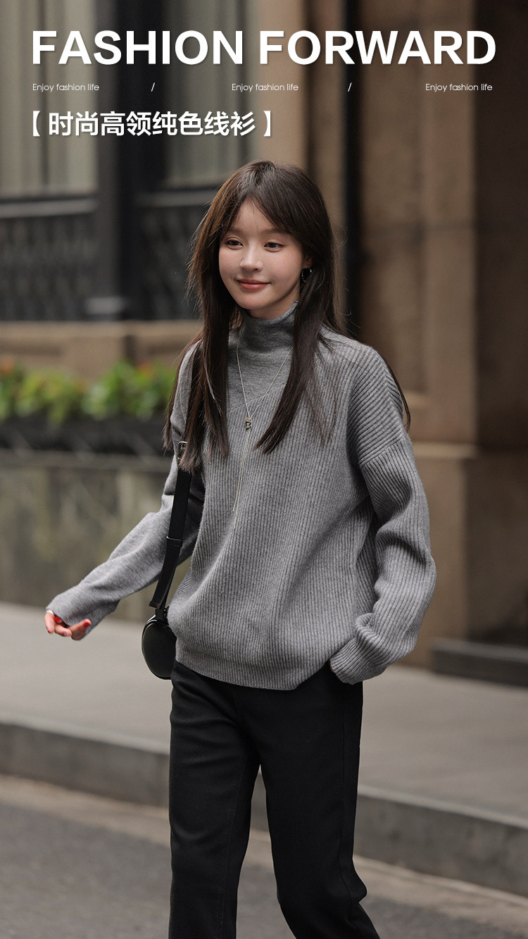 【韩系气质】2024冬款时尚高领纯色长袖套头针织衫女