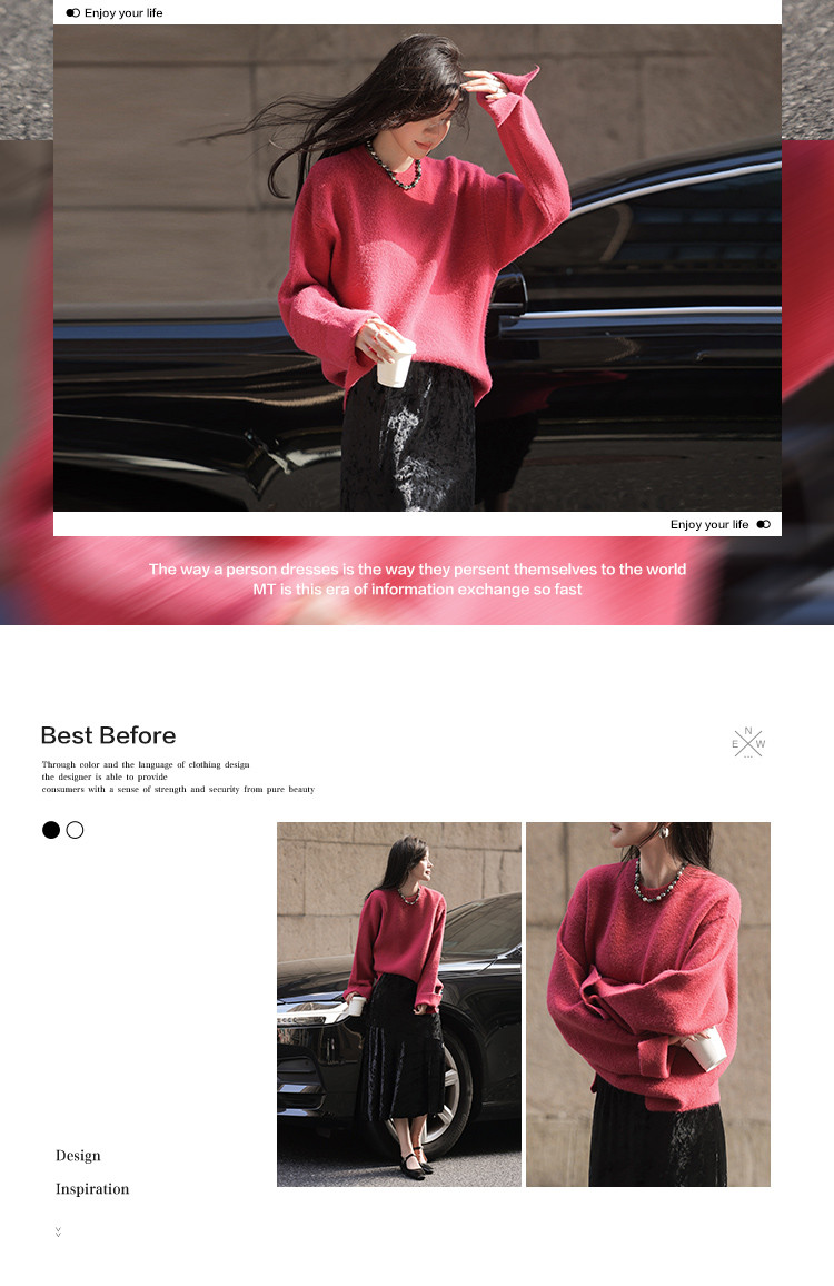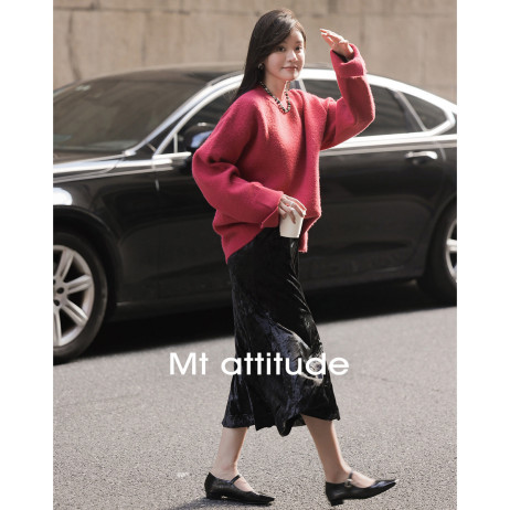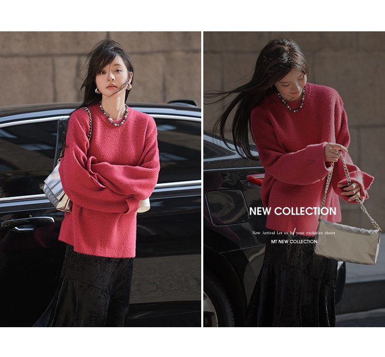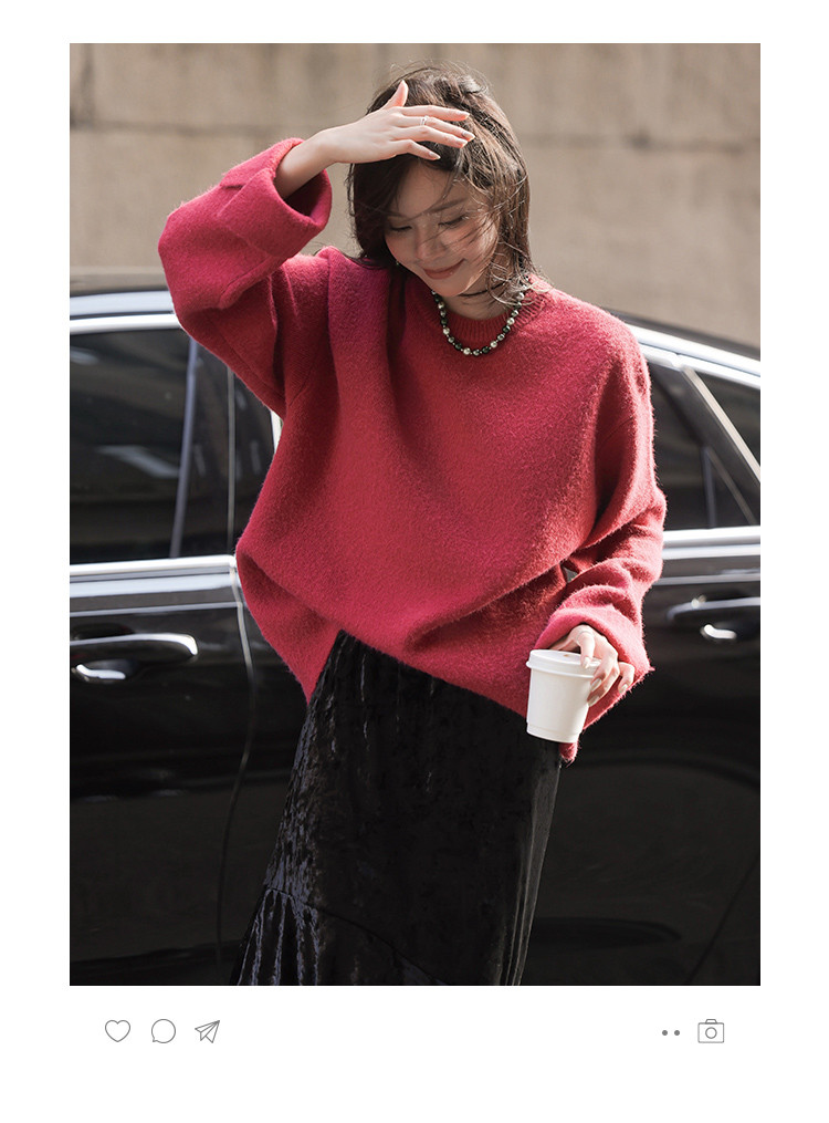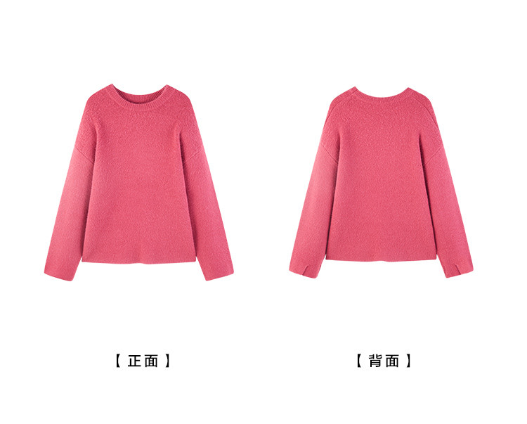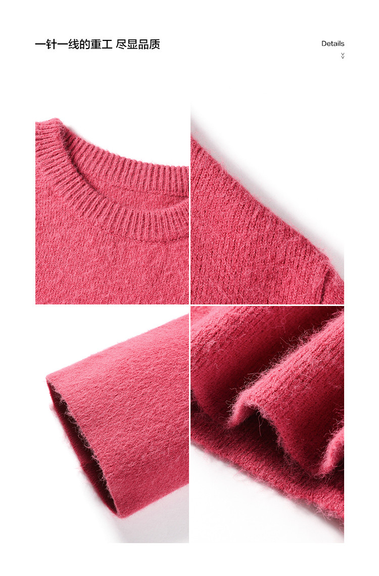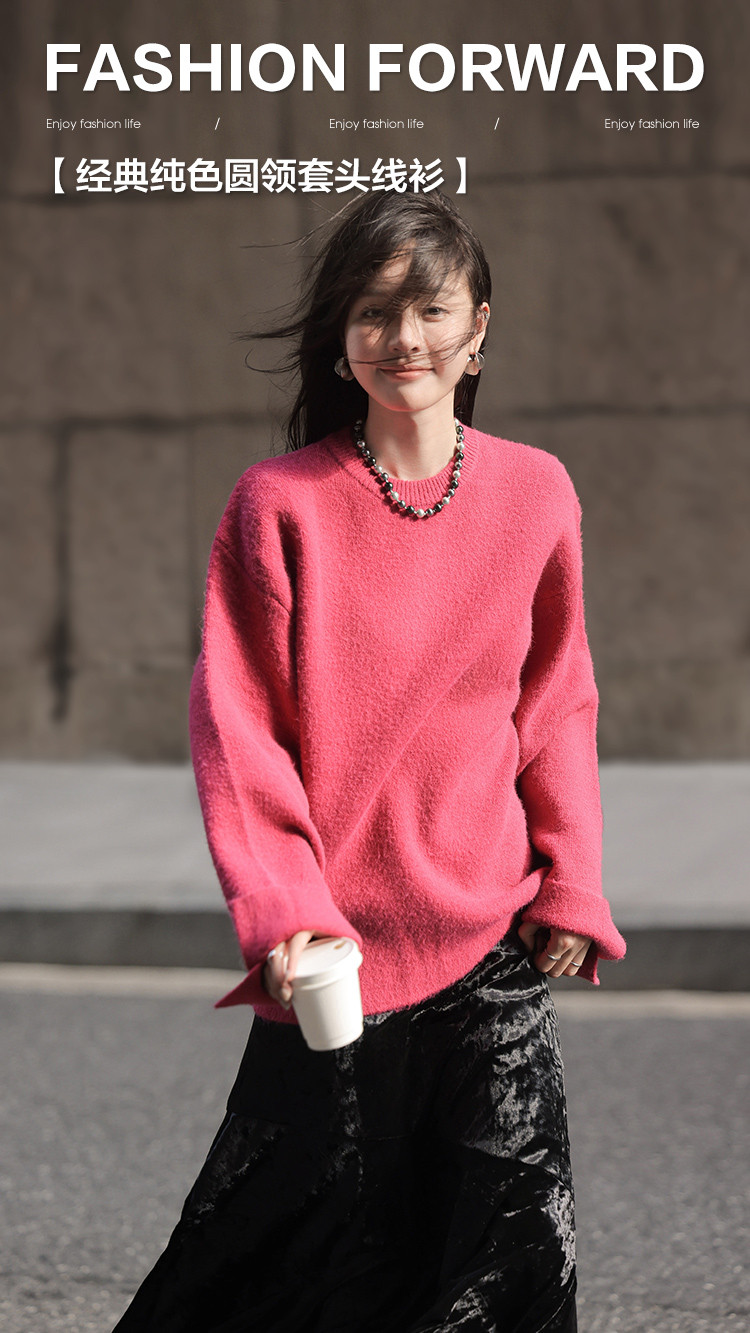【樱花蜜桃】2024冬季新品经典纯色圆领套头长袖线衫针织衫女