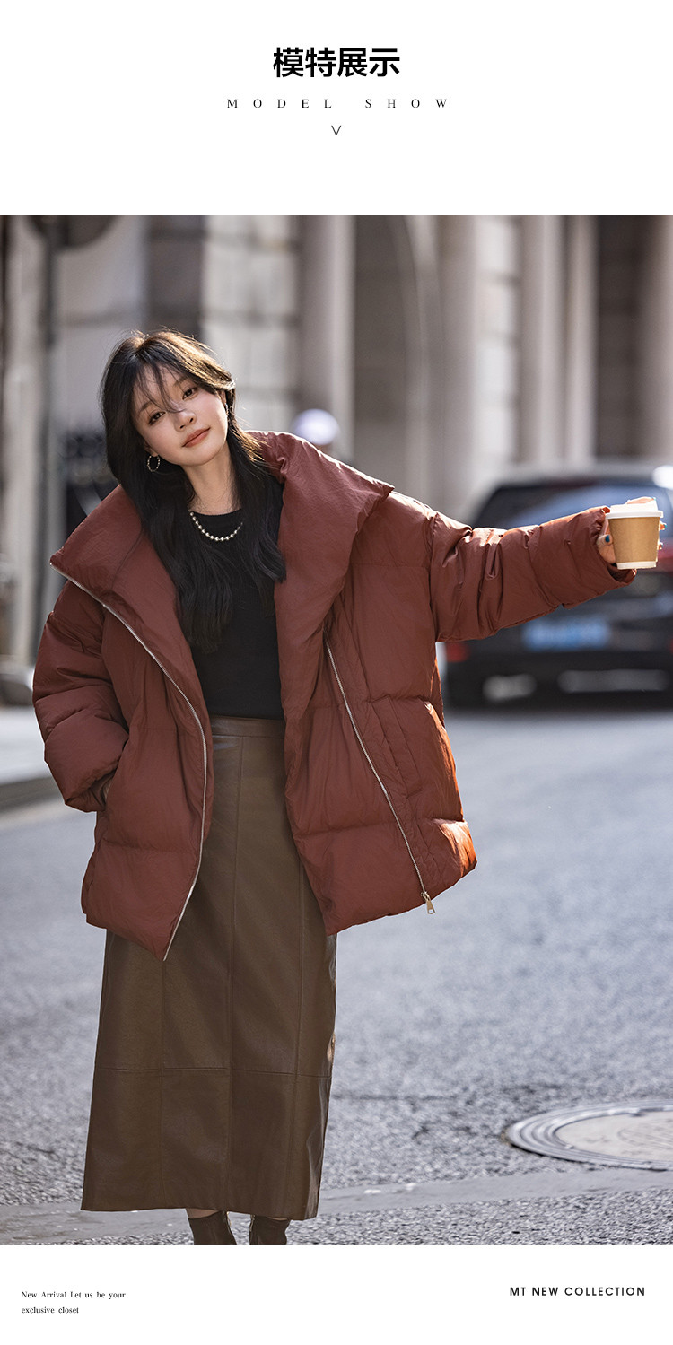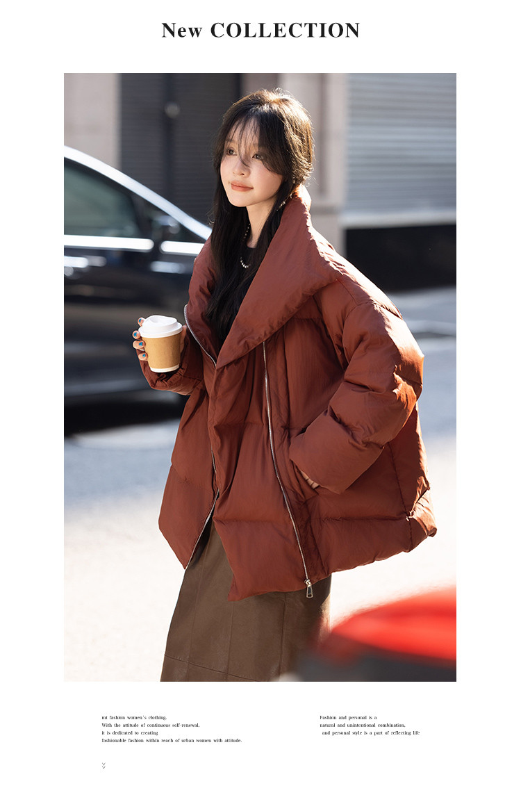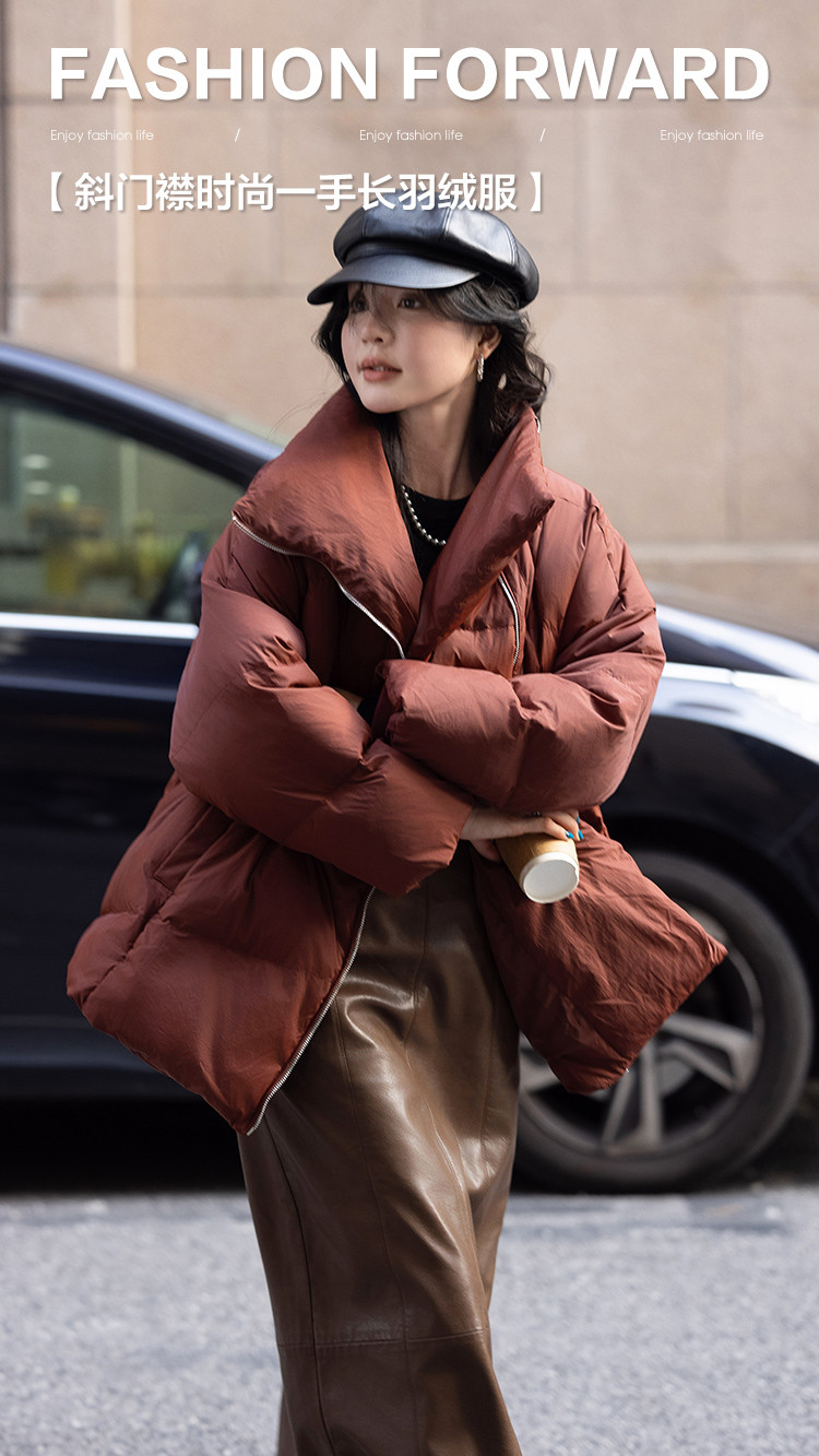 【个性拉链】2024冬款斜门襟时尚款一手长羽绒服外套女
