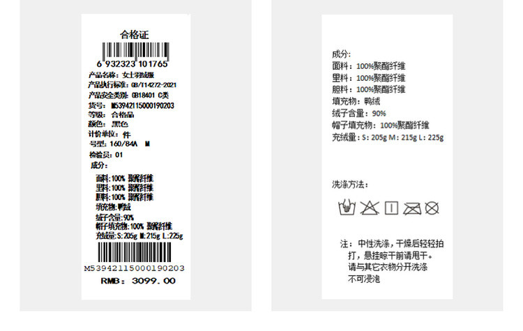 女童羽绒服