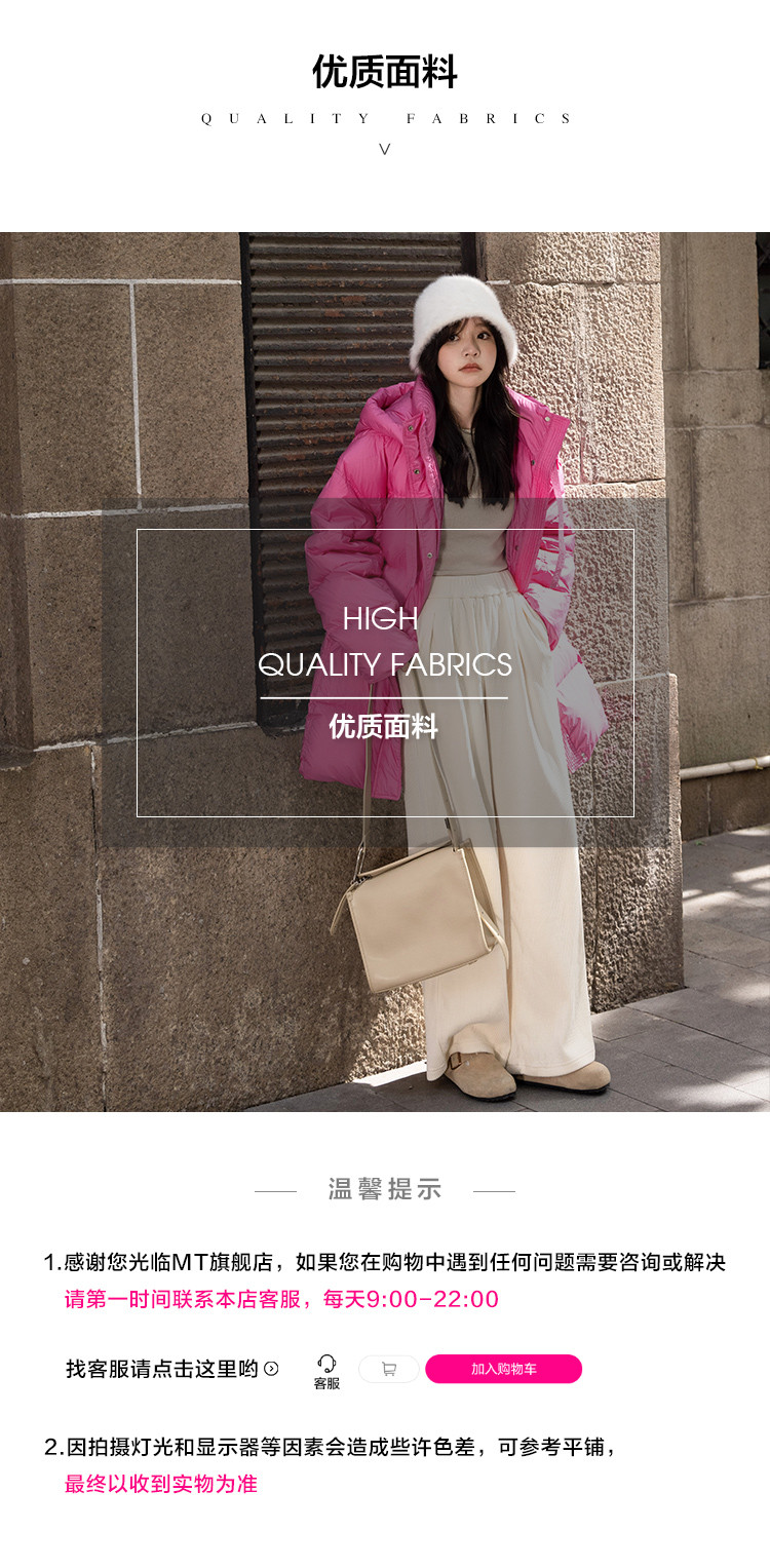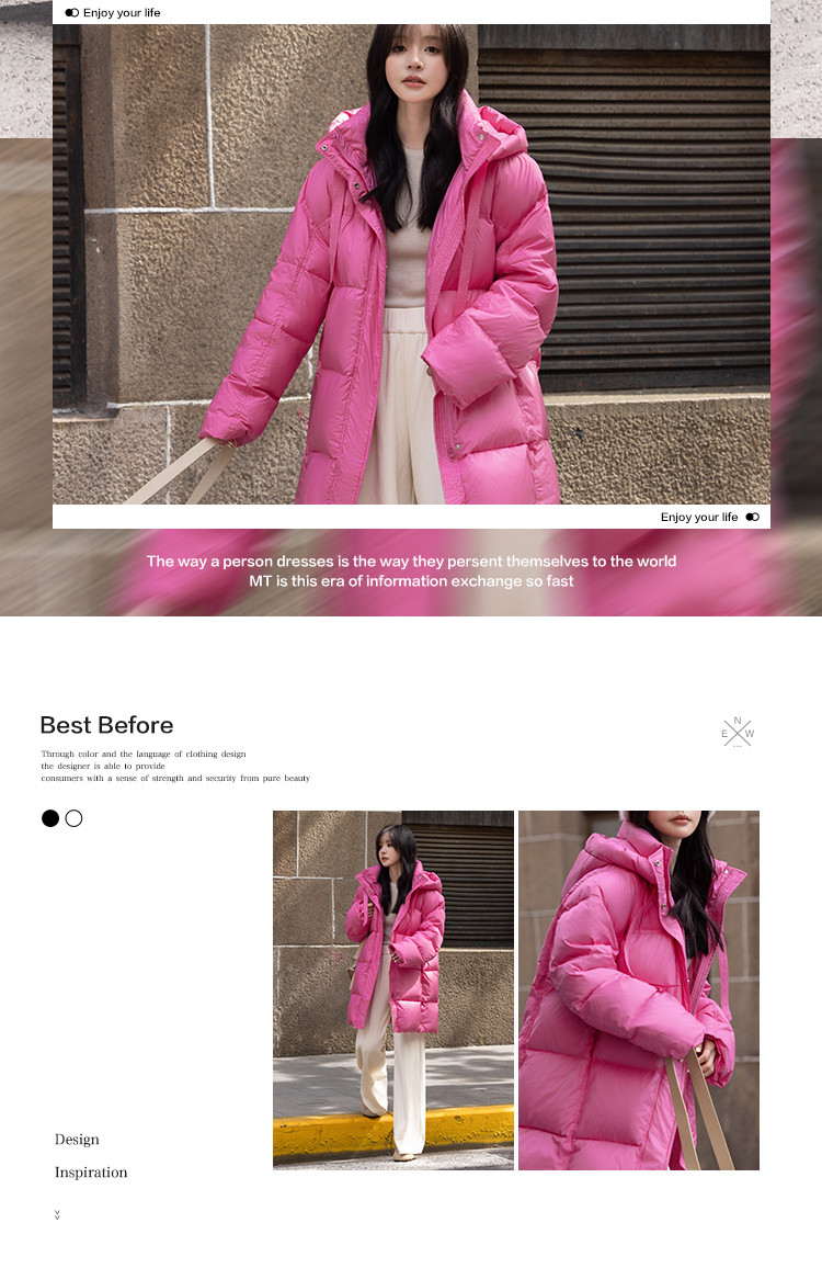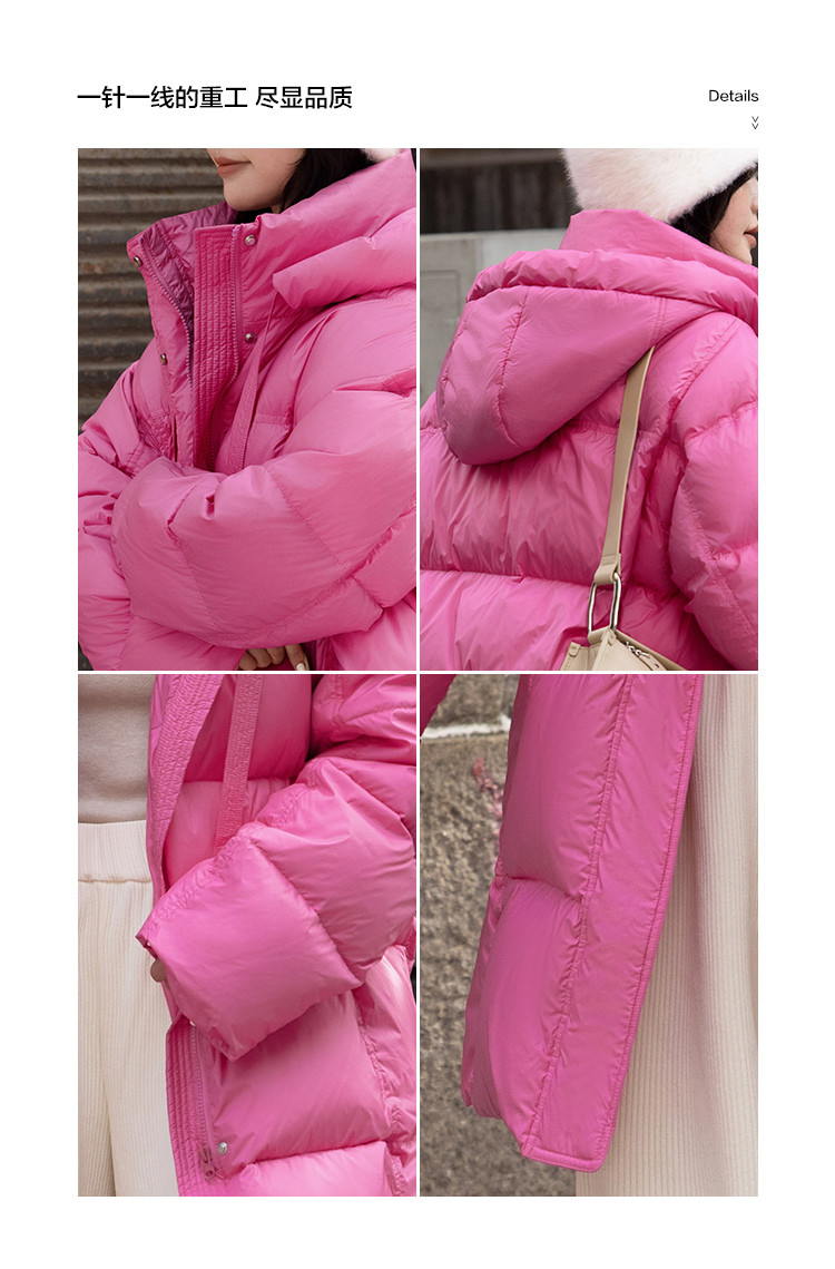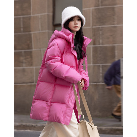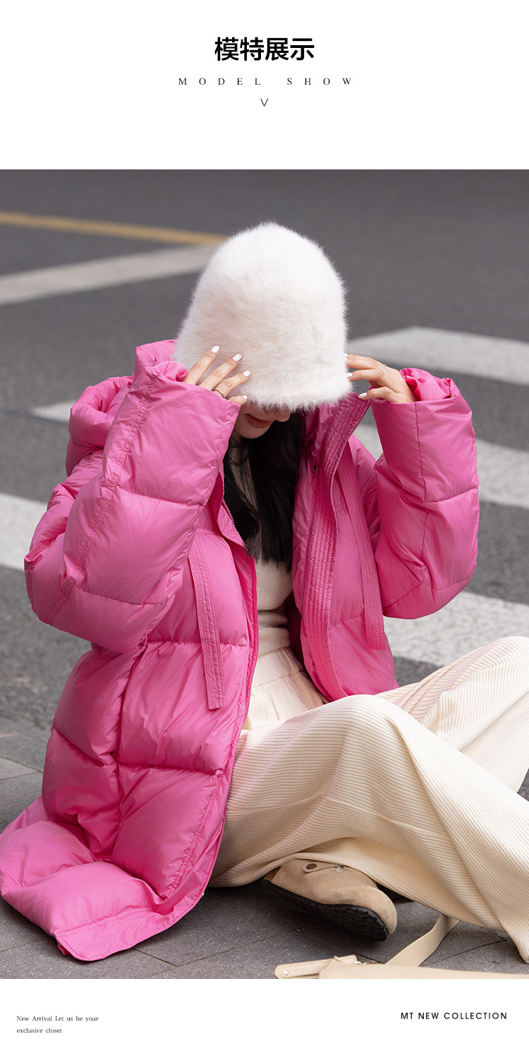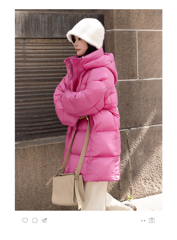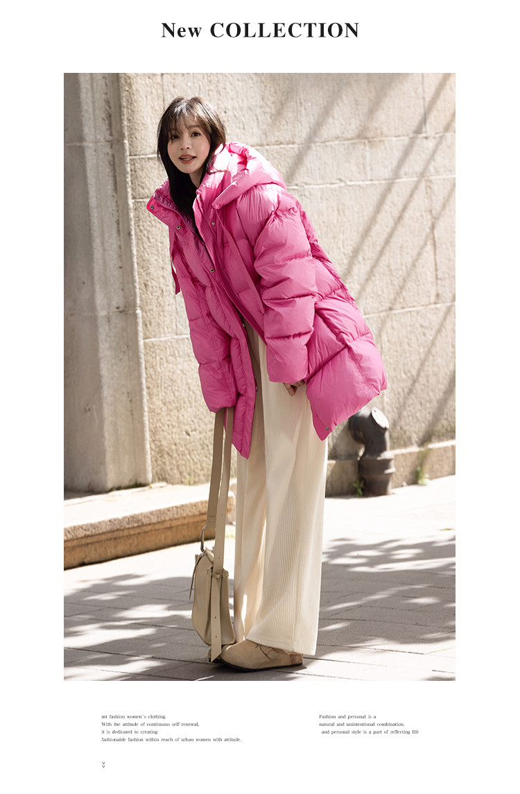 【温柔甜美】2024冬款中长款连帽时尚简约宽松羽绒服女
