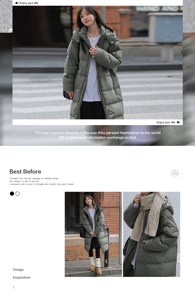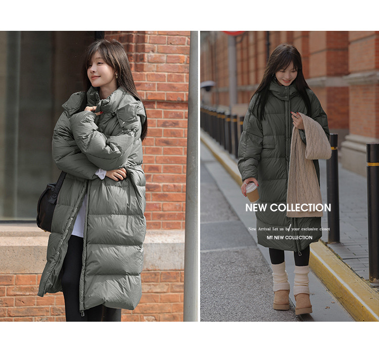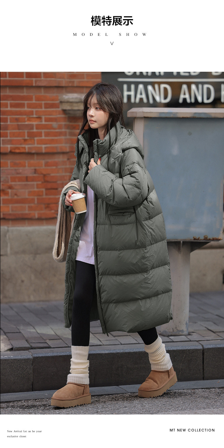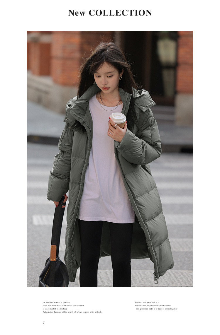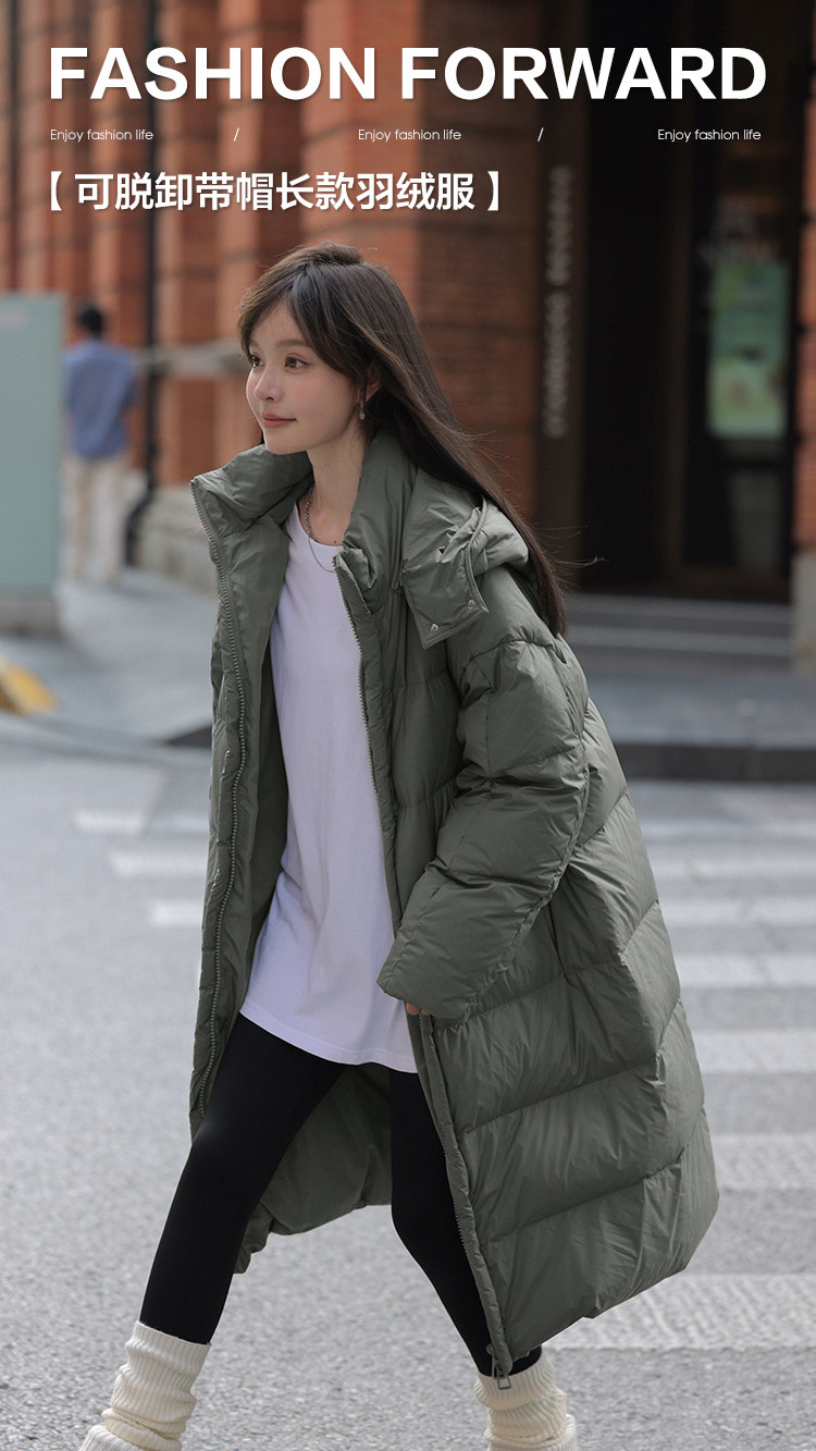 【韩系简约】2024冬款时尚简约可脱卸带帽长款羽绒服女