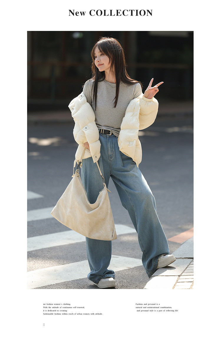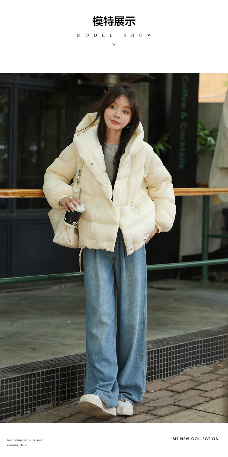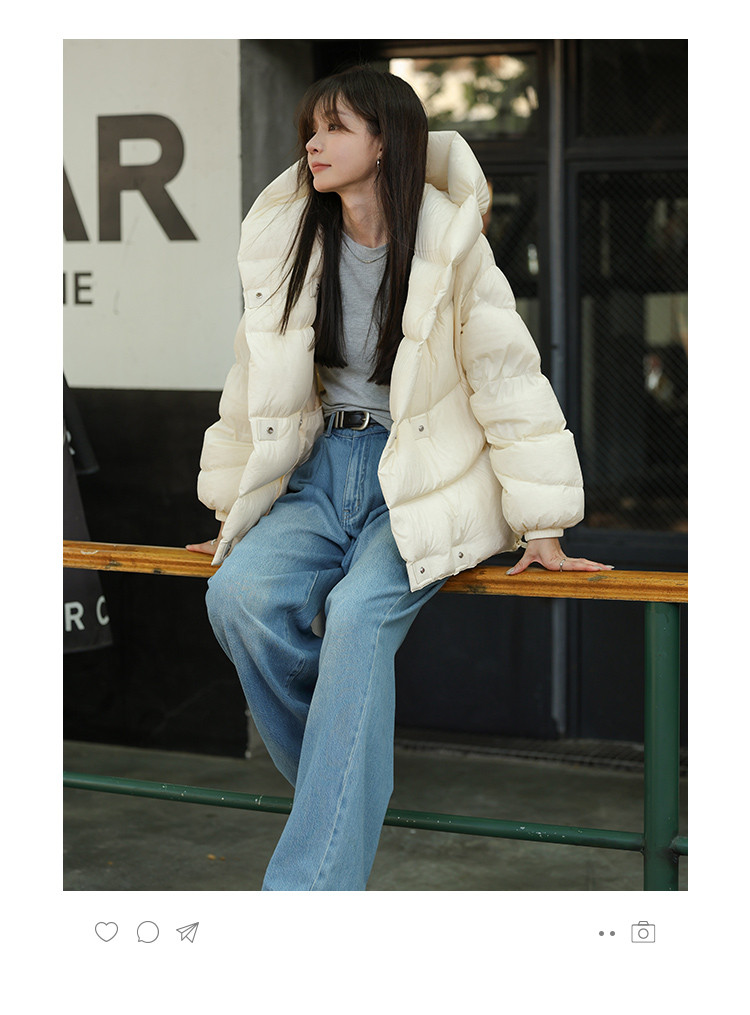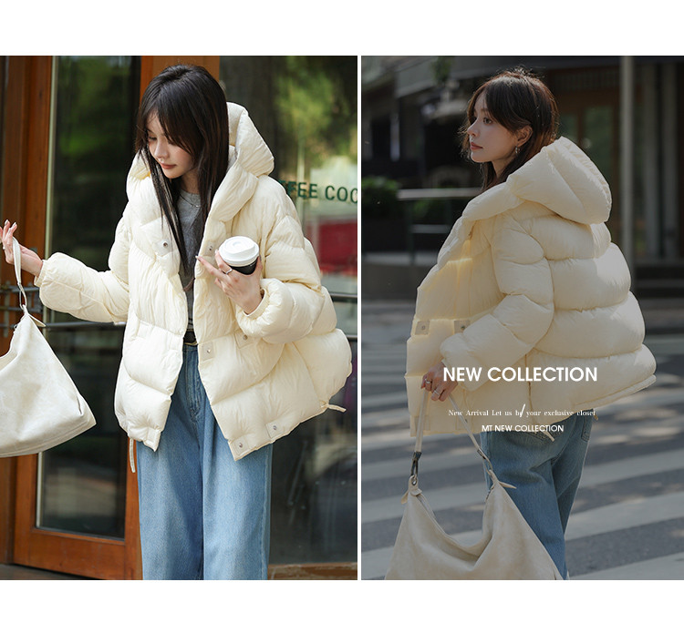 【雪花飘飘白】2024冬季温暖百搭休闲超柔云感短款连帽羽绒服