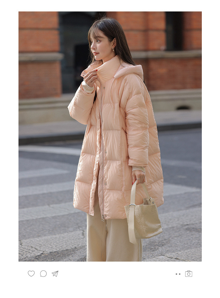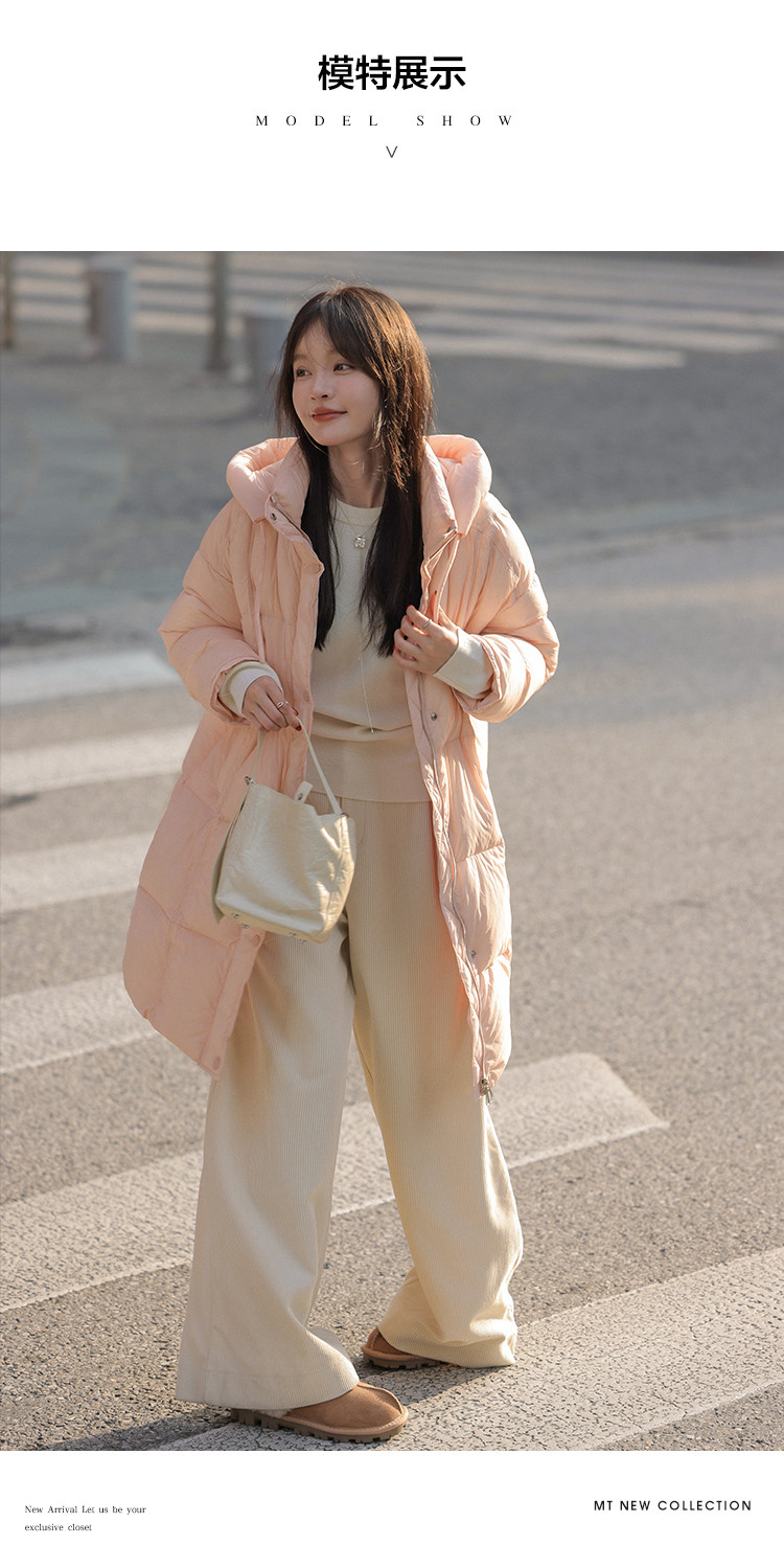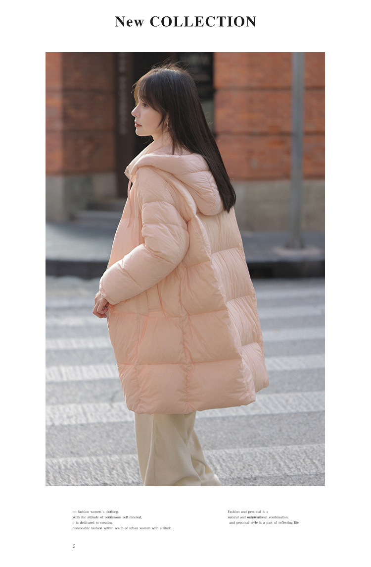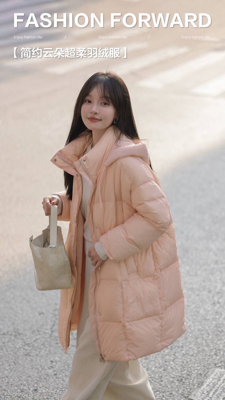 【满满温柔】2024冬款中长款连帽时尚简约云朵超柔羽绒服女