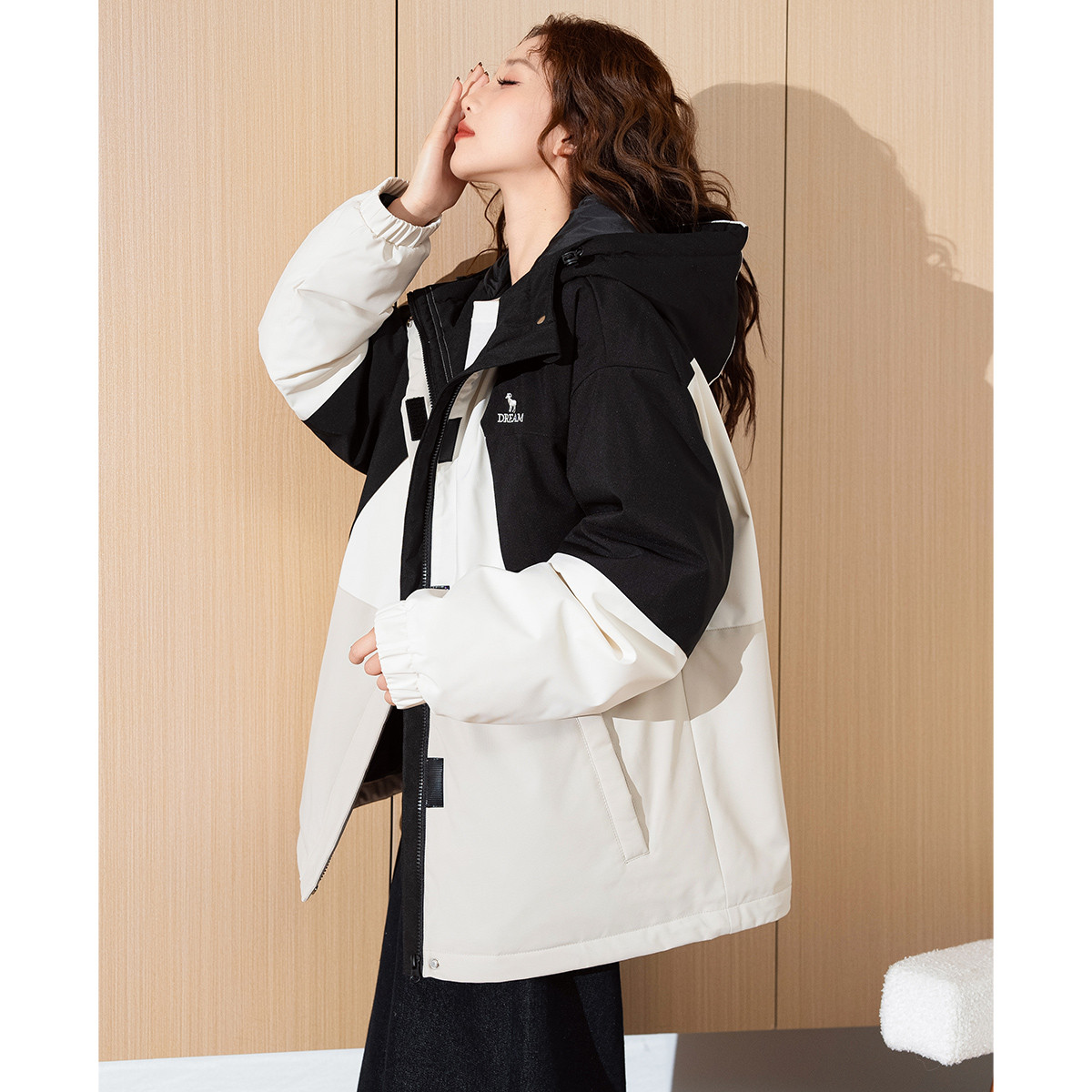 2024冬季女连帽拼接工装短款羽绒服高级感韩版潮酷帅休闲风