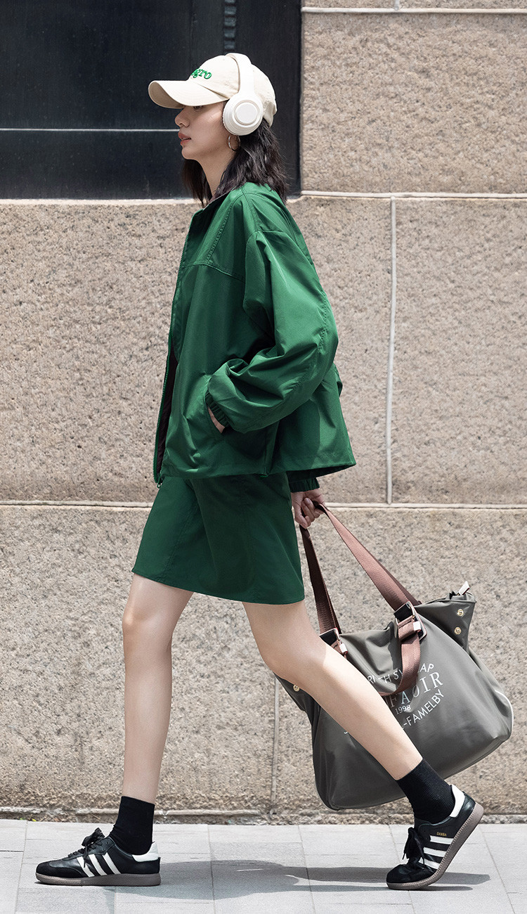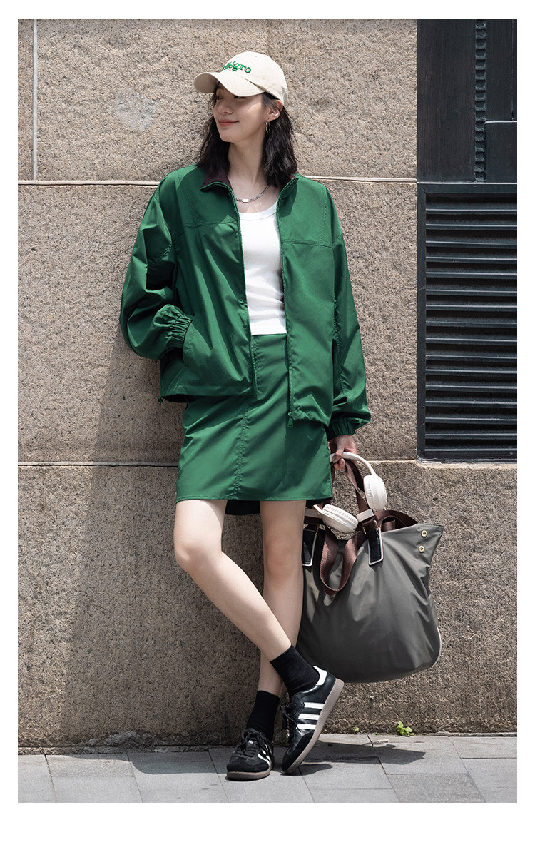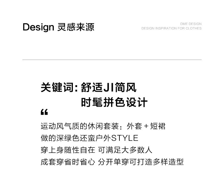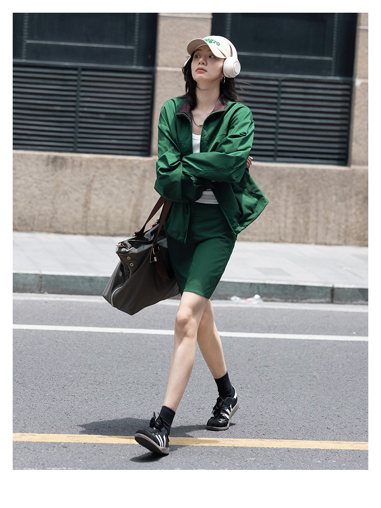 【慵懒感深绿休闲套装】2024秋撞色分割设计短裙套装女
