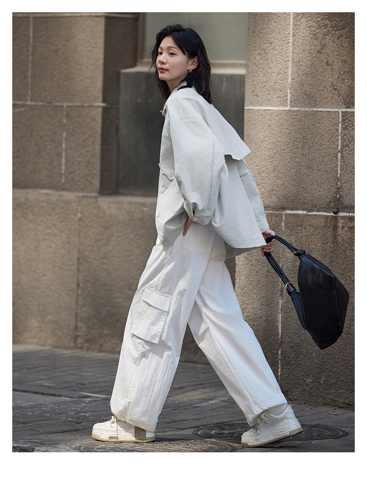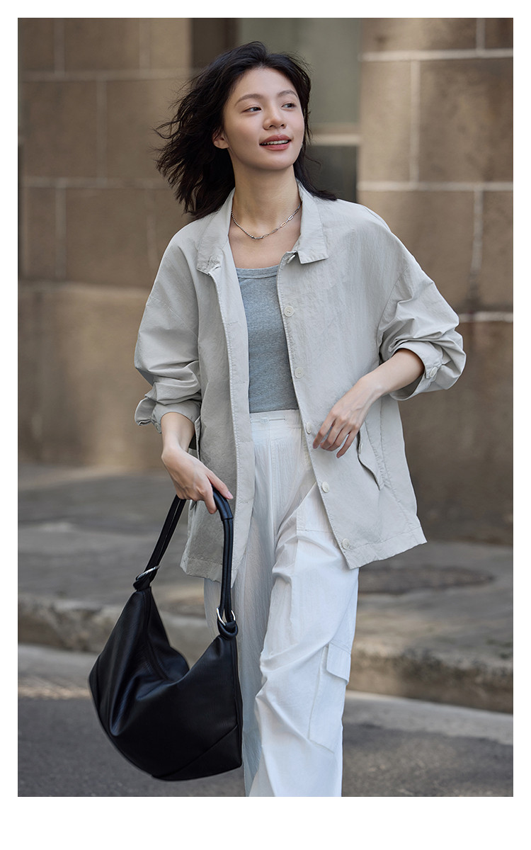 【治愈蓝灰外套】2024秋清冷气质小立领设计宽松简约松弛感