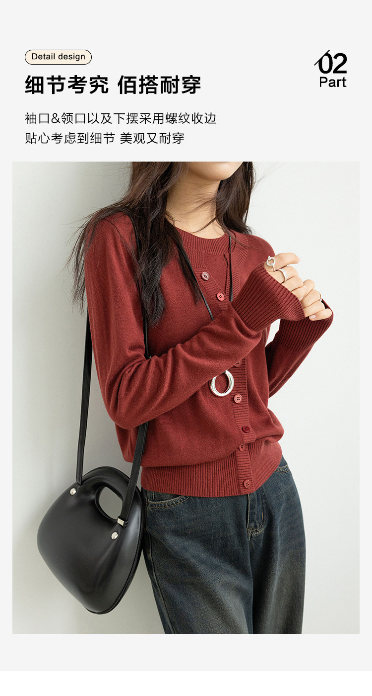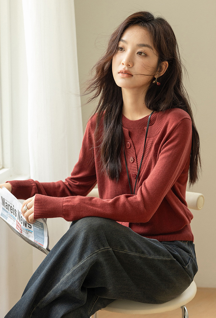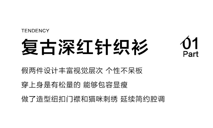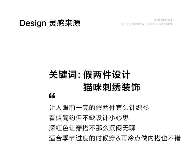 【新年胶囊衣橱】冬季复古含绵羊毛假两件刺绣圆领针织衫女式上衣