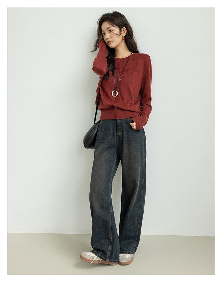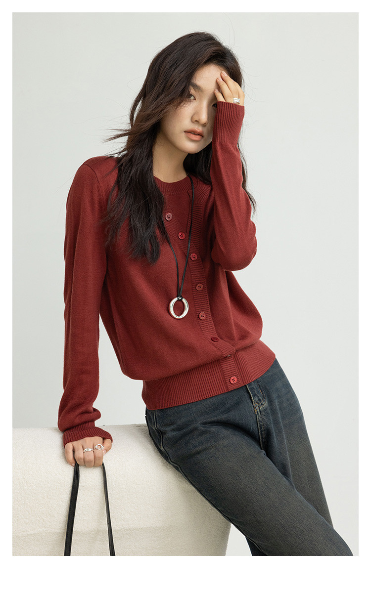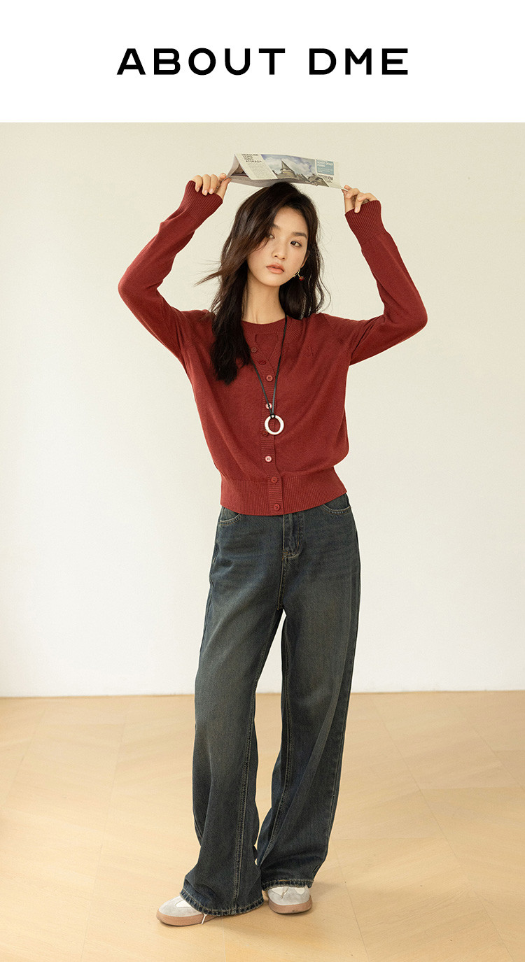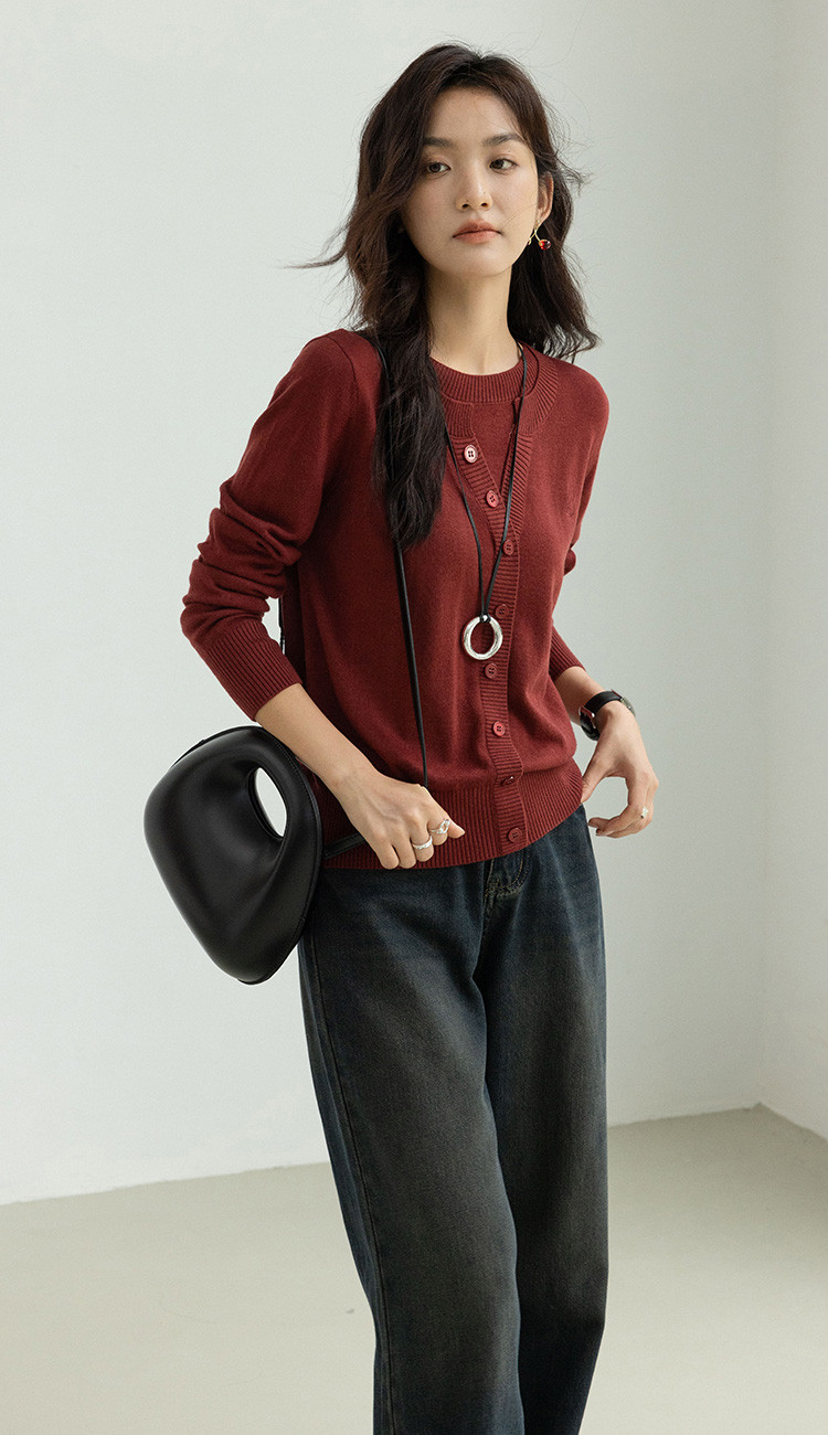 【新年胶囊衣橱】冬季复古含绵羊毛假两件刺绣圆领针织衫女式上衣