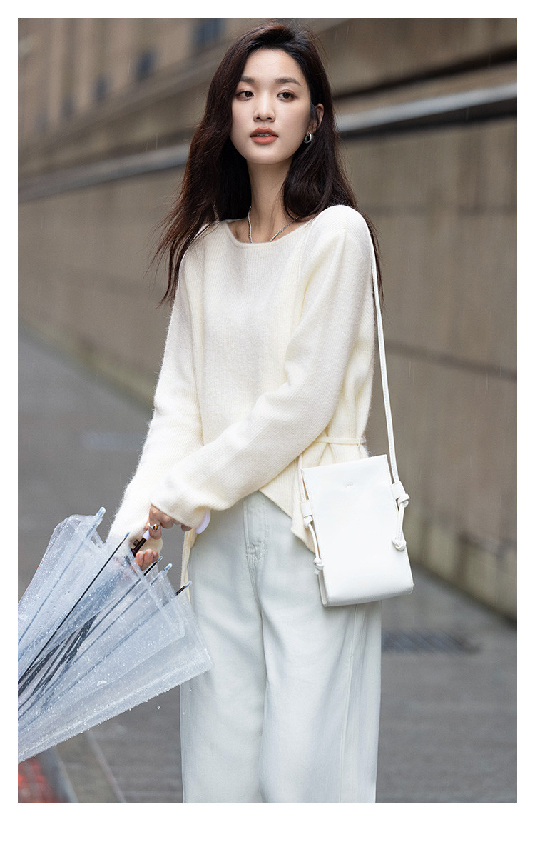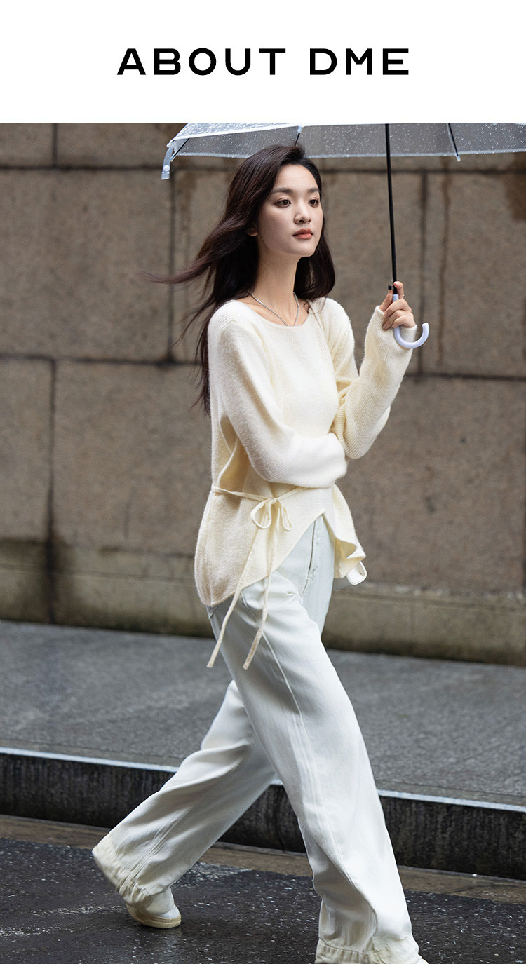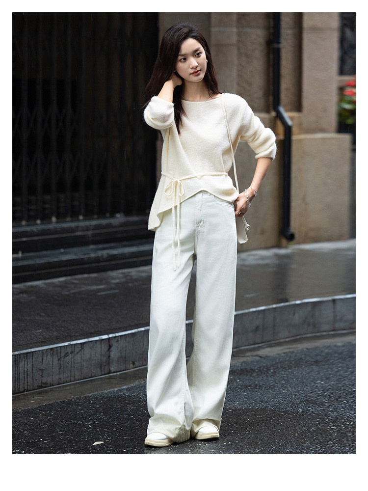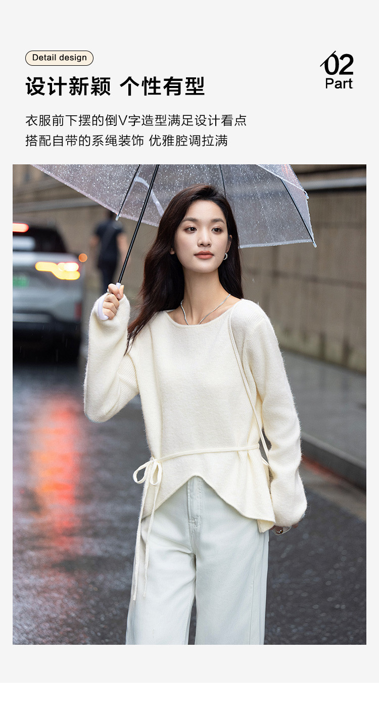 【慵懒米白针织衫】2024冬款个性下摆优雅气质松系带针针织衫