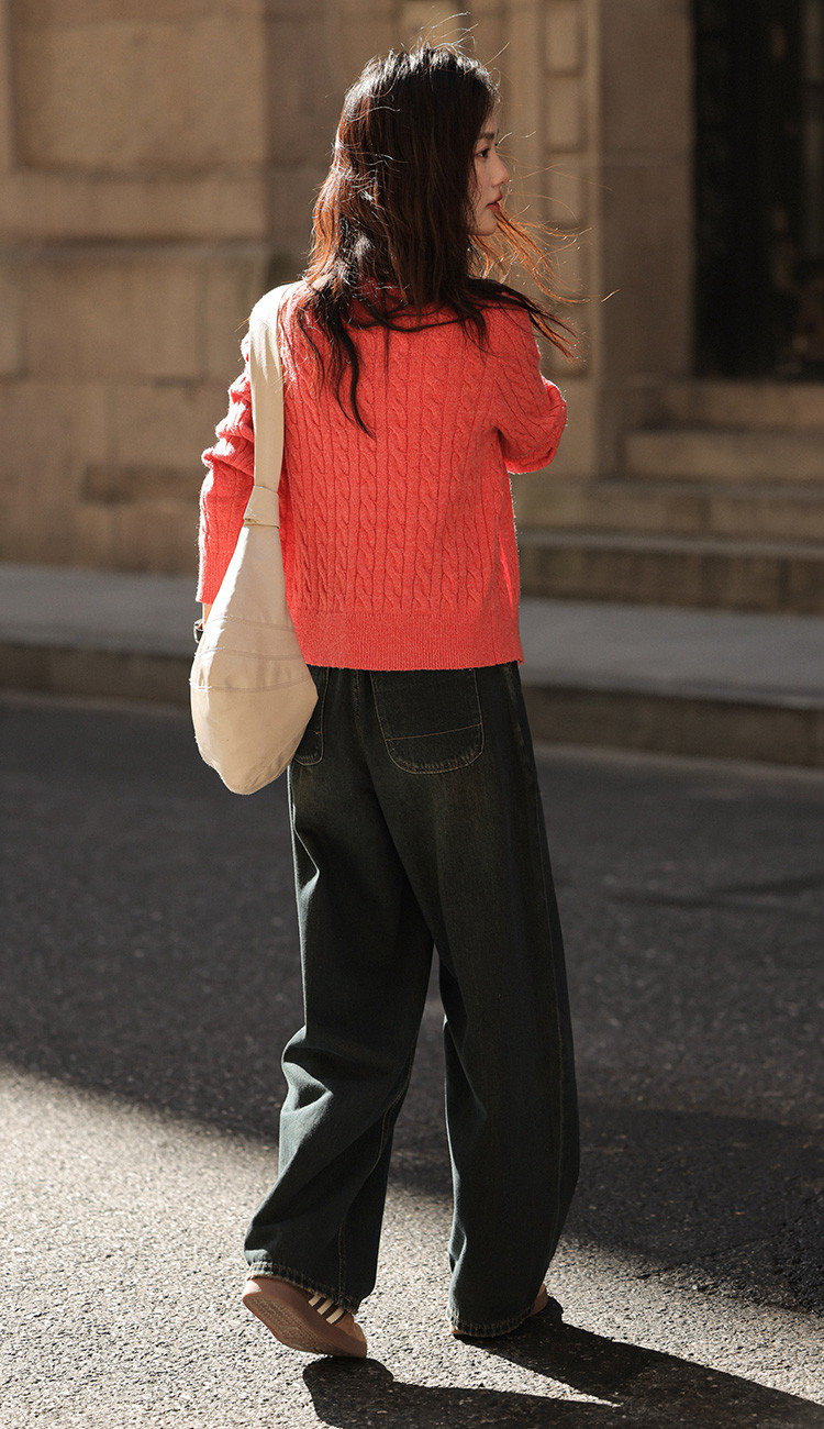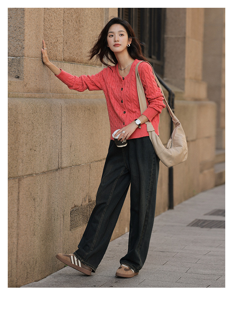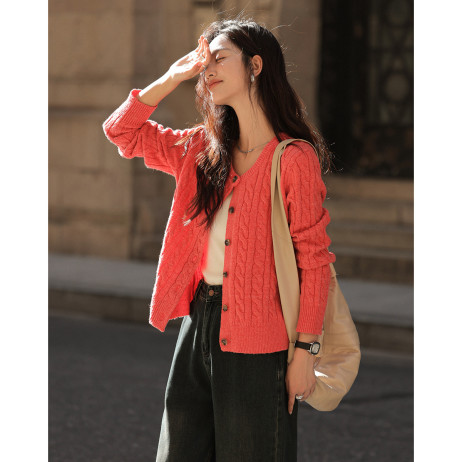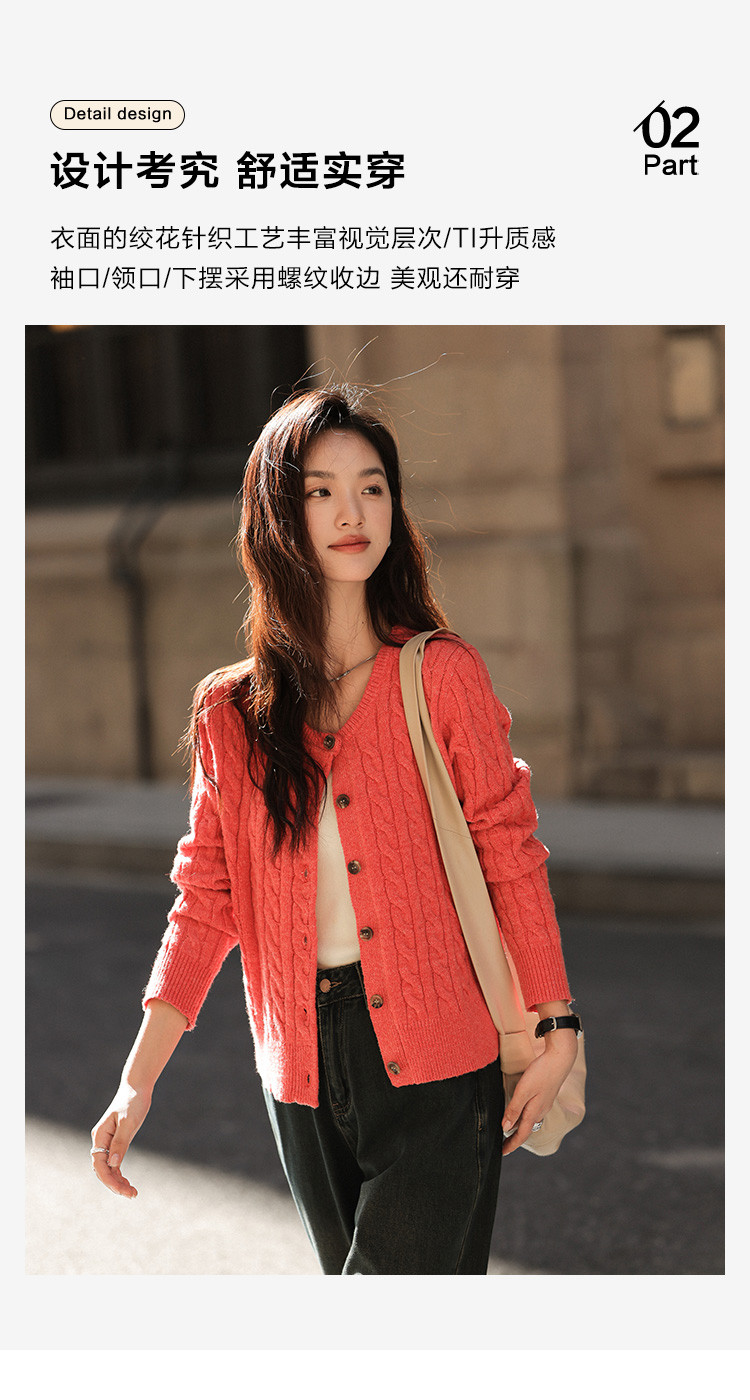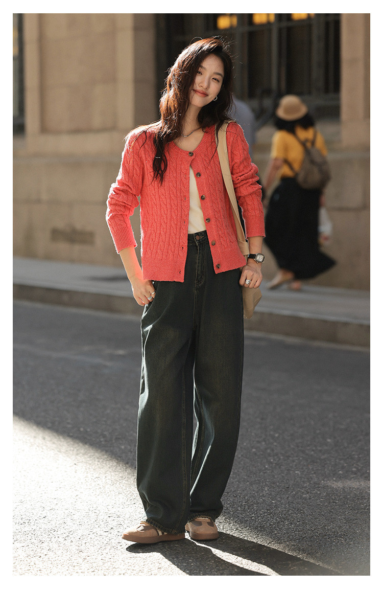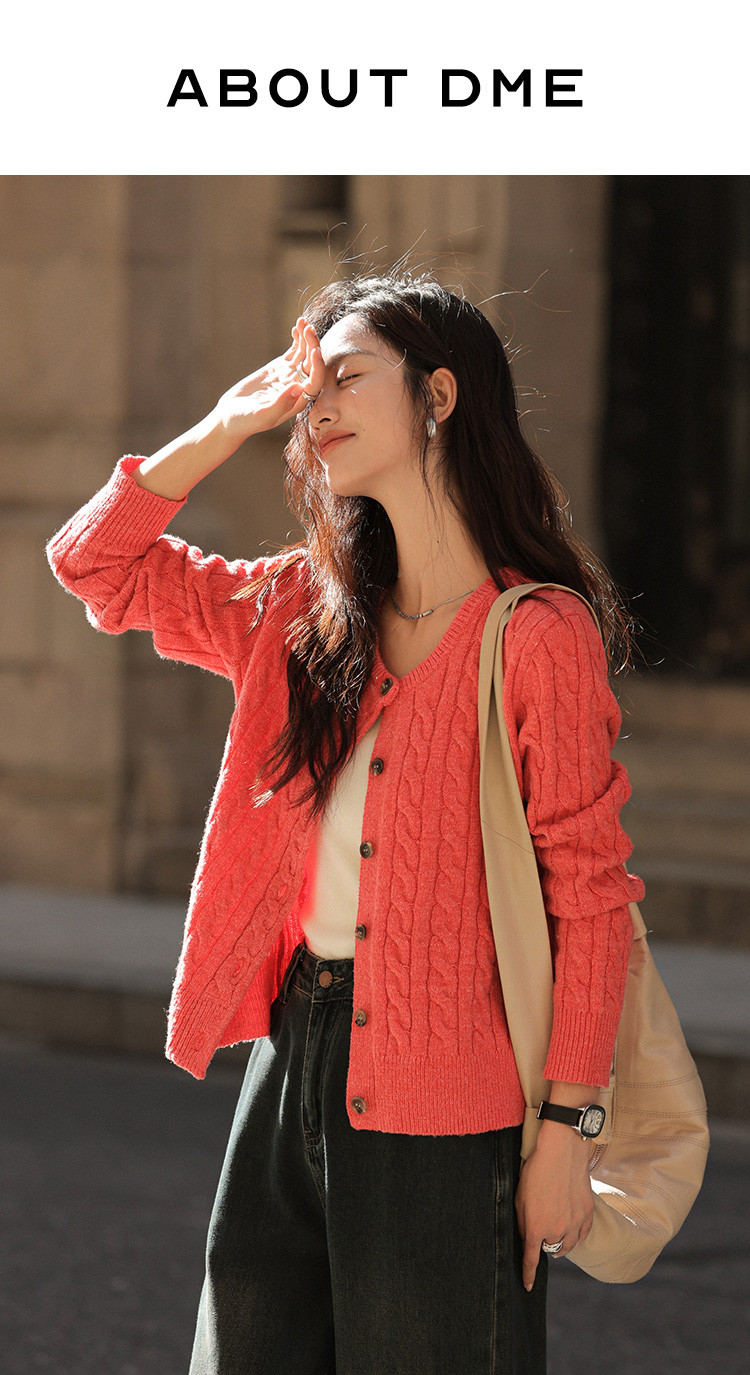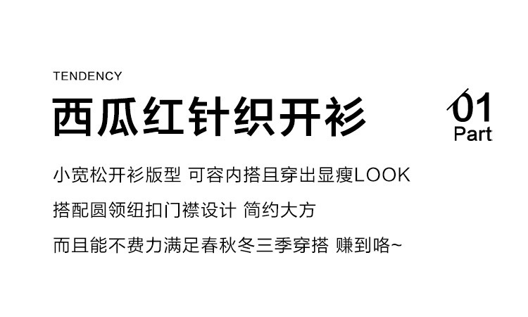 【西瓜红软糯开衫】2024冬季圆领撞色钉扣长袖针织开衫女