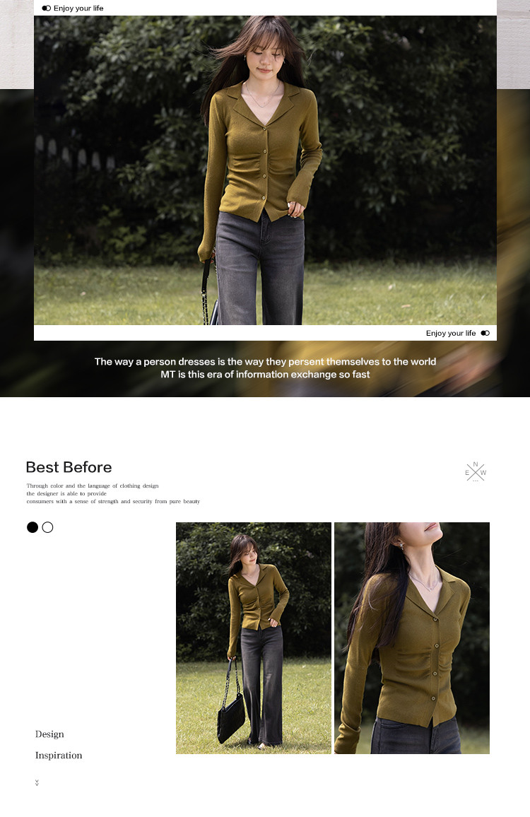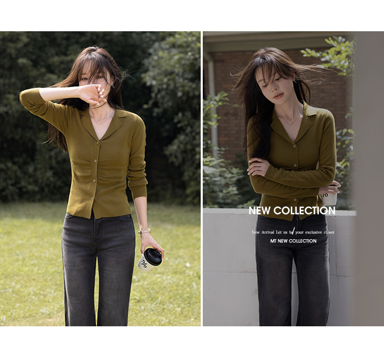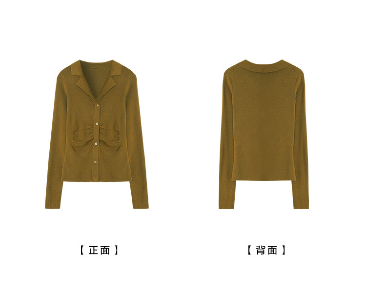 【韩系气质通勤风】2024年冬款时尚翻领简约纯色长袖针织衫