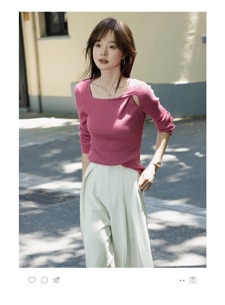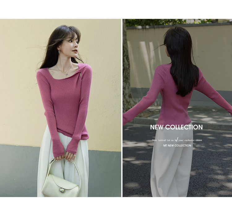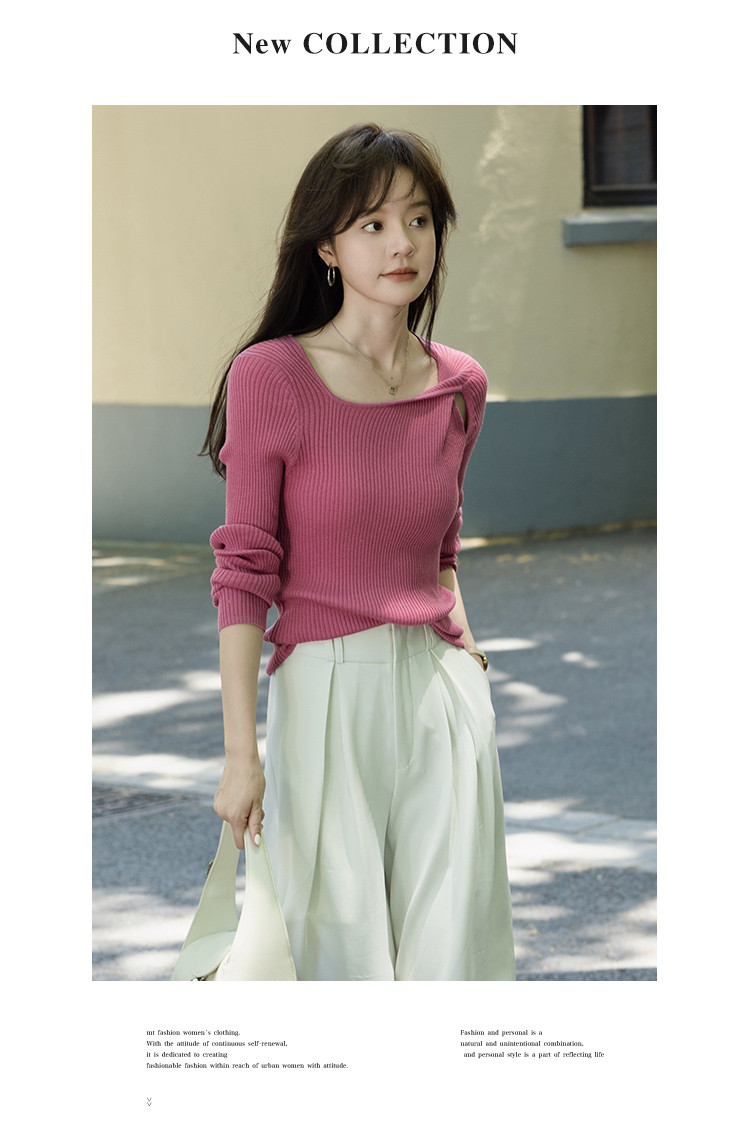 【法式气质通勤风】秋季款百搭设计感不规则扭结时尚套头长袖线衫