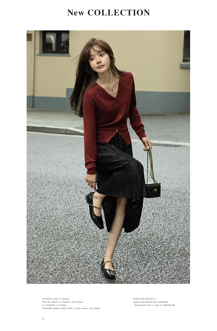 【圣诞奇迹夜】秋冬温柔风V领垂感打底线衫贴肤藏肉针织衫女上衣