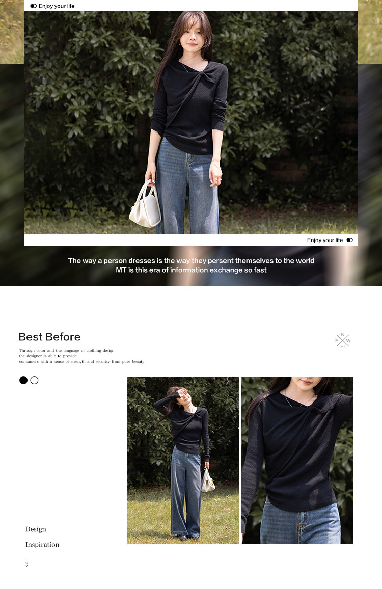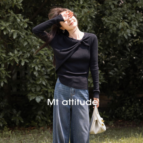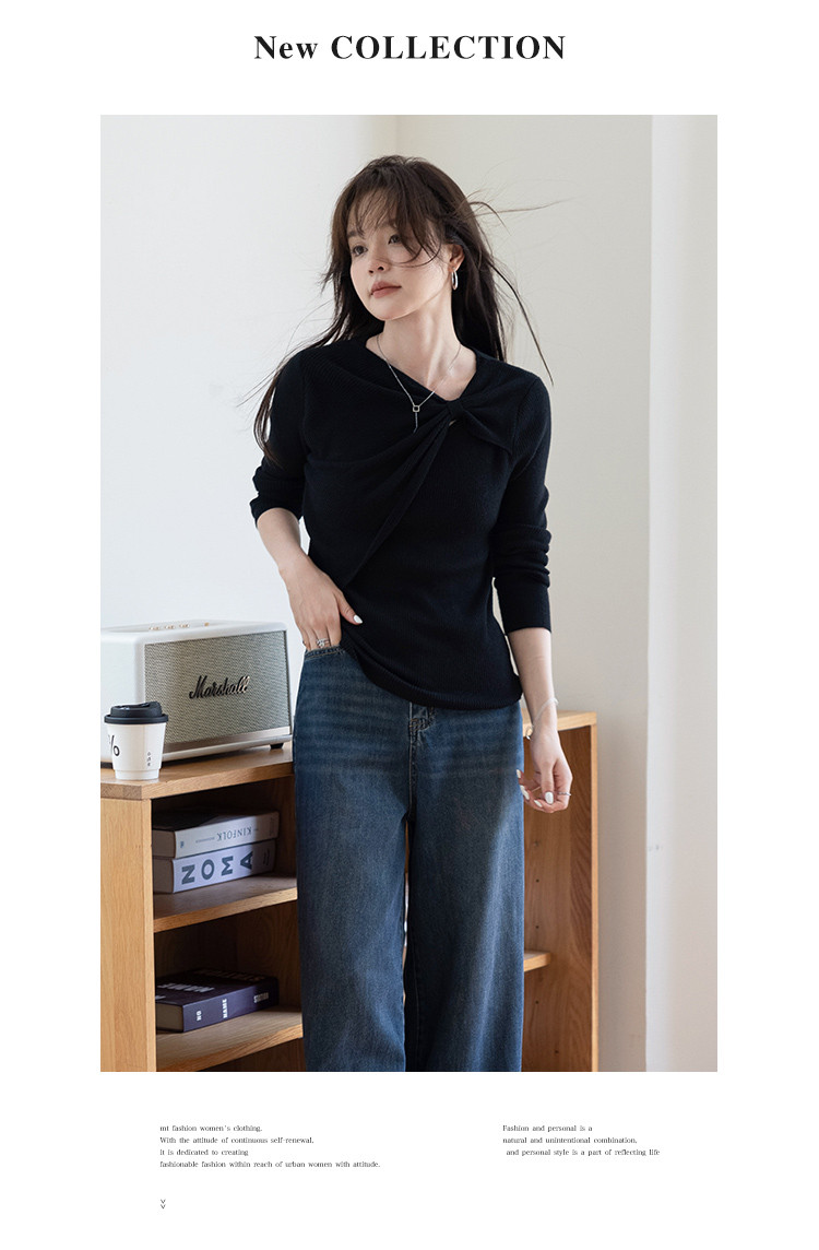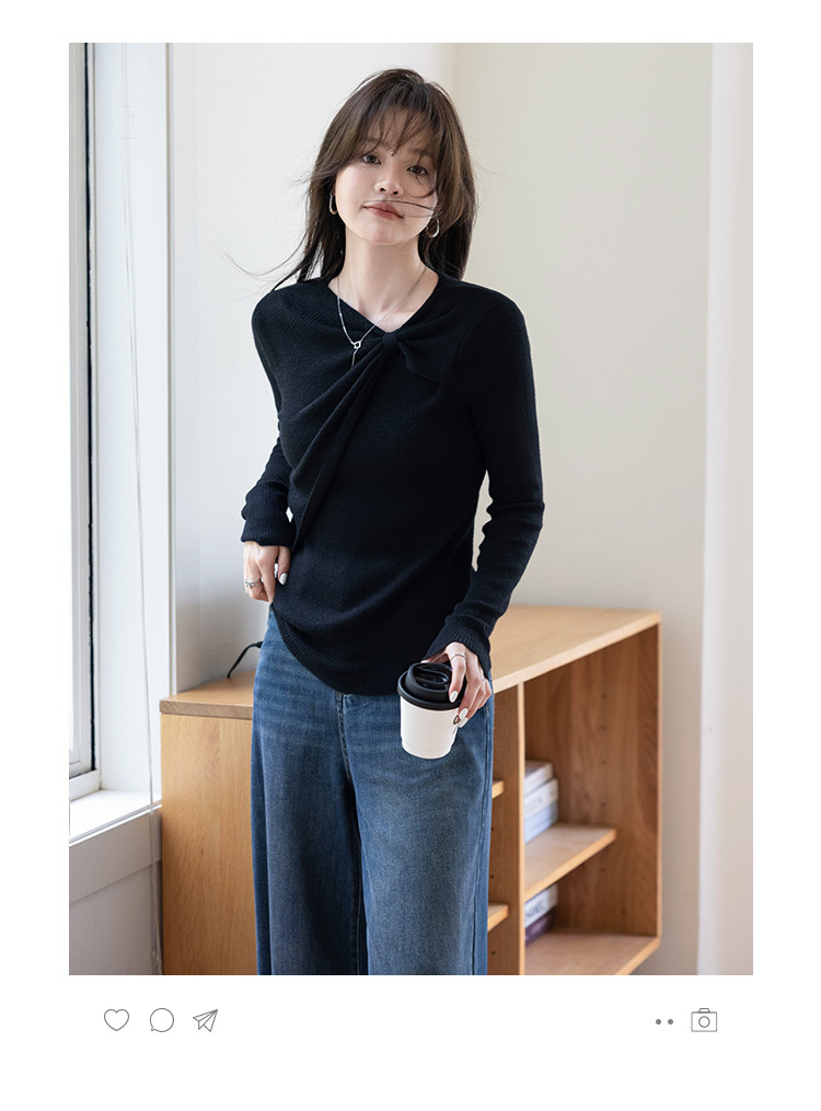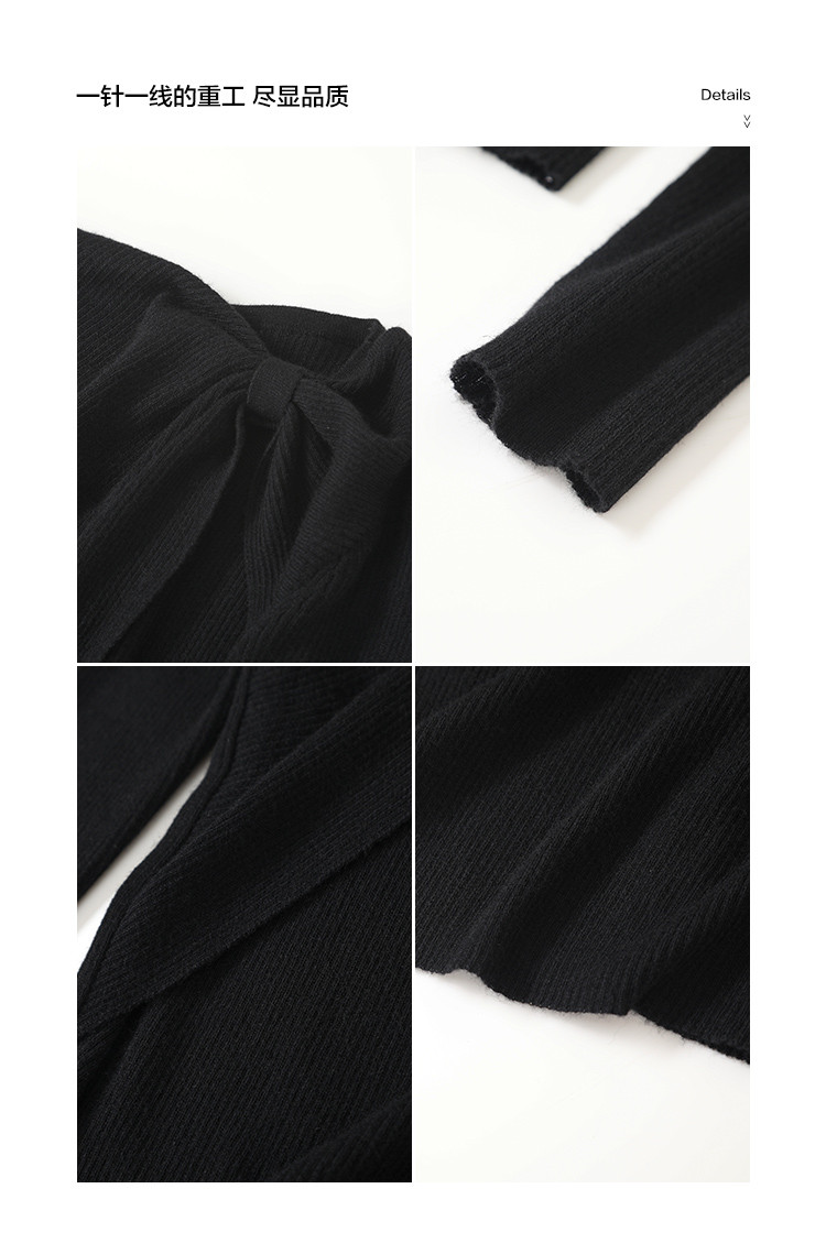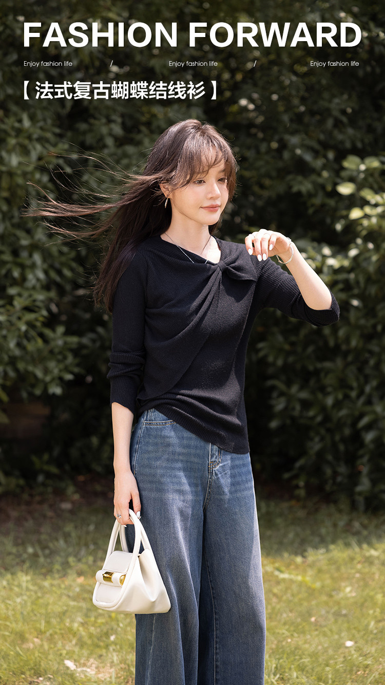 【法式复古优雅风】2024秋季款 蝴蝶结纯色套头长袖针织衫
