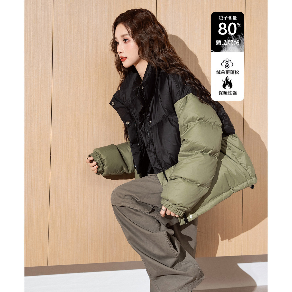 2024冬季女立领拼接短款羽绒服轻暖舒适休闲百搭外套