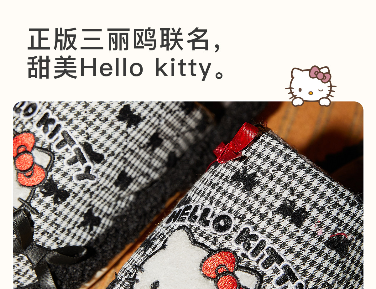 Gukoo/果壳新款半边绒睡衣女秋冬HelloKitty联名可爱家居服套装D