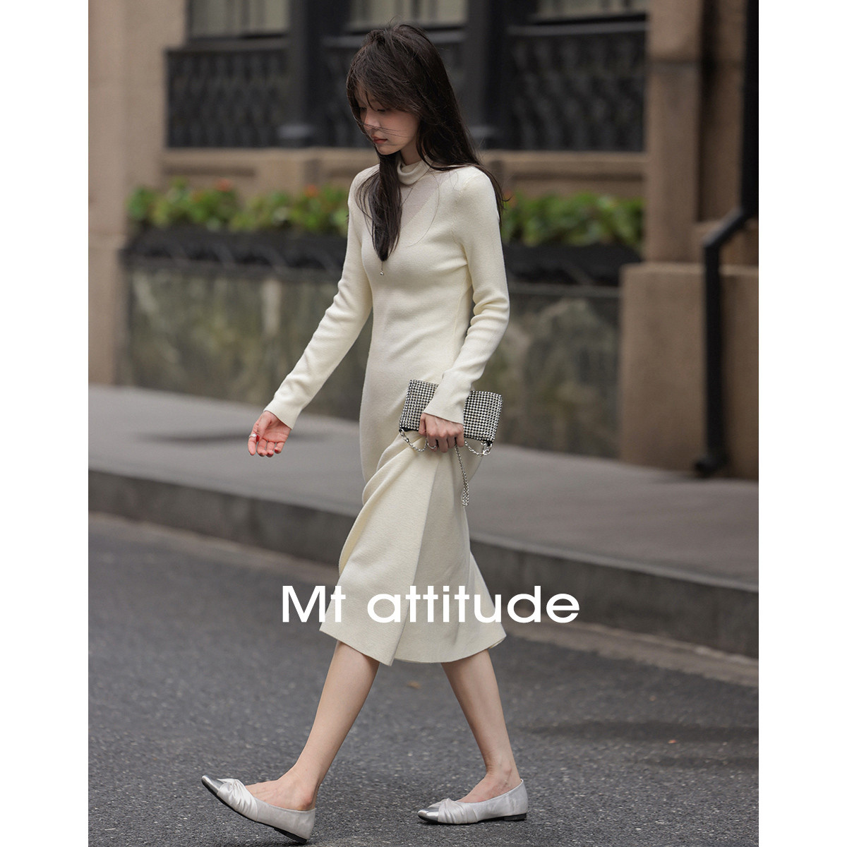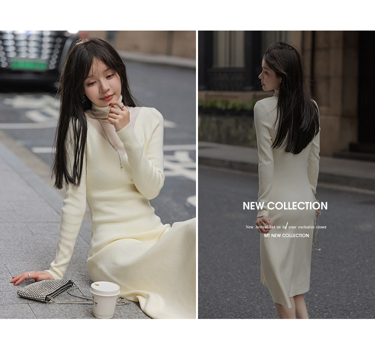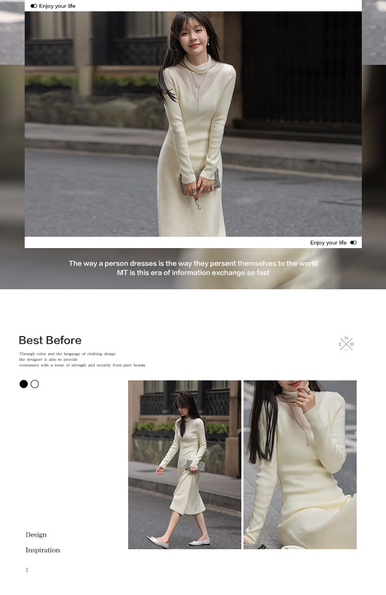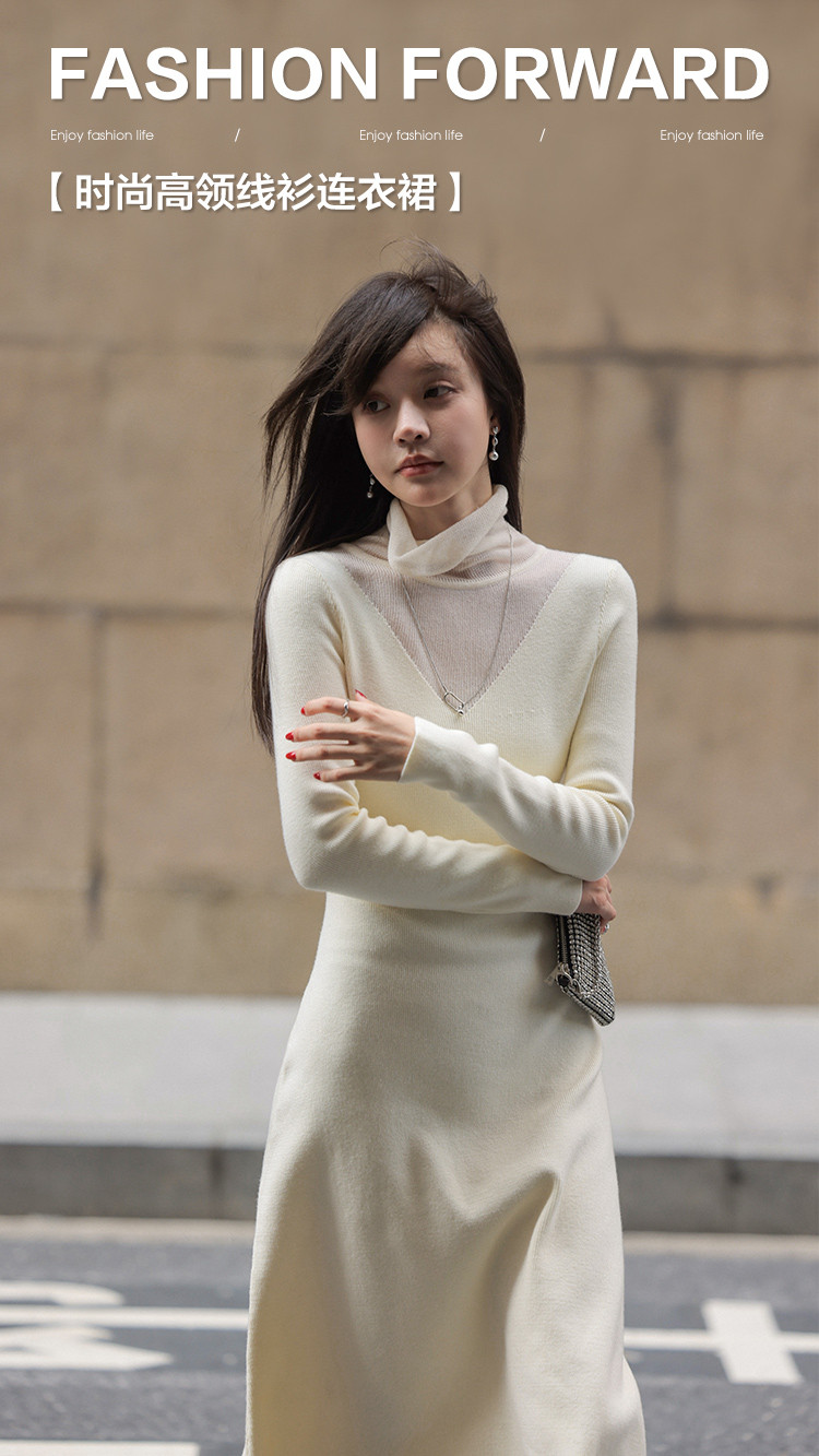 【软糯白月光】冬季款温柔休闲时尚高领气质显瘦长袖针织衫连衣裙