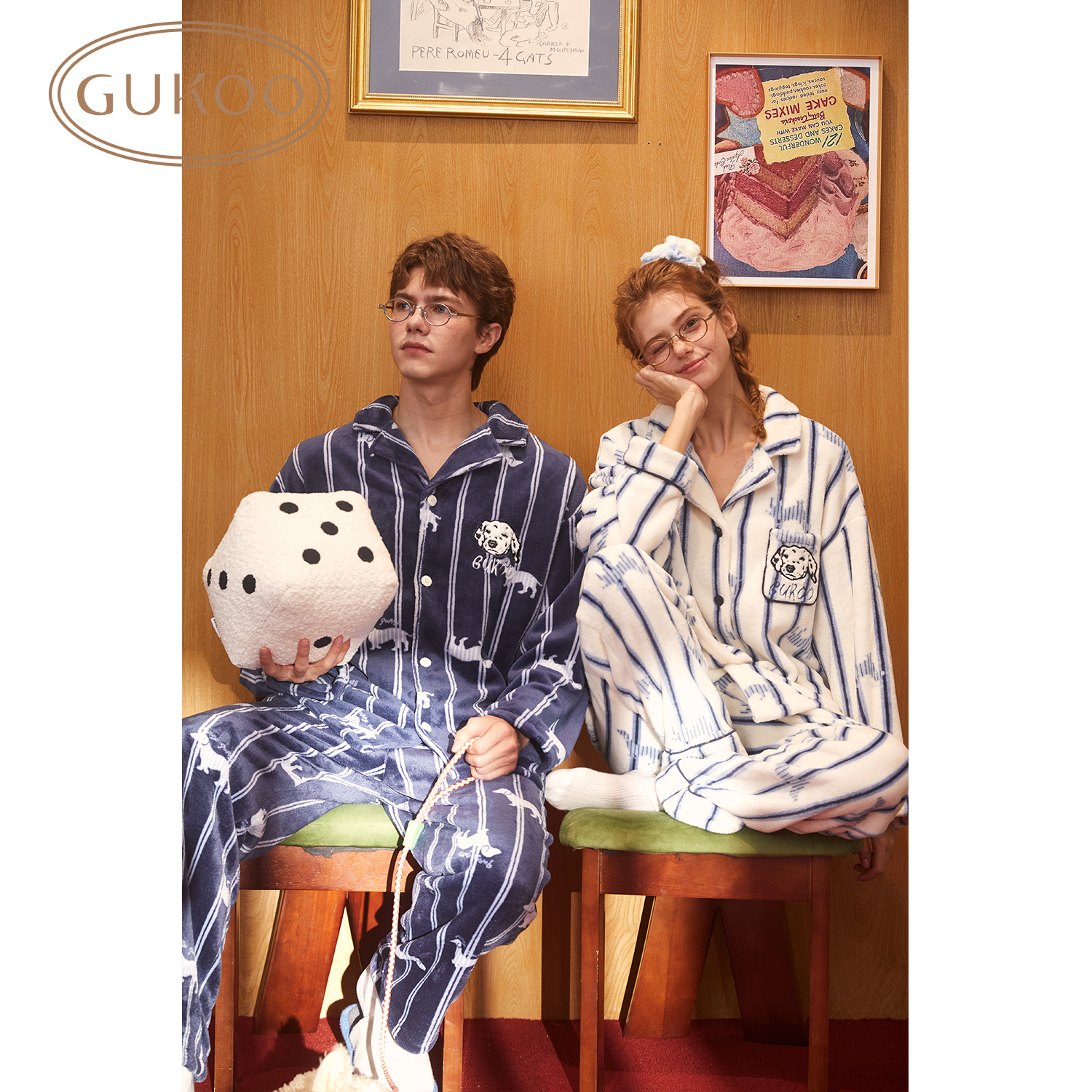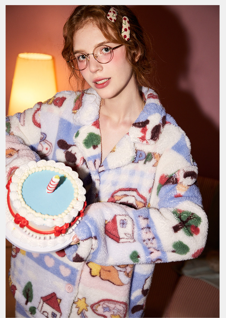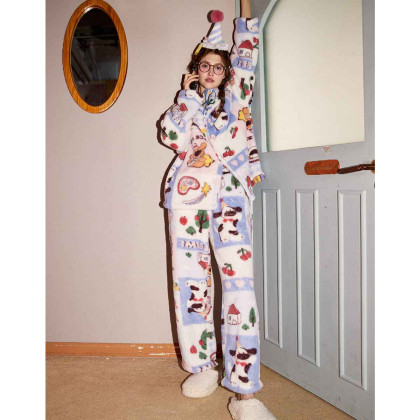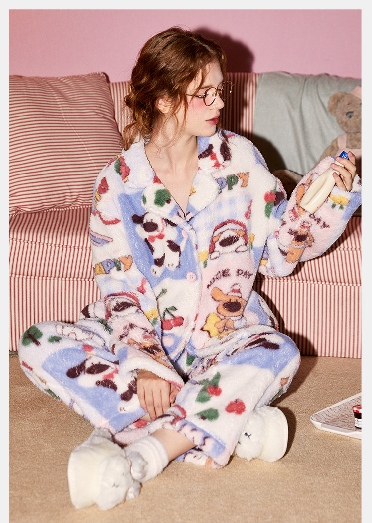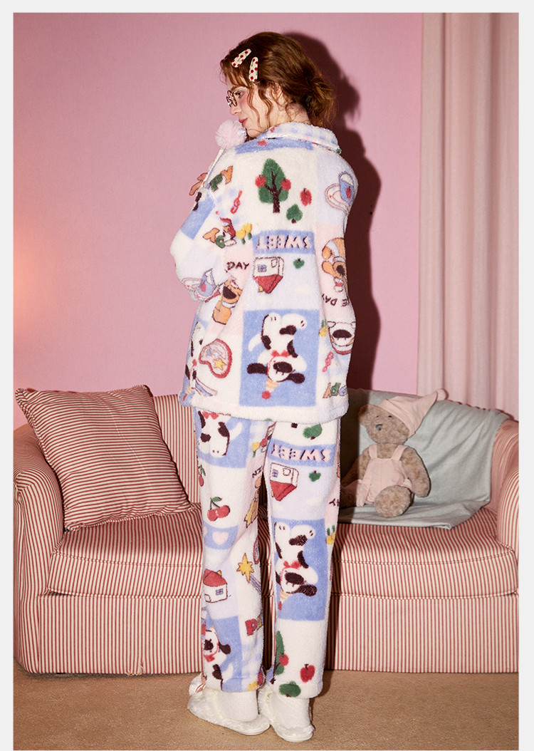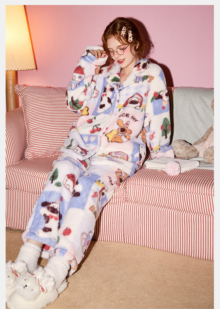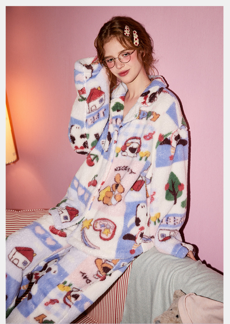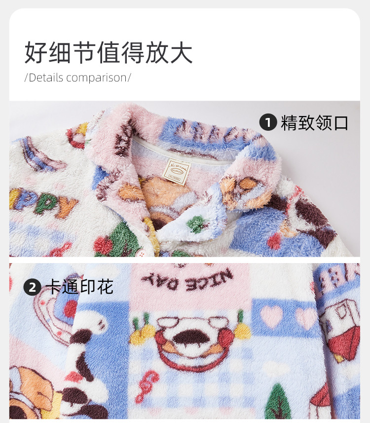 Gukoo/果壳睡衣女秋冬牛奶绒舒适保暖情侣家居服套装可外穿S724426203505