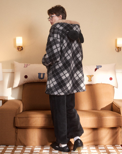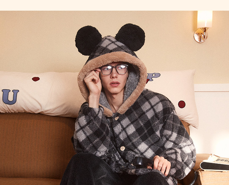 【米奇家族联名】冬季加厚北极绒男士睡衣连帽柔软卡通家居服套装