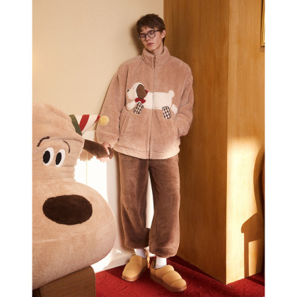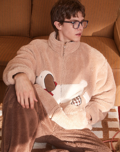 【原创IP】睡衣男秋冬加厚北极绒保暖软糯开衫家居服套装可外穿
