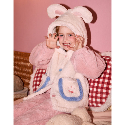 【童趣系列】女童睡衣冬加绒厚款连帽兔耳睡衣家居服套装可外穿