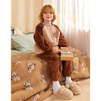 【童趣小熊系列】睡衣男童秋冬珊瑚绒保暖舒适儿童家居服套装外穿